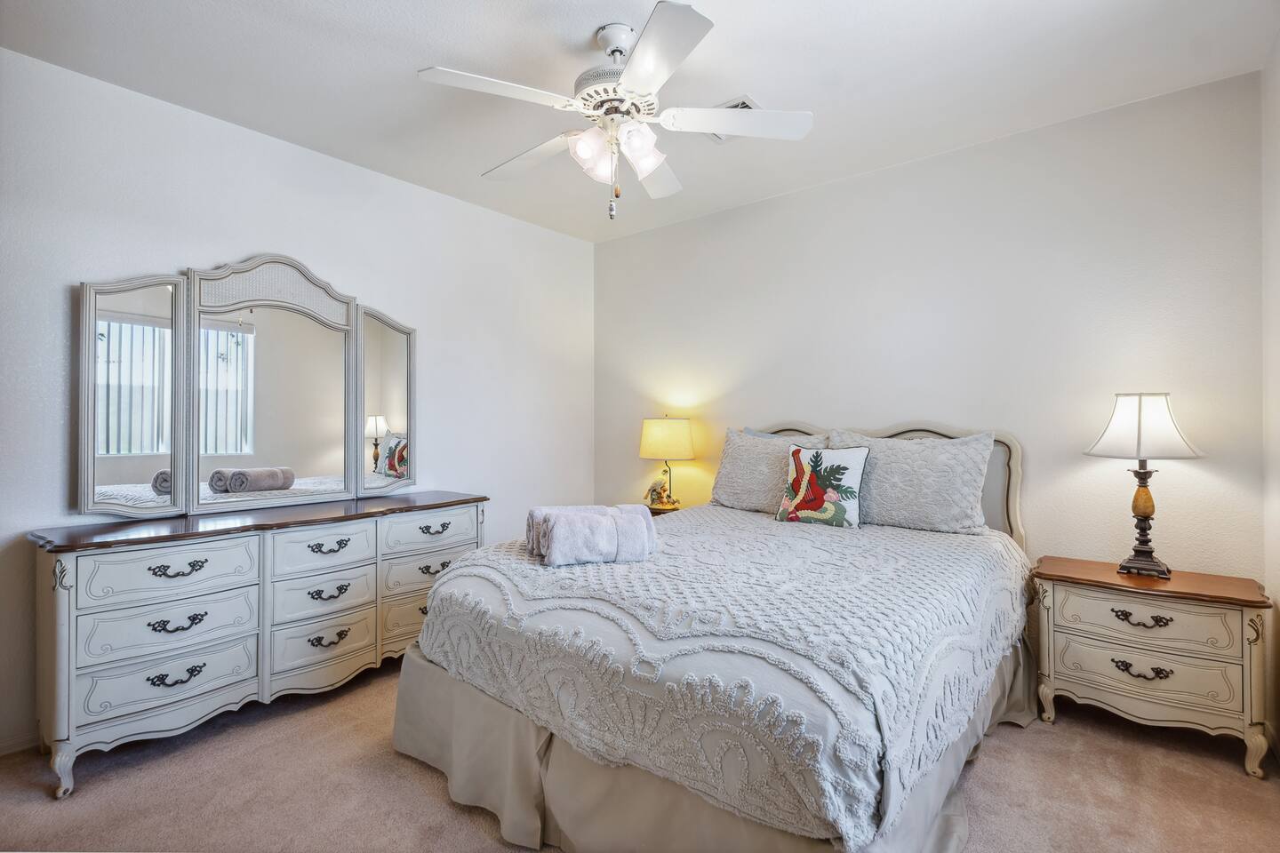 Welcome to "Lago Del Sol" in Lake Havasu, AZ! Our home is just a block from the golf course, offers three spacious bedrooms and comfortably sleeps six guests. The property boasts TONS of parking, ideal for all of your sand or water toys. Enjoy the cozy living area, a fully equipped kitchen, and a private backyard perfect for relaxation or barbecues. With its prime location near golfing, shopping, and dining, our home is the ultimate retreat for your next vacation!