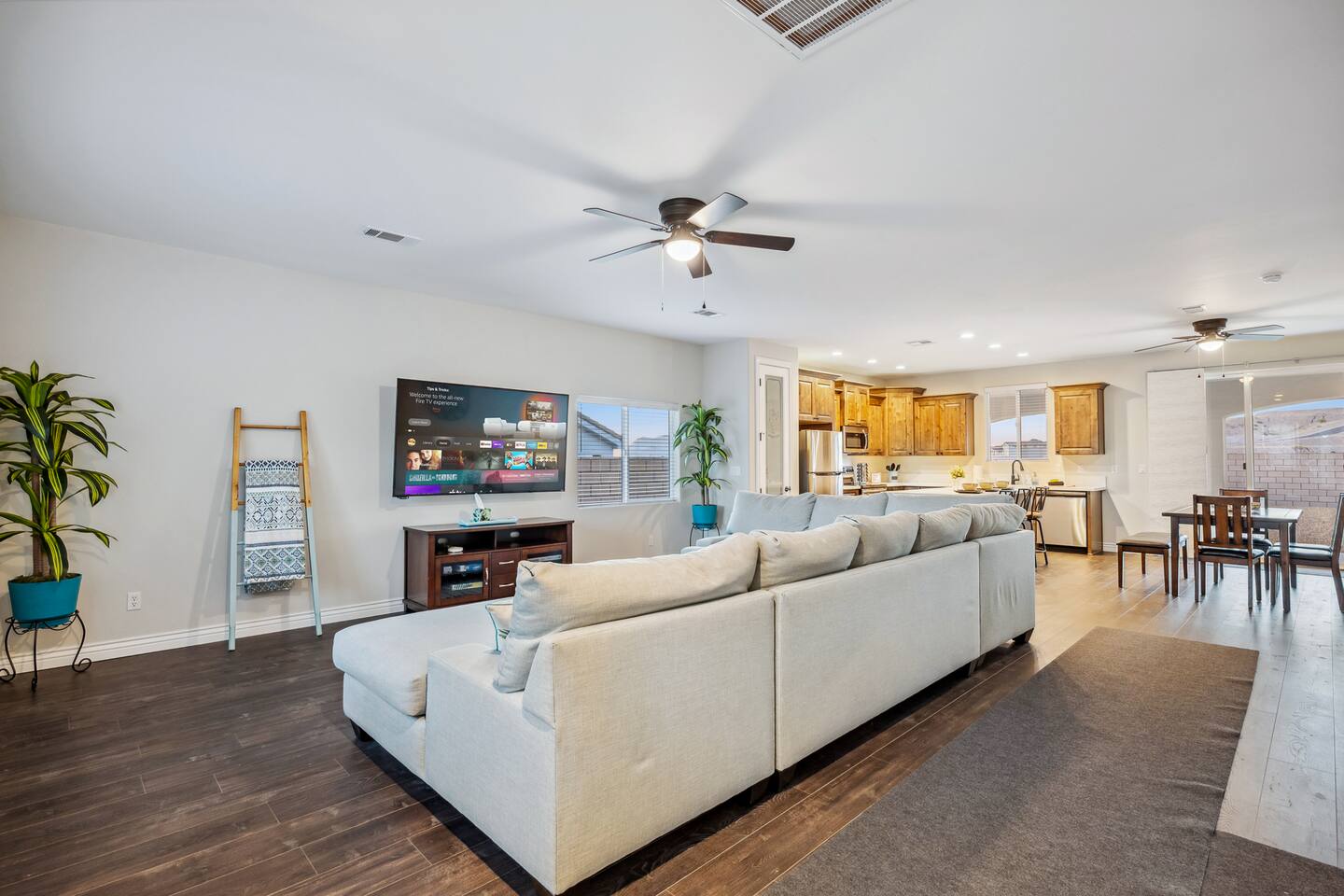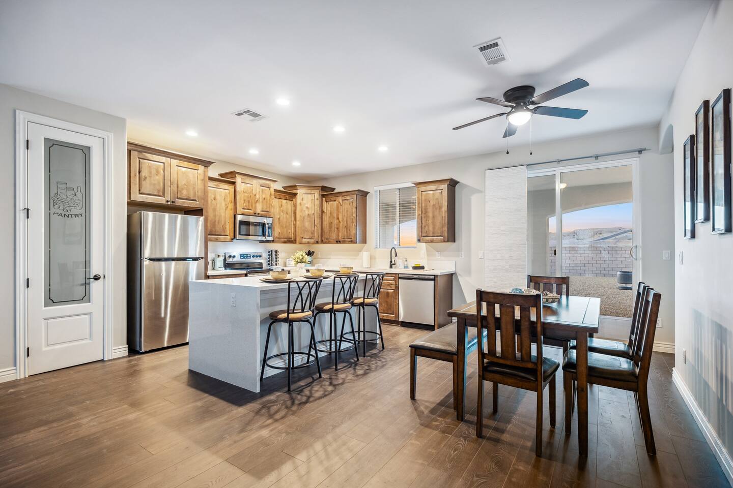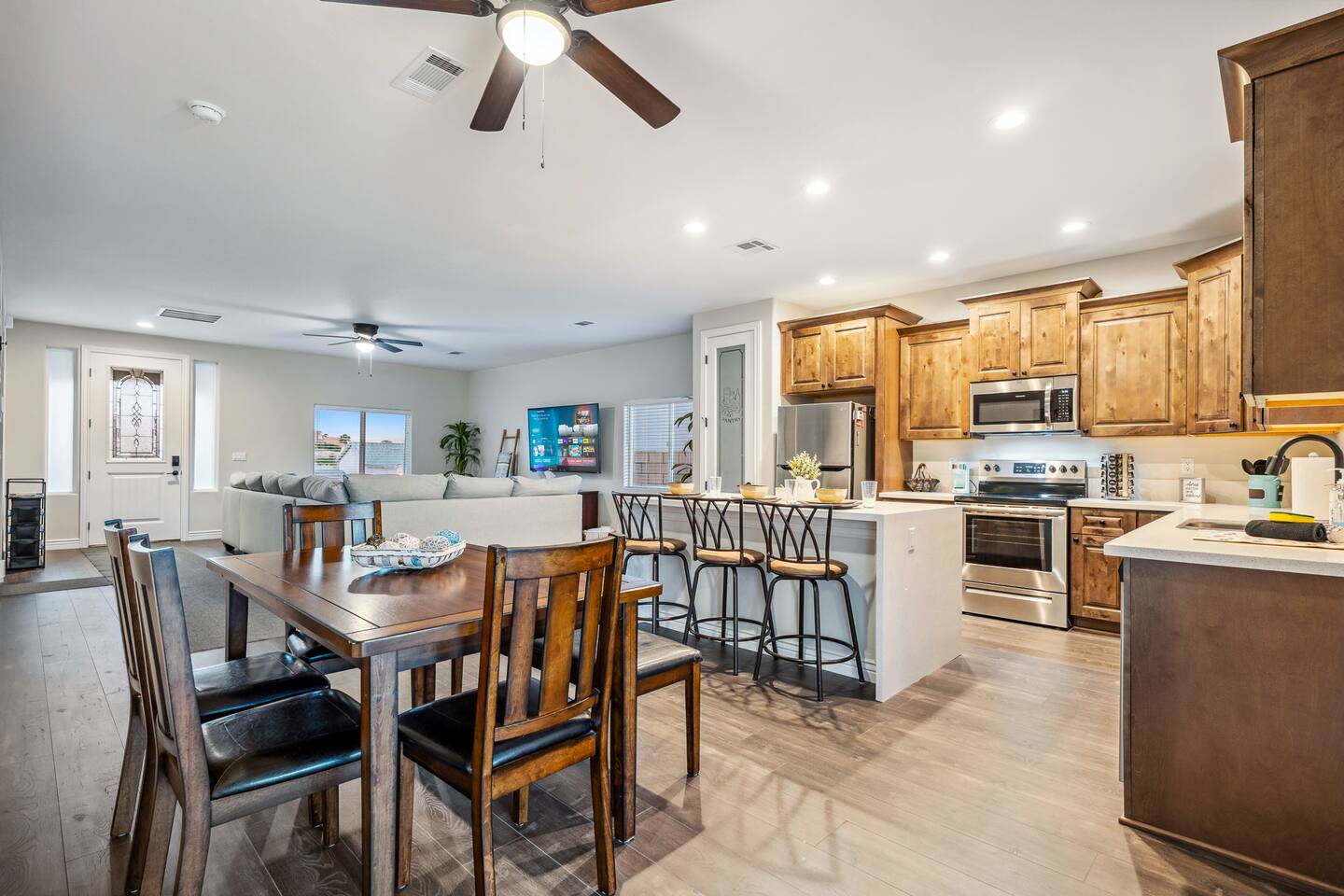 Discover the perfect getaway in Bullhead City with our brand-new, 3 bedroom, 2 bath. Nestled in a prime location, it’s just a stone’s throw away from the vibrant Laughlin casinos and the serene Lake Mohave. This modern retreat offers a tranquil escape with all the comforts of home, featuring a fully equipped kitchen, cozy living spaces, and a private patio for those warm desert evenings. Ideal for families or groups, enjoy a blend of relaxation and excitement in our Hilltop Hideaway!