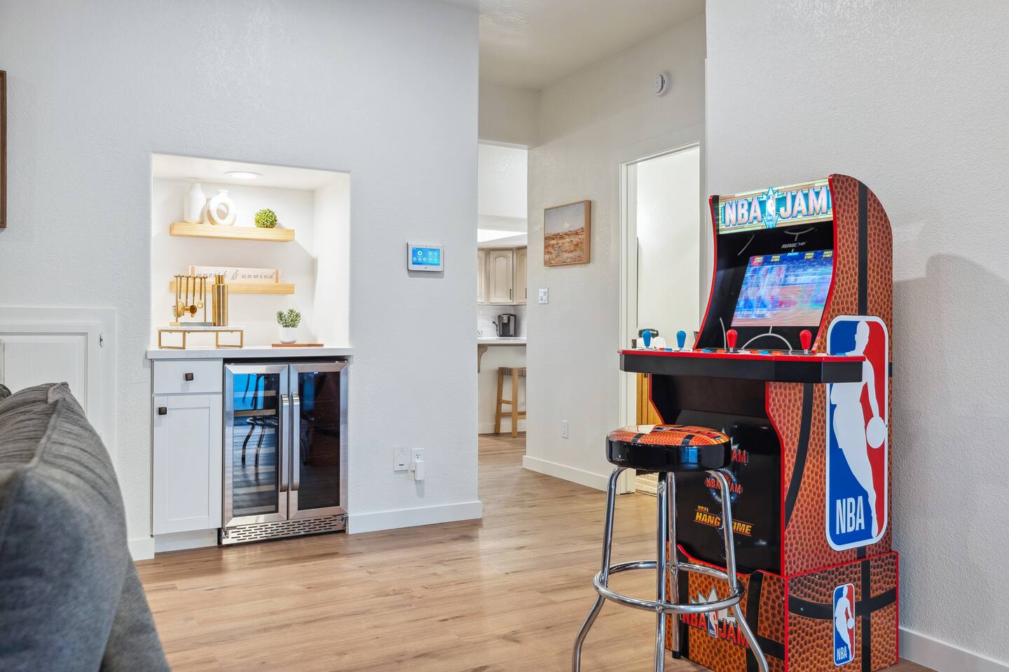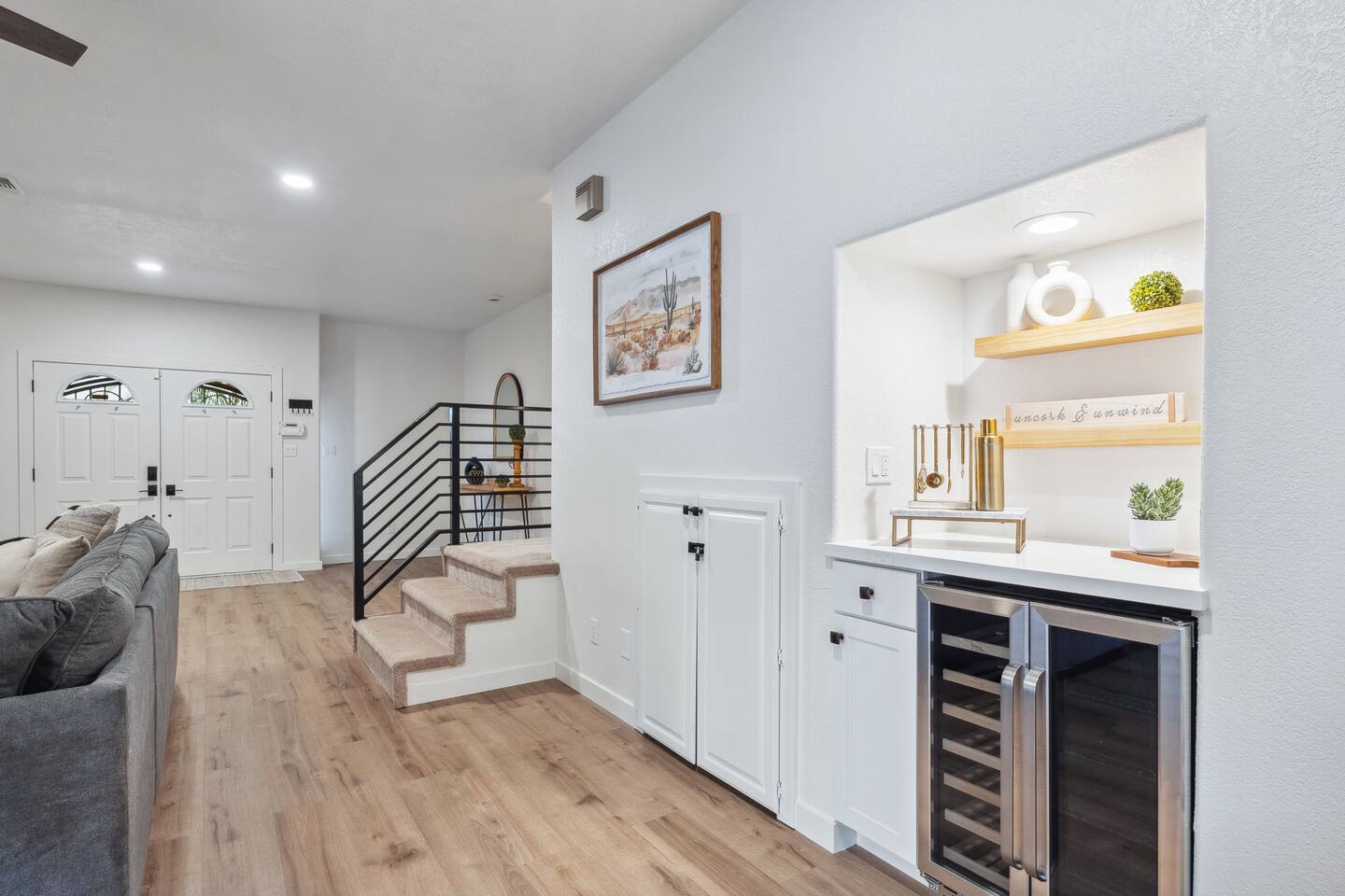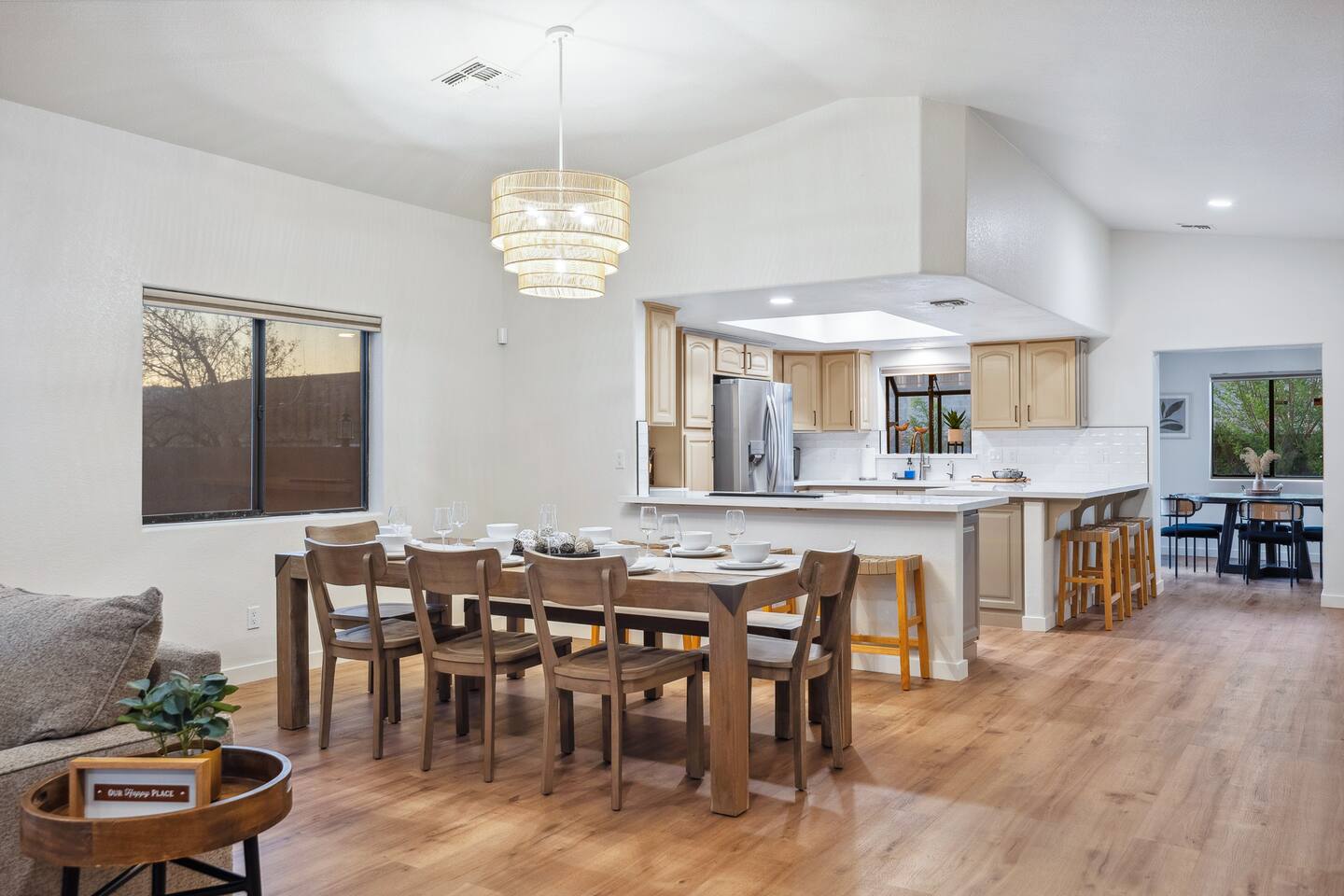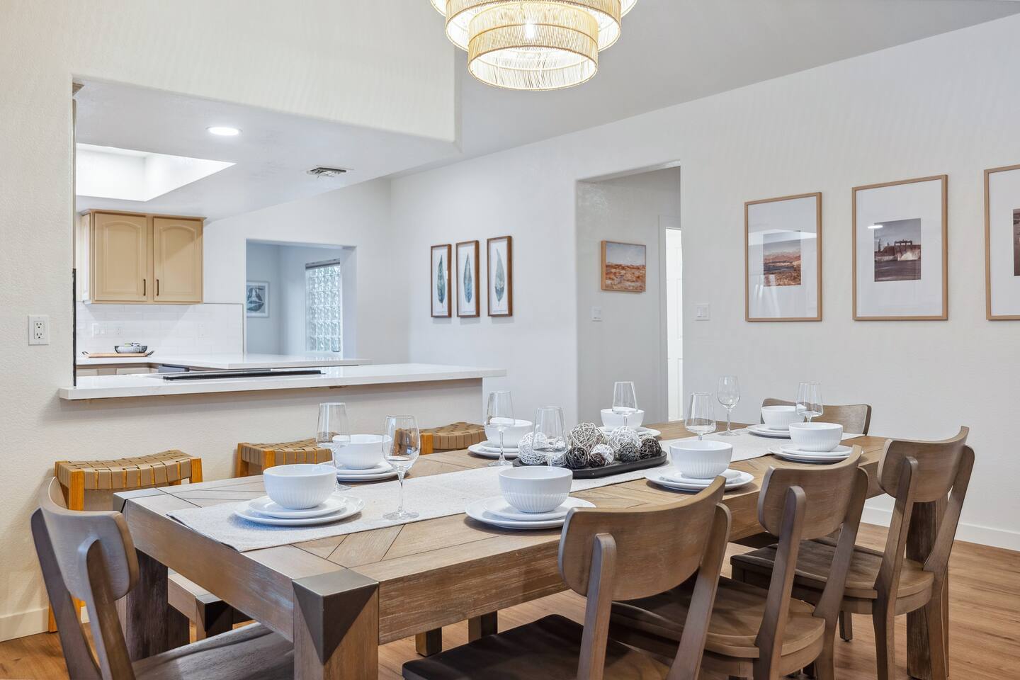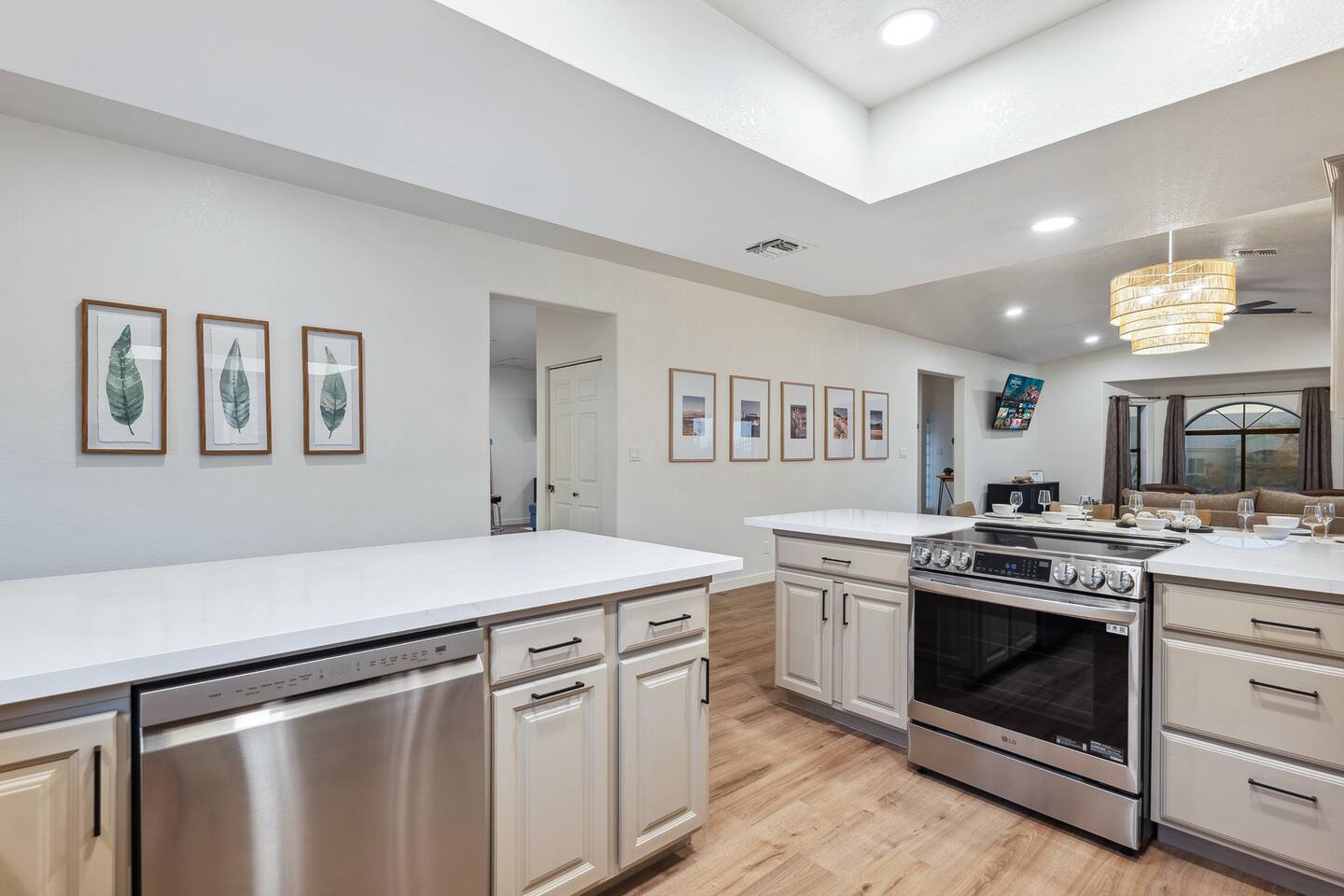 Bring the whole family to this great place with lots of room for fun in our modern-designed vacation home in Bullhead City, just minutes from Laughlin and Lake Mohave. Our spacious home has 5 bedrooms, comfortably sleeping up to 16 guests. Dual living areas features sleek furnishings, a gourmet kitchen, and large cozy sectional. Perfect for family gatherings or group getaways, our home combines style and convenience for an unforgettable stay.