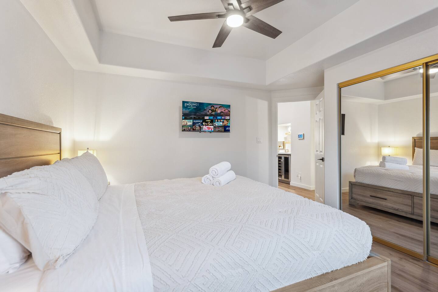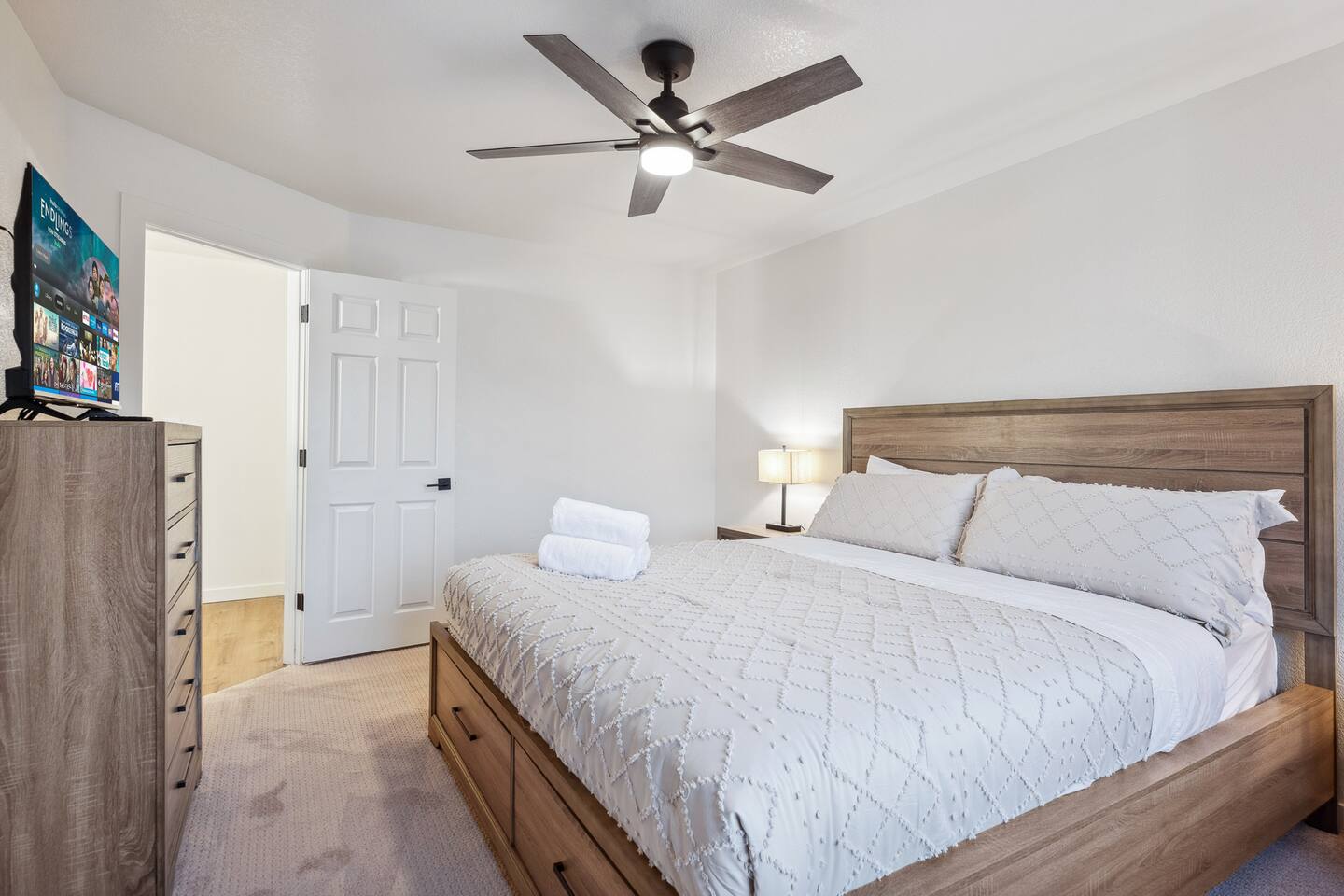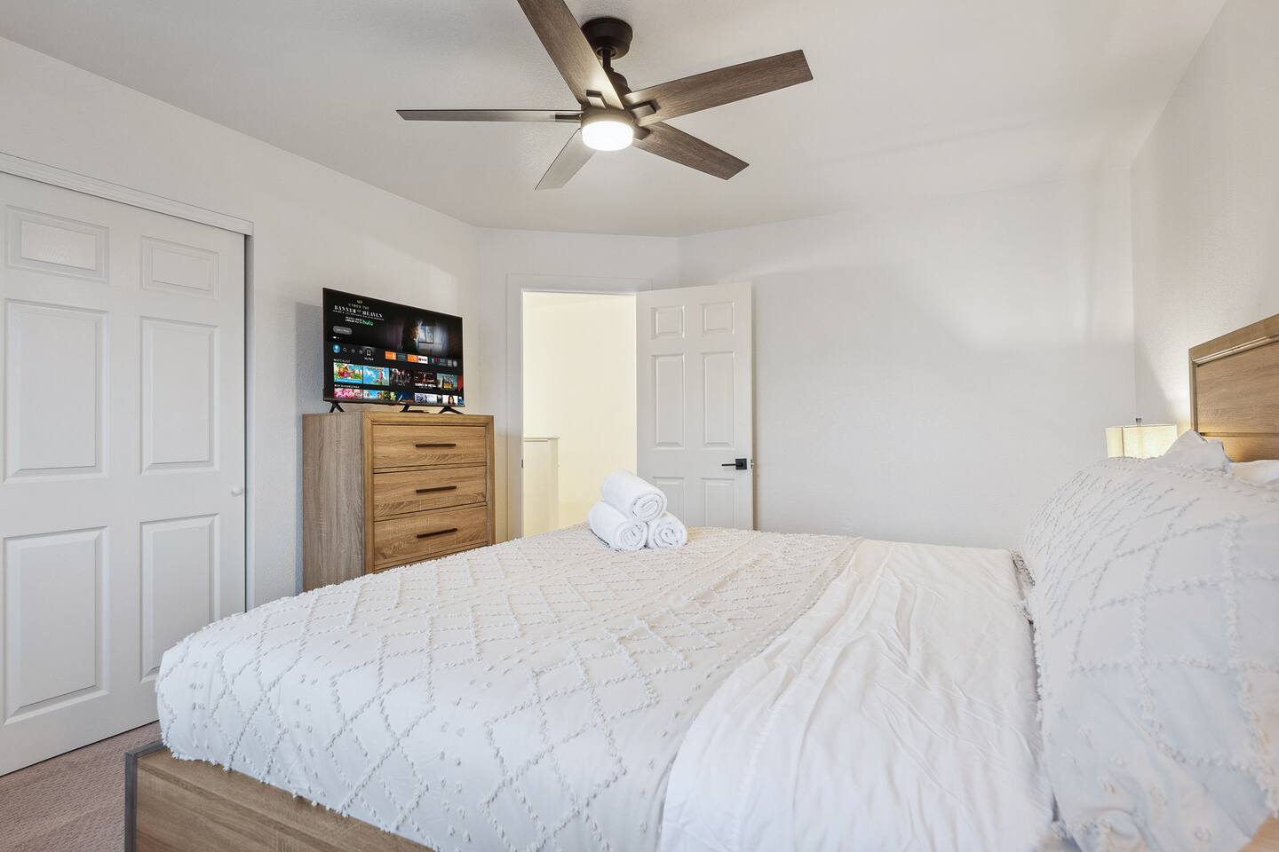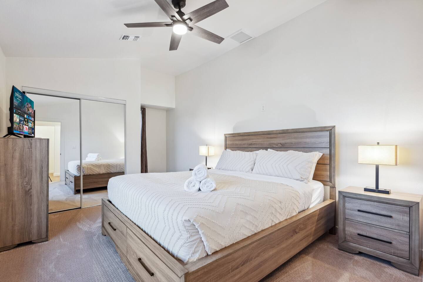 Located just minutes from both Laughlin and Kathrine's Landing in a quiet neighborhood, you'll enter our home and immediately be in the sprawling living room, which is one of two living rooms on the lower level. Both living rooms have cozy sectionals with large smart TV's so you have plenty of space to entertain the adults and kids. The lower level has one bedroom with the remaining bedrooms upstairs. There's two dining areas as well in addition to barstool seating around the kitchen. Lower level: Bedroom 1: King bed + smart TV (Sleeps 2) Upper level: Master bedroom: King bed + smart TV (Sleeps 2) Bedroom 3: King bed + smart TV (Sleeps 2) Bedroom 4: King bed + smart TV (Sleeps 2) Bedroom 5: Two full-over-full bunk beds (Sleeps 8) Total: 16 guests.