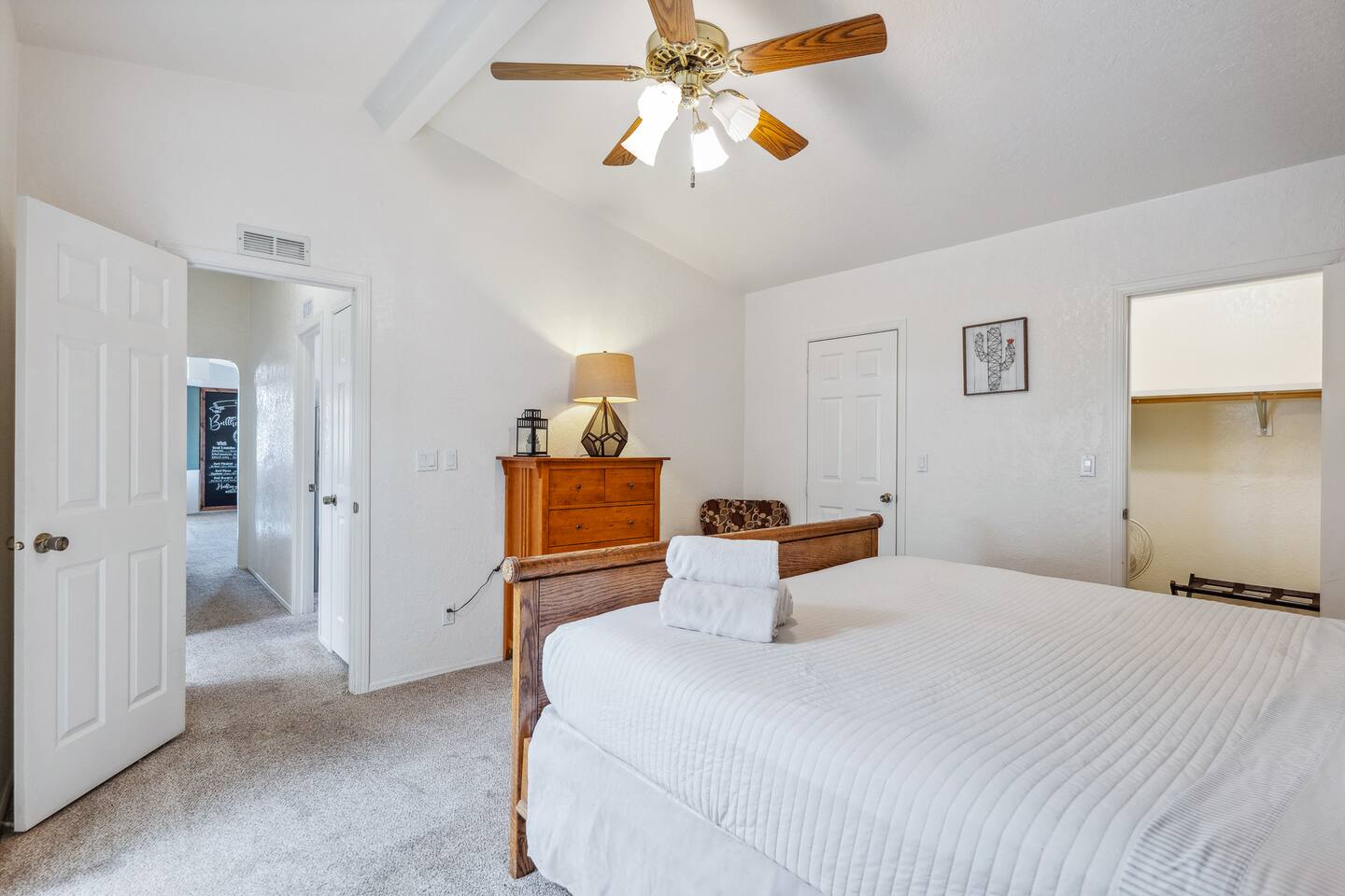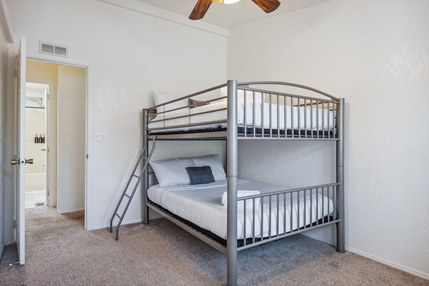 Located on a quiet street on the Colorado River, the home has 3 bedrooms and 2 bathrooms. The third bedroom has double full bunk beds with memory foam mattresses. Ceiling fans and blackout curtains in all rooms make for a restful nights sleep so you can hit the water hard.