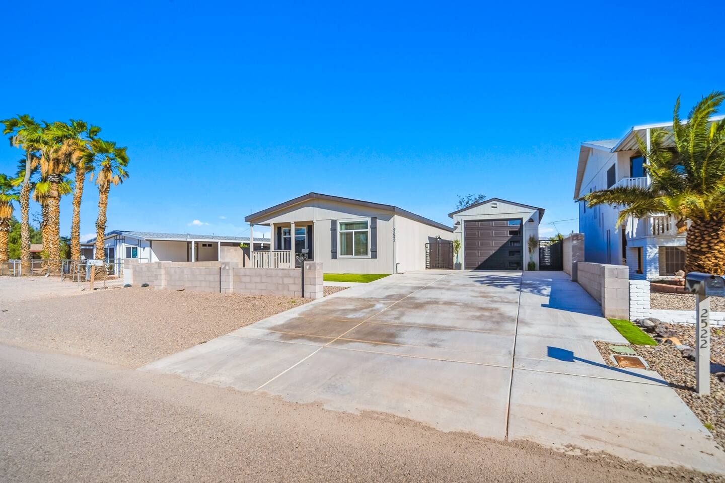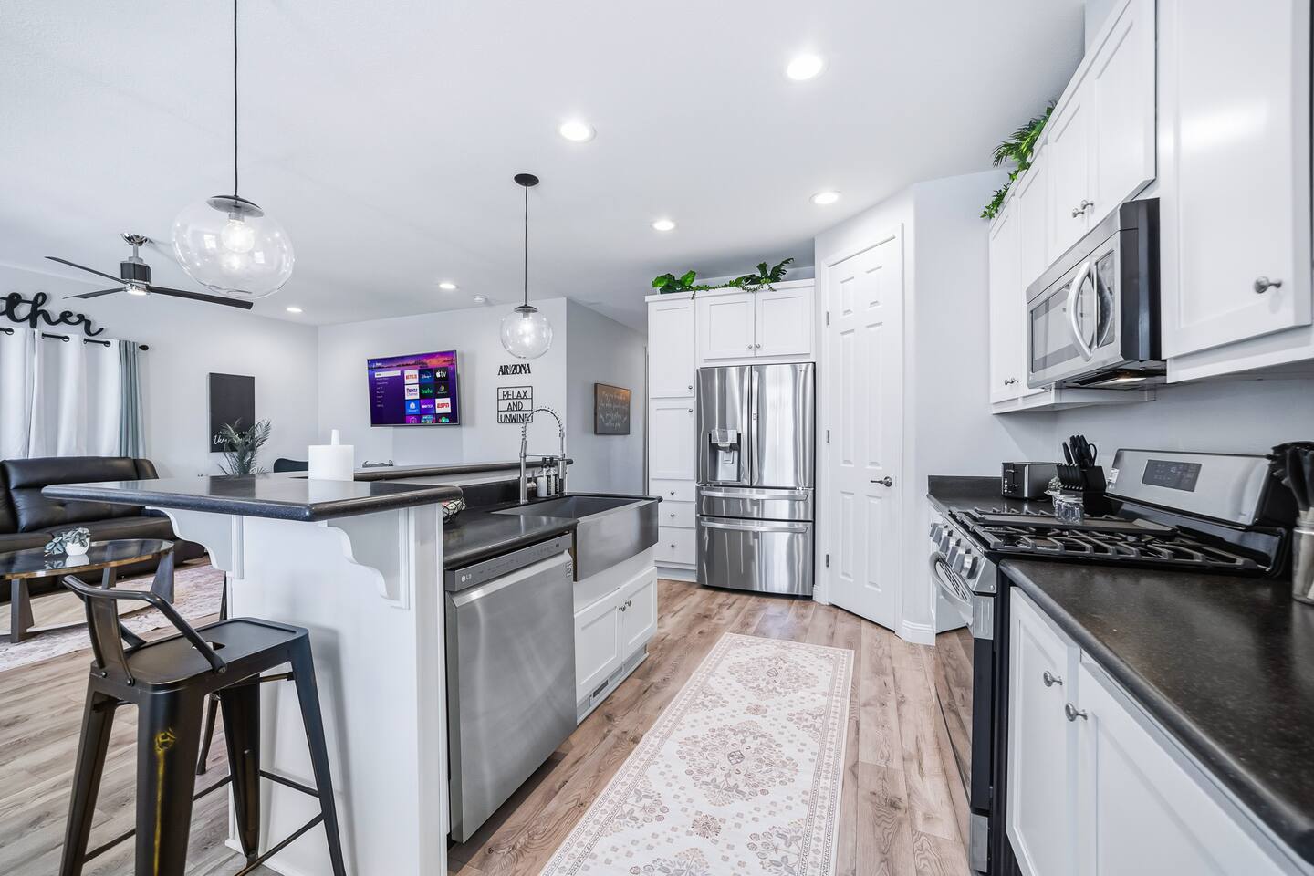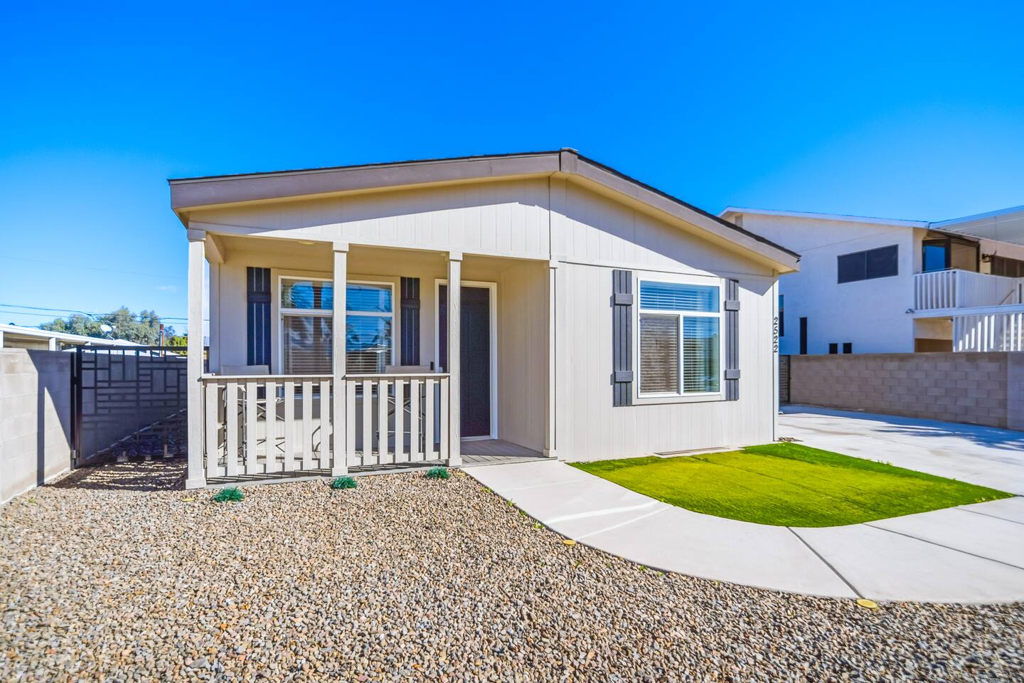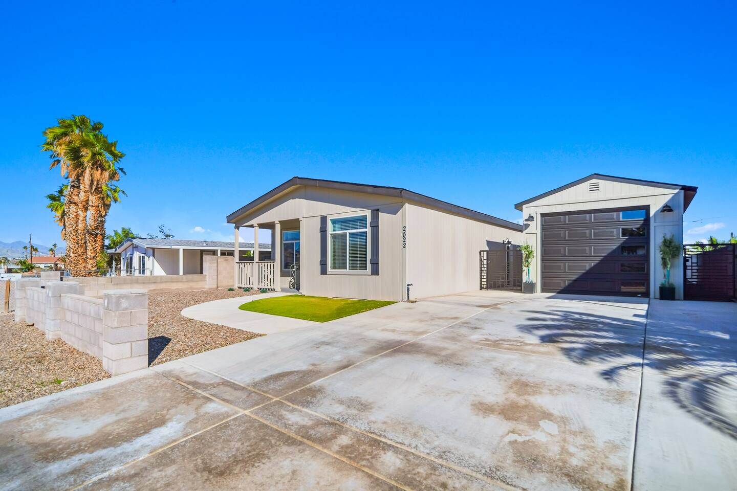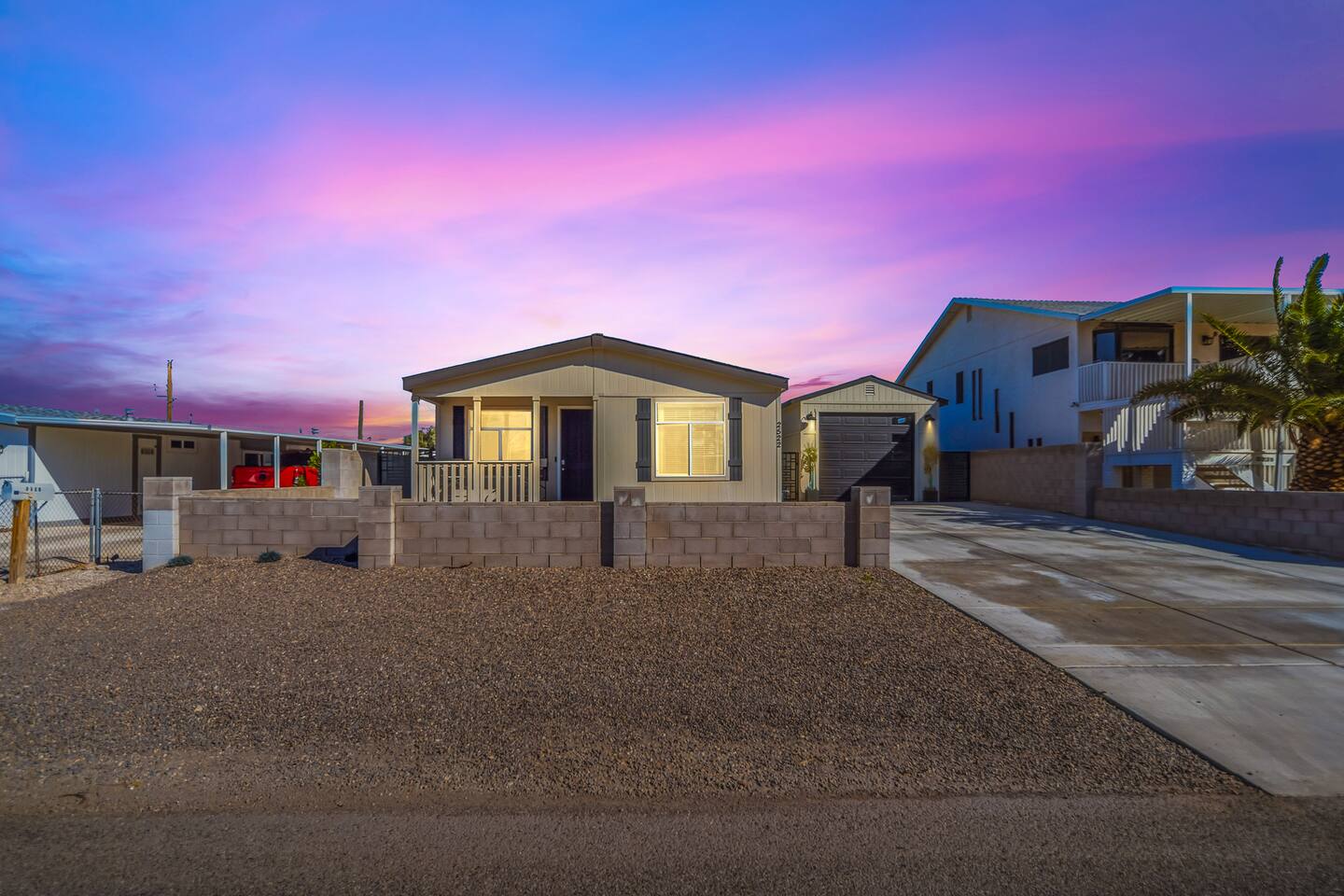 The Space This modern single-story home offers a comfortable and functional layout designed for relaxing after a day on the river. The open-concept living area features plenty of natural light and flows seamlessly into the fully equipped kitchen with ample counter space and seating for casual meals. The home includes three well-appointed bedrooms and two full bathrooms, providing space and privacy for families or groups. The primary bedroom features an en-suite bathroom, while the additional bedrooms are conveniently located near the second bath. Step outside to a private fenced backyard with a covered patio, perfect for morning coffee or evening downtime. Driveway parking is available for guests (garage is not accessible). Clean, modern, and thoughtfully laid out—this space is ideal for short getaways or extended stays near the Colorado River.