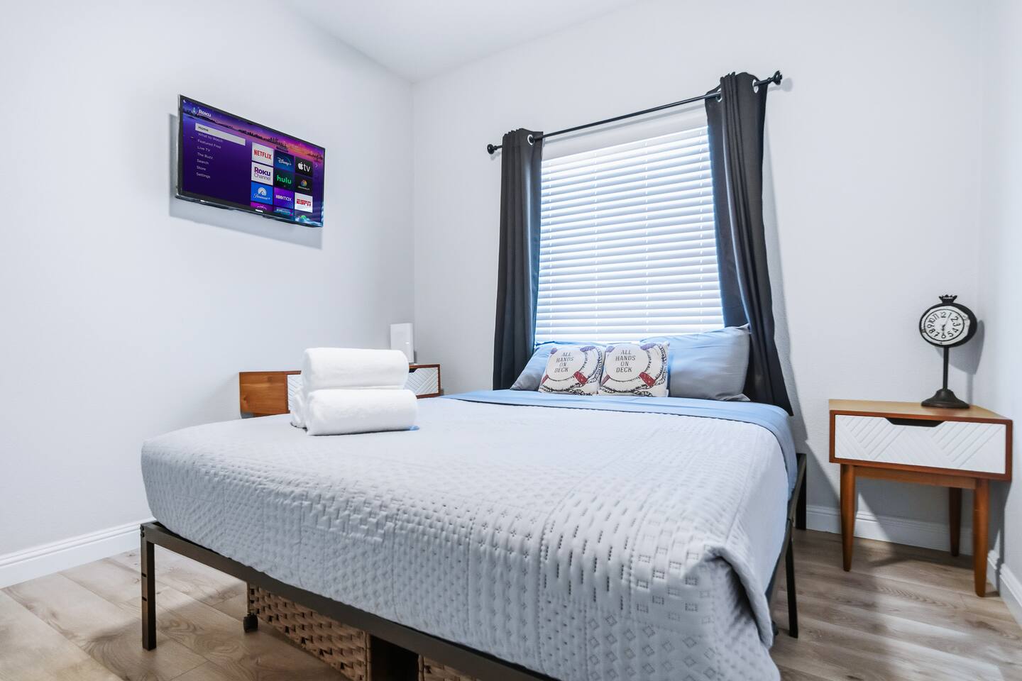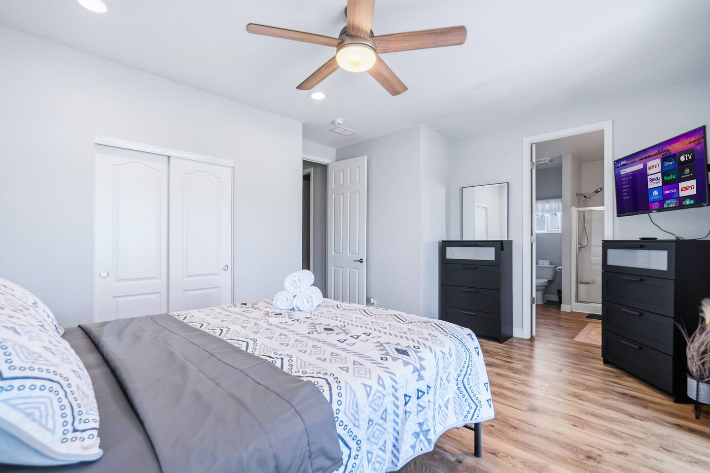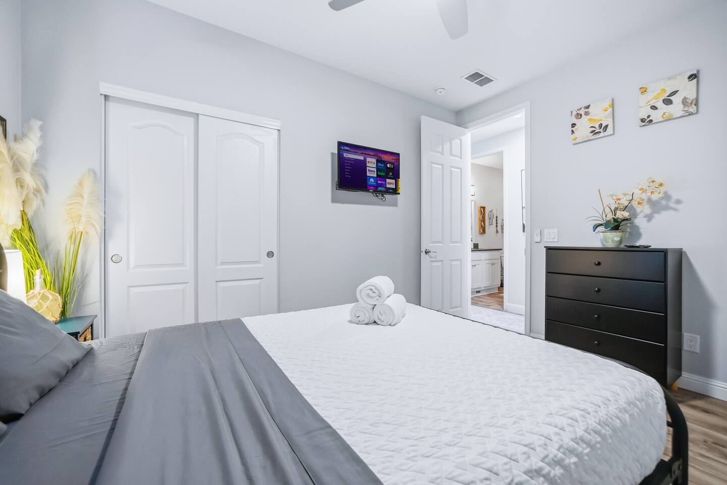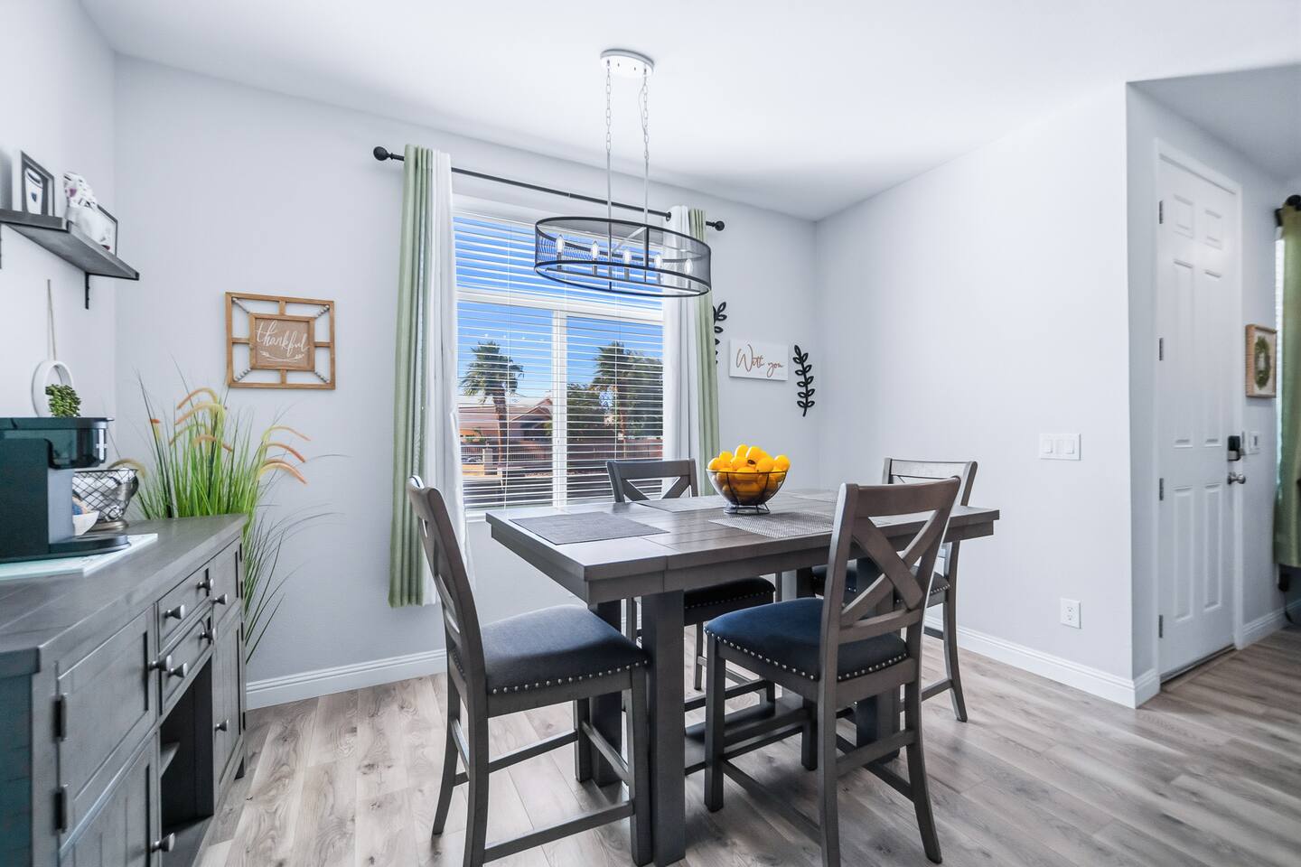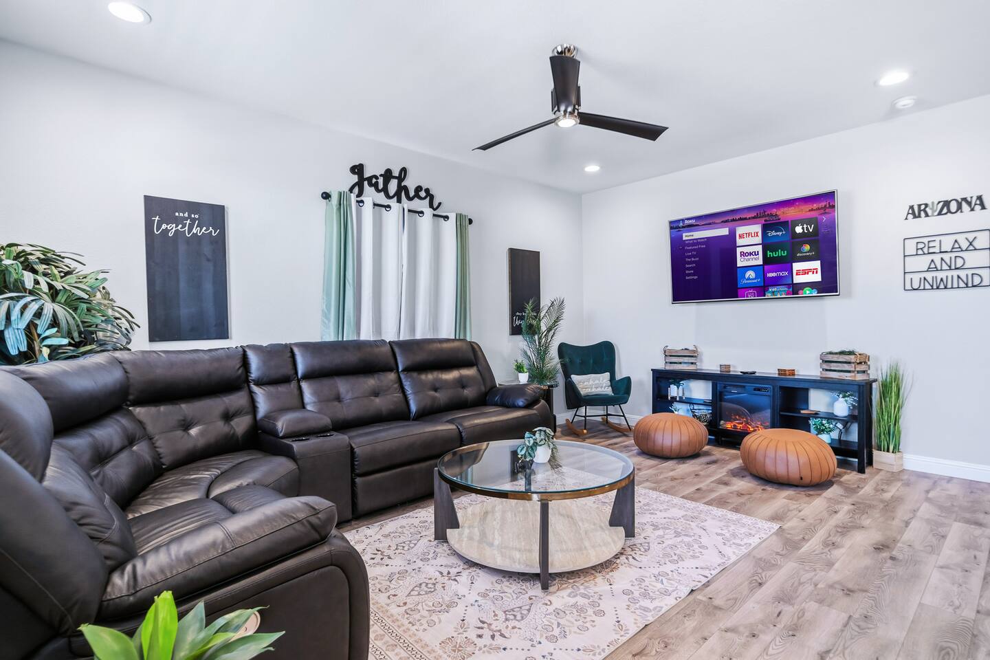 The Space This modern single-story home offers a comfortable and functional layout designed for relaxing after a day on the river. The open-concept living area features plenty of natural light and flows seamlessly into the fully equipped kitchen with ample counter space and seating for casual meals. The home includes three well-appointed bedrooms and two full bathrooms, providing space and privacy for families or groups. The primary bedroom features an en-suite bathroom, while the additional bedrooms are conveniently located near the second bath. Step outside to a private fenced backyard with a covered patio, perfect for morning coffee or evening downtime. Driveway parking is available for guests (garage is not accessible). Clean, modern, and thoughtfully laid out—this space is ideal for short getaways or extended stays near the Colorado River.