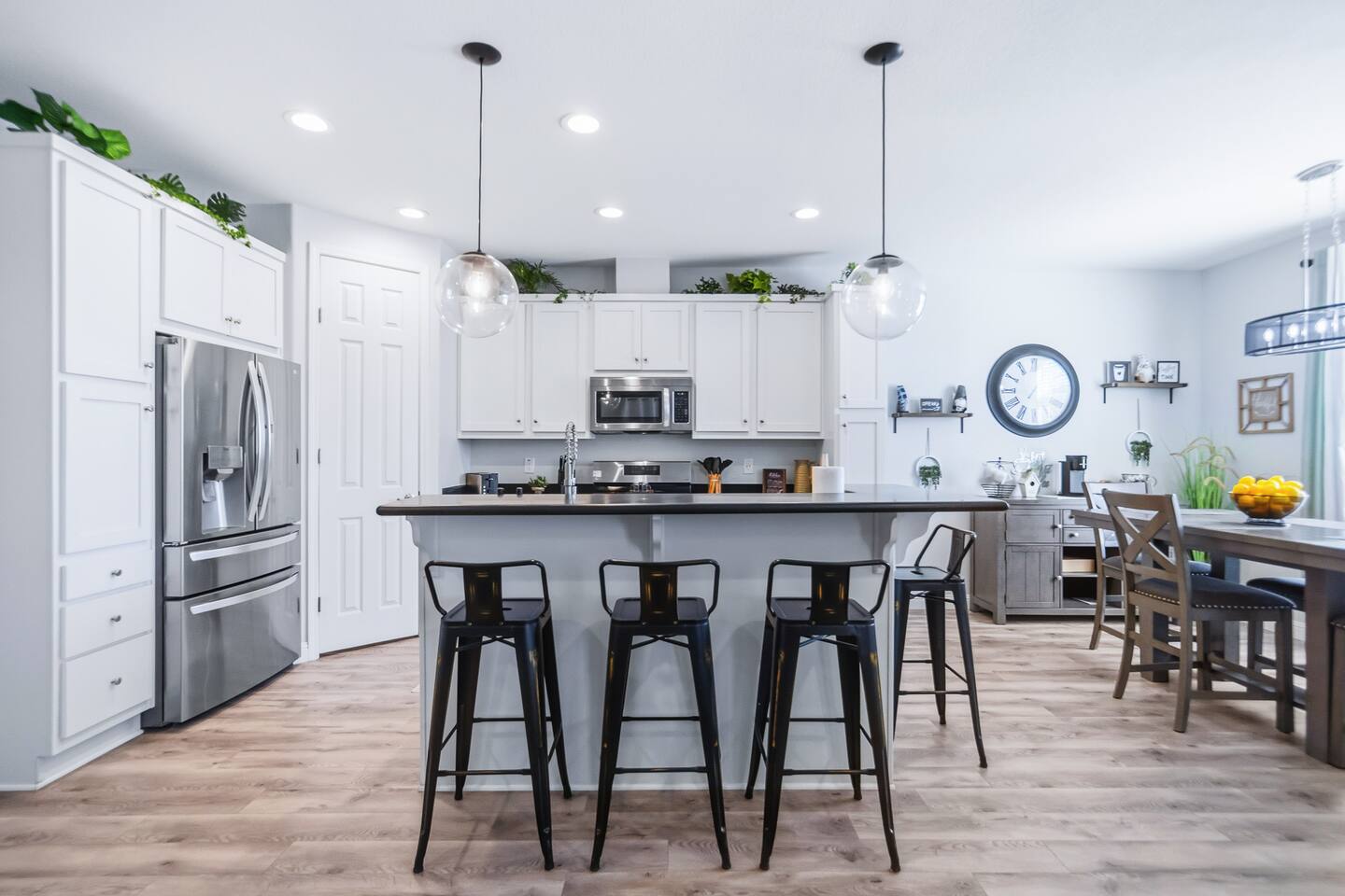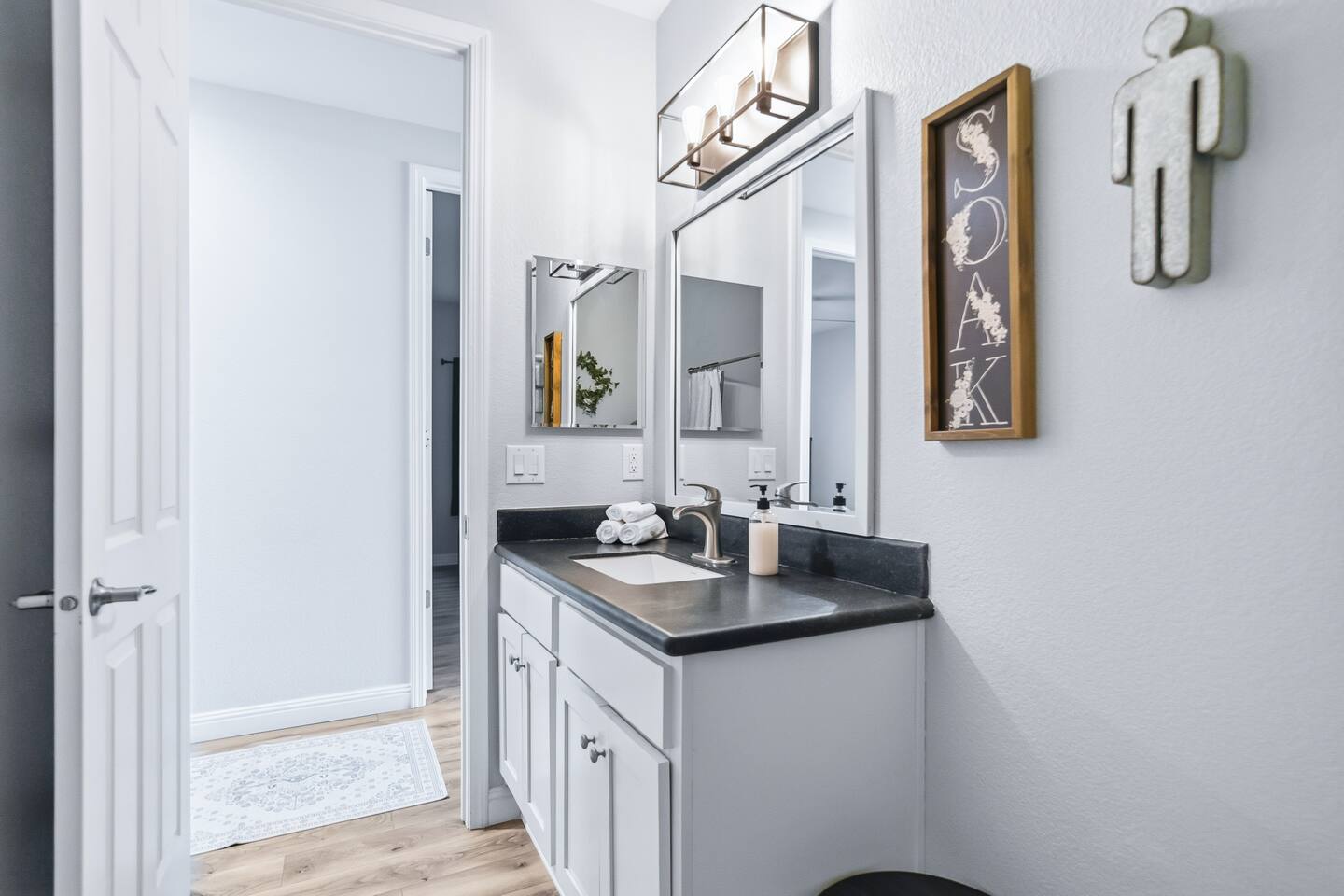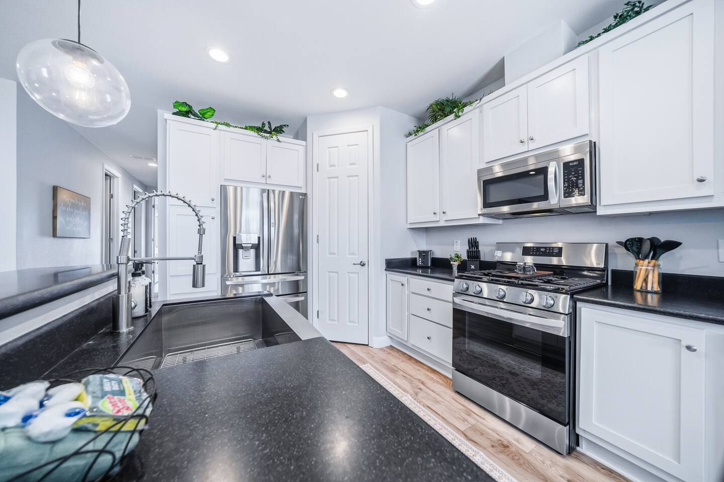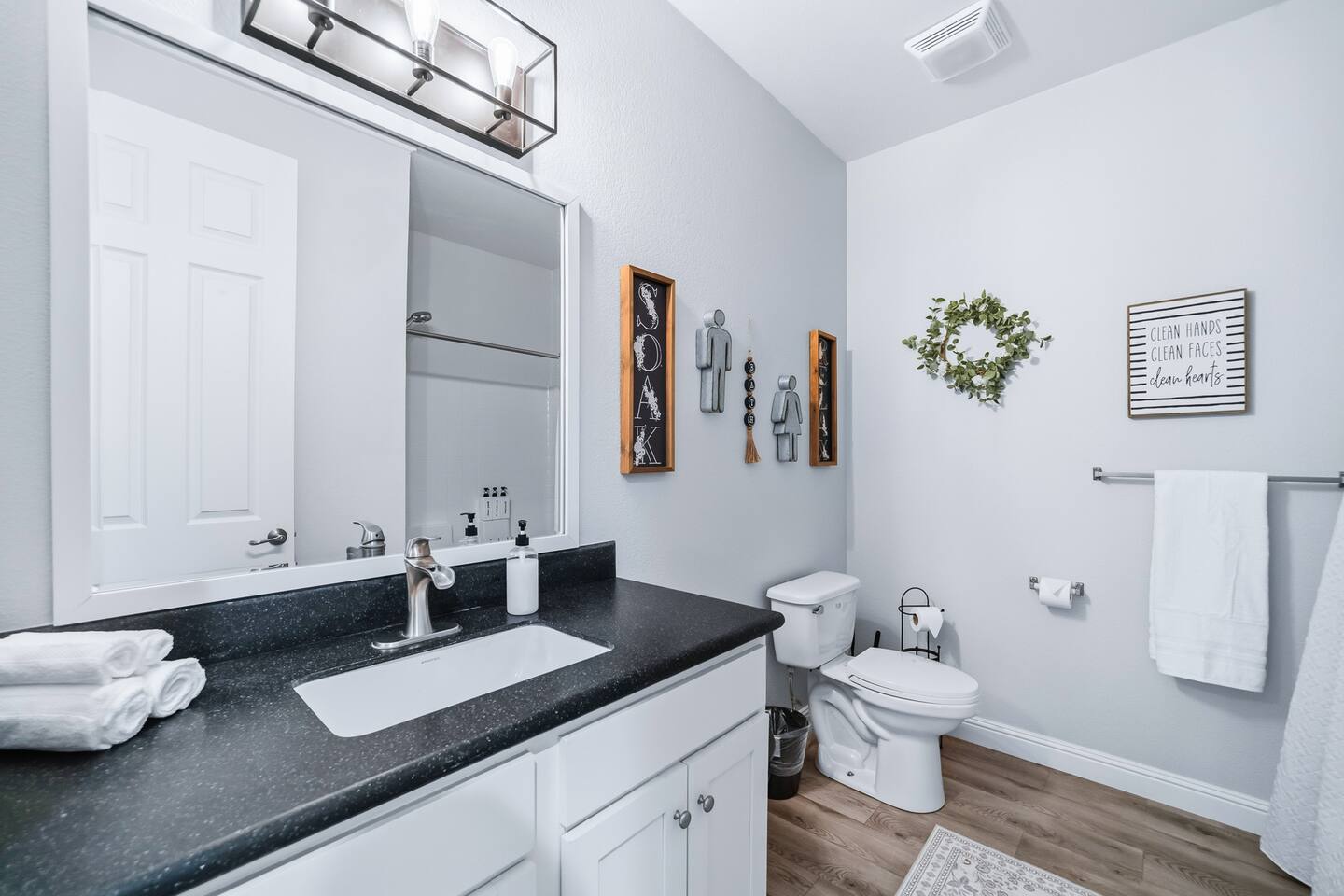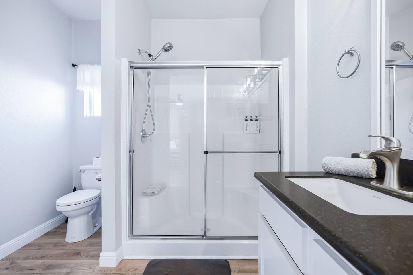 The Space This modern single-story home offers a comfortable and functional layout designed for relaxing after a day on the river. The open-concept living area features plenty of natural light and flows seamlessly into the fully equipped kitchen with ample counter space and seating for casual meals. The home includes three well-appointed bedrooms and two full bathrooms, providing space and privacy for families or groups. The primary bedroom features an en-suite bathroom, while the additional bedrooms are conveniently located near the second bath. Step outside to a private fenced backyard with a covered patio, perfect for morning coffee or evening downtime. Driveway parking is available for guests (garage is not accessible). Clean, modern, and thoughtfully laid out—this space is ideal for short getaways or extended stays near the Colorado River.