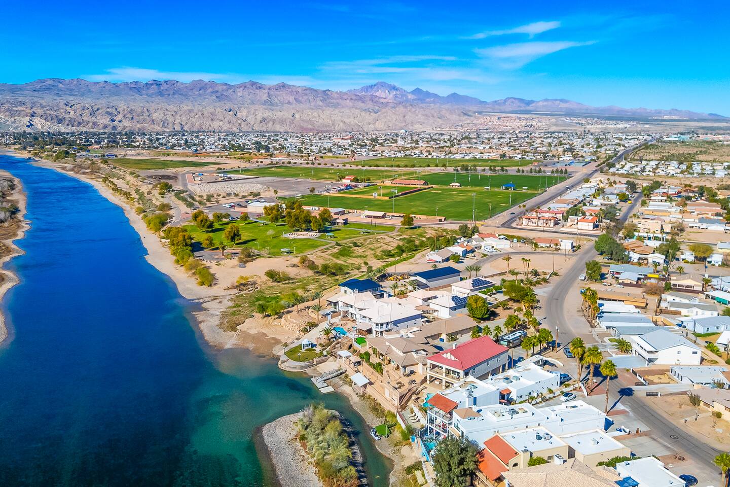 Enjoy river-area living in our modern 3-bed, 2-bath home in Bullhead City’s desirable Playa del Rio community! Built in 2021, our bright open-concept home features a fully equipped kitchen, spacious living area, comfortable bedrooms, and a private fenced backyard with covered patio. Driveway parking available. Minutes from the Colorado River, beaches, boating, and outdoor recreation—ideal for families, groups, or extended stays.