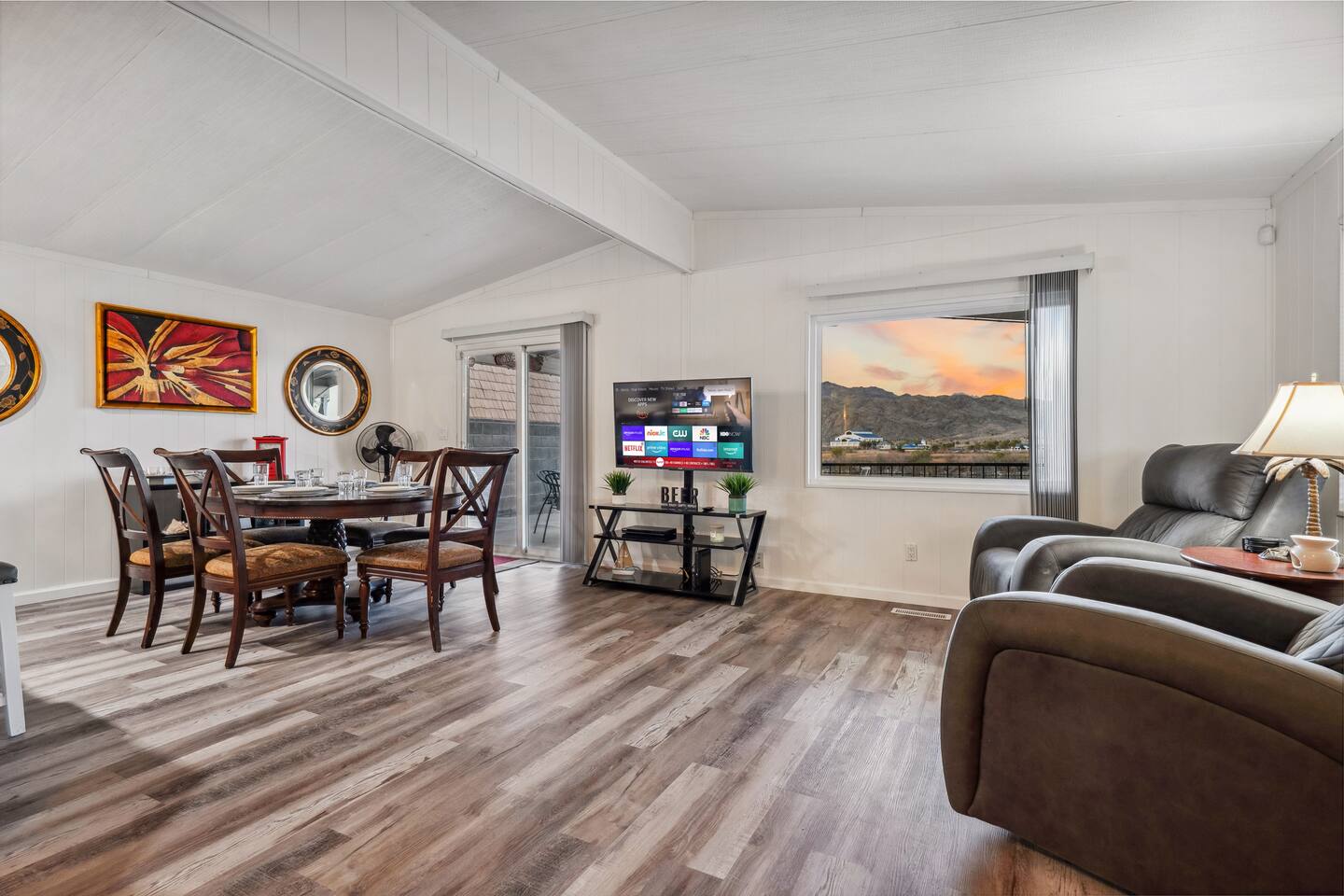 Come enjoy some R&R with your family and friends at our beautiful river house retreat. Enjoy the beautiful view of the Colorado river right in your own backyard. Enjoy the comfort of parking your water toys down below on our private dock where you can hop on and enjoy anytime you want without the hassle of waiting in line and launching your watercrafts daily during your visit. Only 8 miles from Laughlin casinos and within a city full of hidden gems, your paradise getaway awaits you!