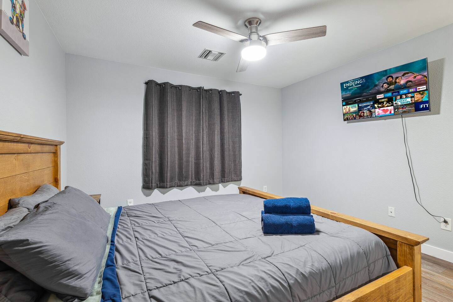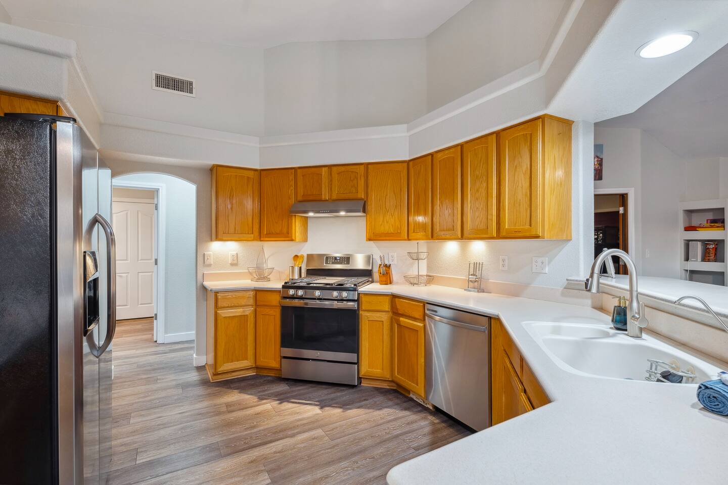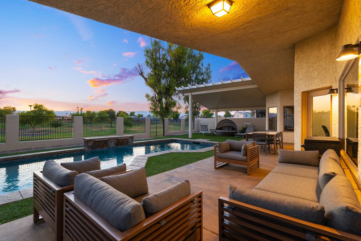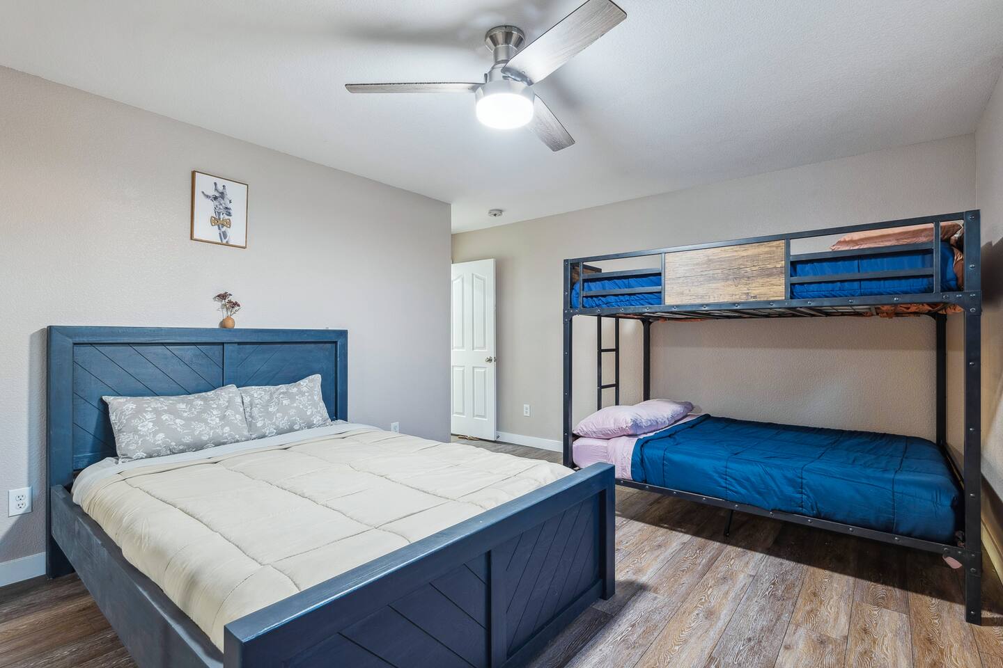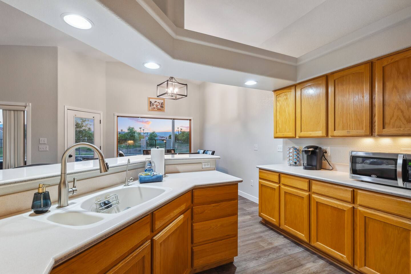 2,355 Sq Ft | 4 bedrooms | 2 bathrooms Find all the general home comforts you’d expect at home, ideal for families looking to explore the Colorado River! Bedroom 1: Two full-over-full bunk beds Bedroom 2: King Bed Bedroom 3: Full-over-full bunk bed and queen bed Bedroom 4: King bed OUTDOOR LIVING: BBQ, Pool, Greenbelt views and access. INDOOR LIVING: Modern living space, 4 Smart TVs, dining table KITCHEN: Fully equipped, breakfast bar, updated appliances, Keurig (coffee, creamer & sugar provided), dishware/flatware, pots/pans, cooking essentials, spices GENERAL: Free WiFi, linens/towels, washer/dryer, central A/C & heating, step-free access, contactless check-in FAQ: 2 exterior security cameras PARKING: Driveway (2 vehicles). The garage is NOT available for use at this time.