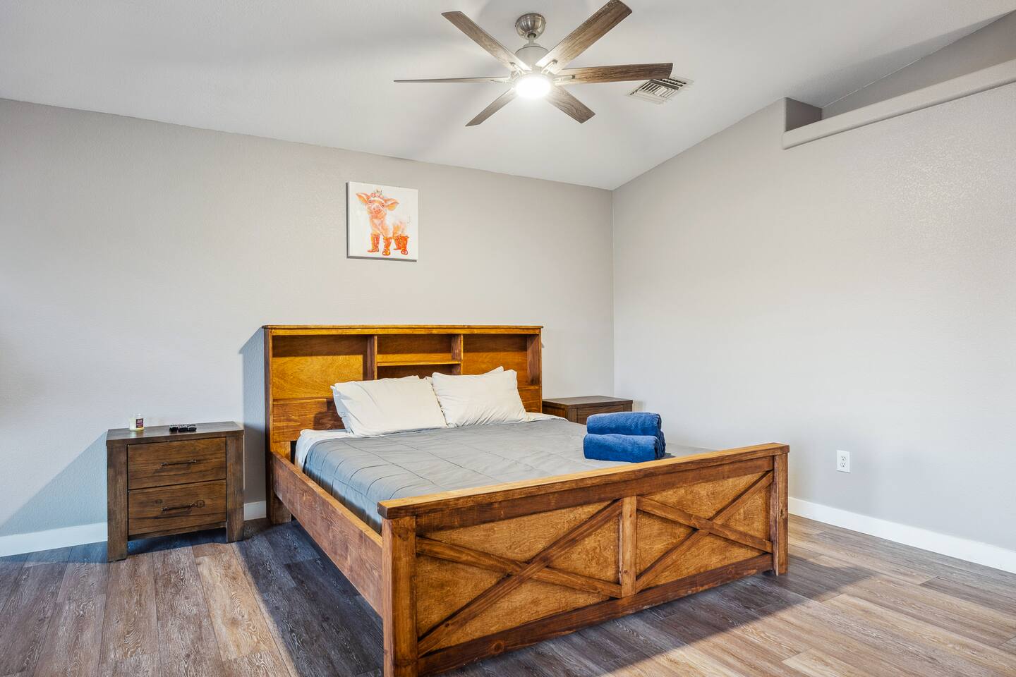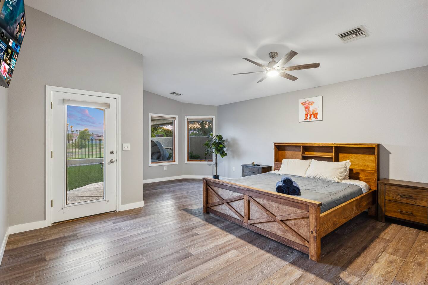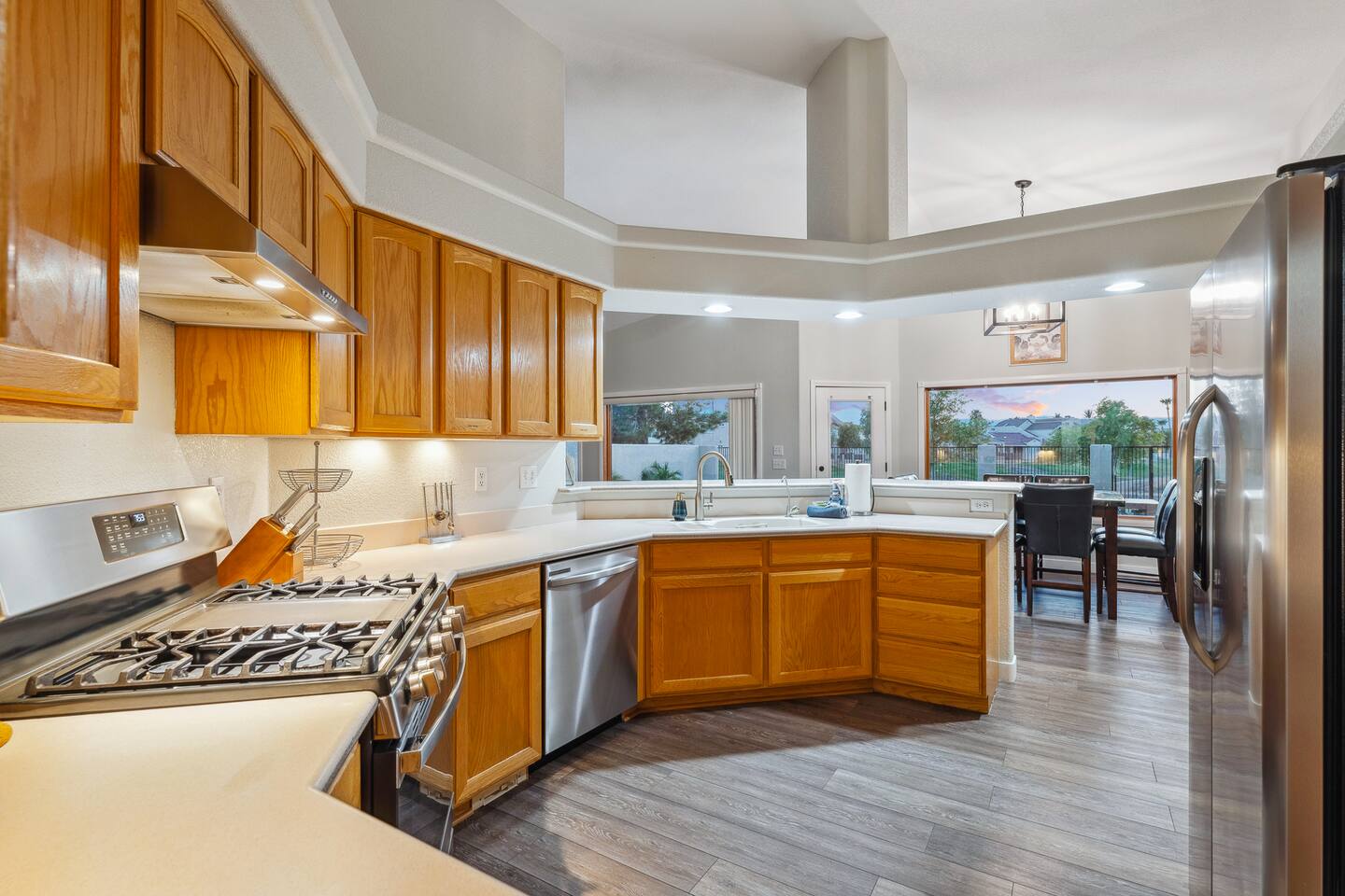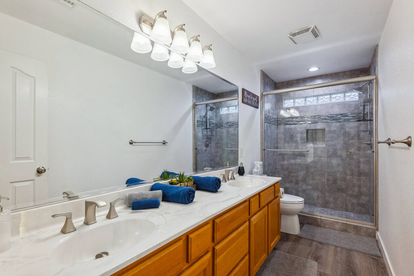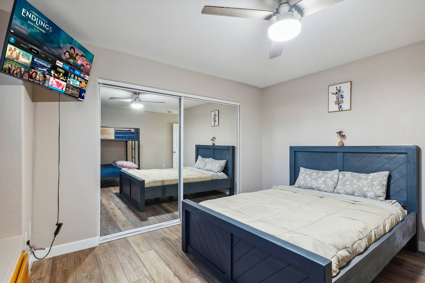 2,355 Sq Ft | 4 bedrooms | 2 bathrooms Find all the general home comforts you’d expect at home, ideal for families looking to explore the Colorado River! Bedroom 1: Two full-over-full bunk beds Bedroom 2: King Bed Bedroom 3: Full-over-full bunk bed and queen bed Bedroom 4: King bed OUTDOOR LIVING: BBQ, Pool, Greenbelt views and access. INDOOR LIVING: Modern living space, 4 Smart TVs, dining table KITCHEN: Fully equipped, breakfast bar, updated appliances, Keurig (coffee, creamer & sugar provided), dishware/flatware, pots/pans, cooking essentials, spices GENERAL: Free WiFi, linens/towels, washer/dryer, central A/C & heating, step-free access, contactless check-in FAQ: 2 exterior security cameras PARKING: Driveway (2 vehicles). The garage is NOT available for use at this time.