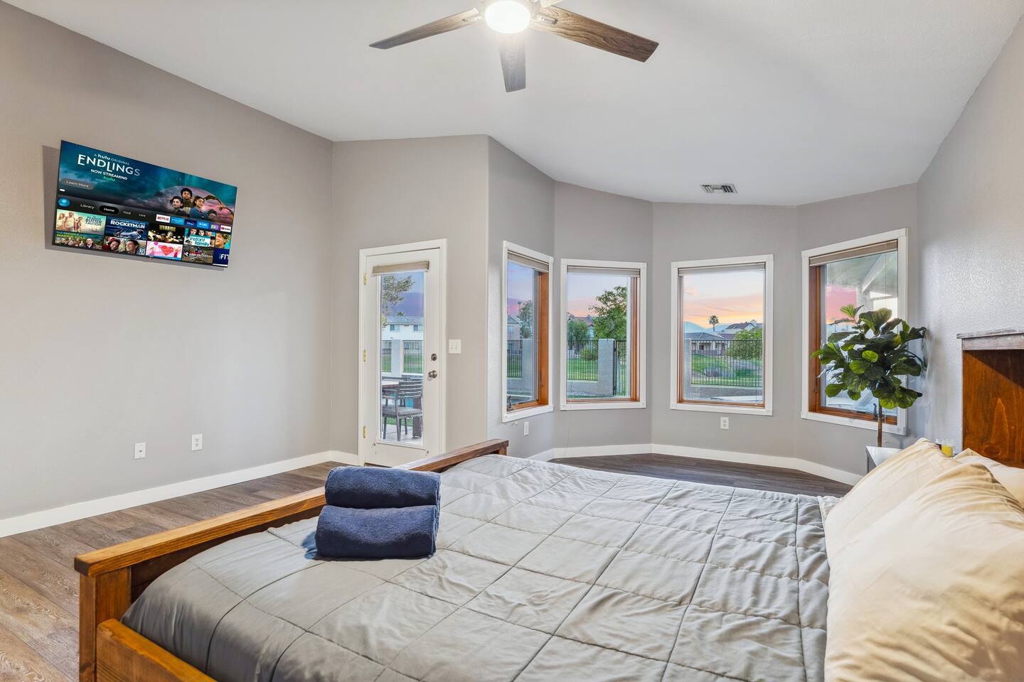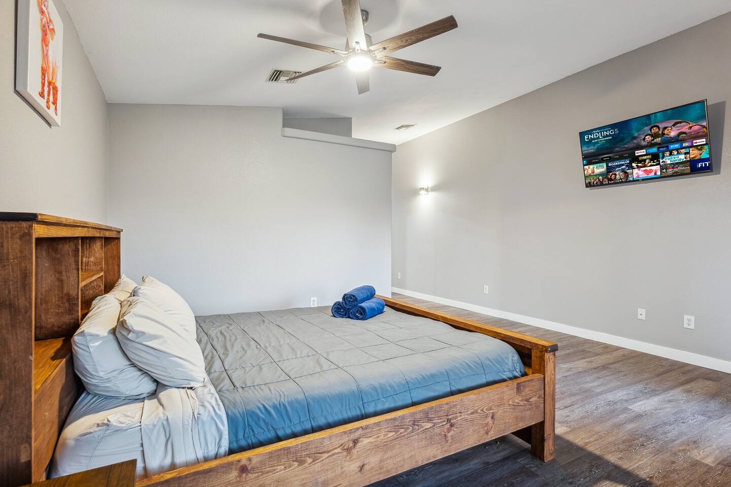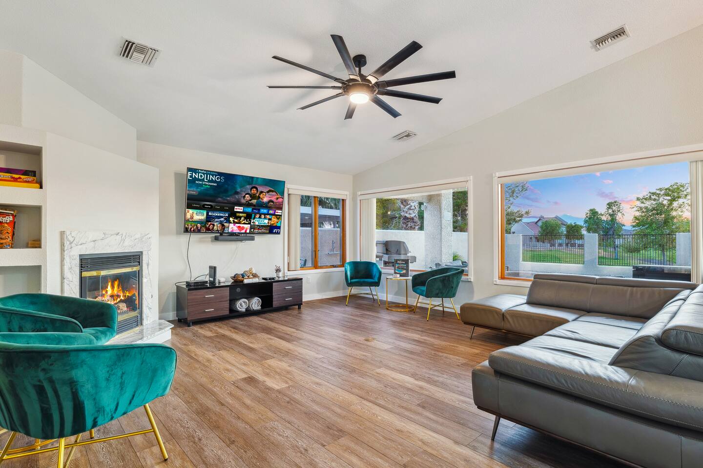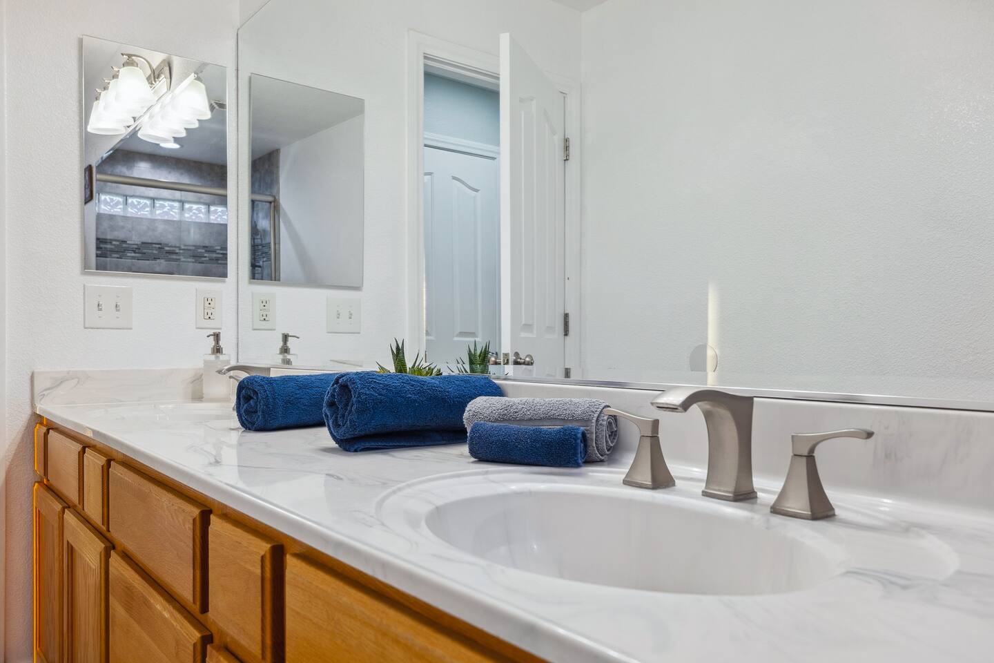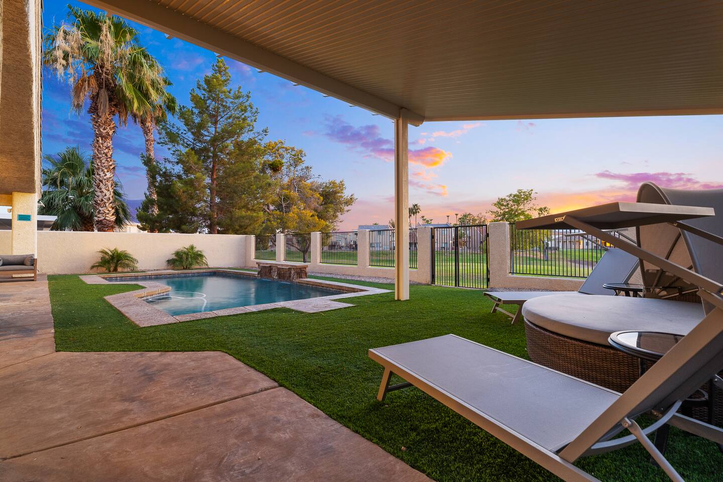 2,355 Sq Ft | 4 bedrooms | 2 bathrooms Find all the general home comforts you’d expect at home, ideal for families looking to explore the Colorado River! Bedroom 1: Two full-over-full bunk beds Bedroom 2: King Bed Bedroom 3: Full-over-full bunk bed and queen bed Bedroom 4: King bed OUTDOOR LIVING: BBQ, Pool, Greenbelt views and access. INDOOR LIVING: Modern living space, 4 Smart TVs, dining table KITCHEN: Fully equipped, breakfast bar, updated appliances, Keurig (coffee, creamer & sugar provided), dishware/flatware, pots/pans, cooking essentials, spices GENERAL: Free WiFi, linens/towels, washer/dryer, central A/C & heating, step-free access, contactless check-in FAQ: 2 exterior security cameras PARKING: Driveway (2 vehicles). The garage is NOT available for use at this time.