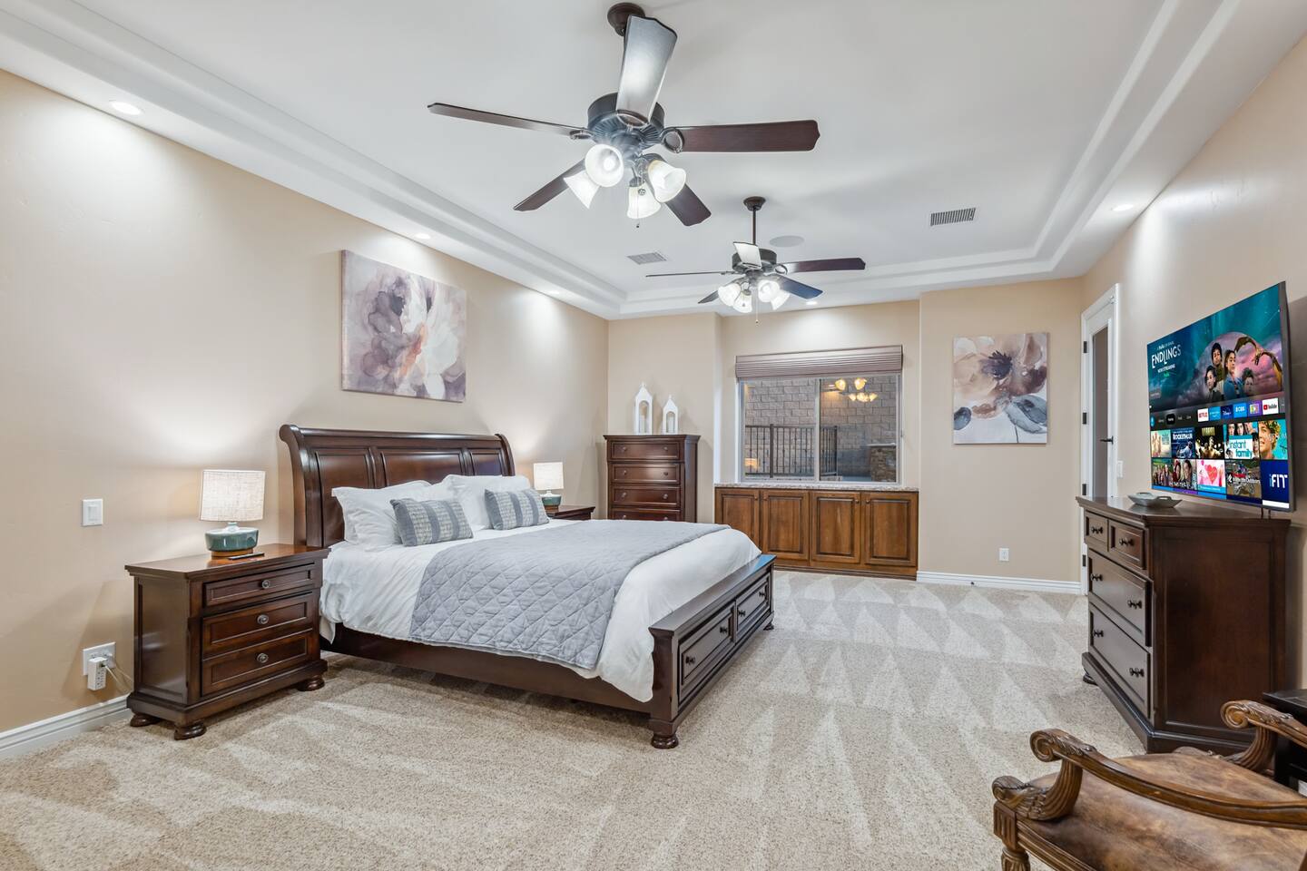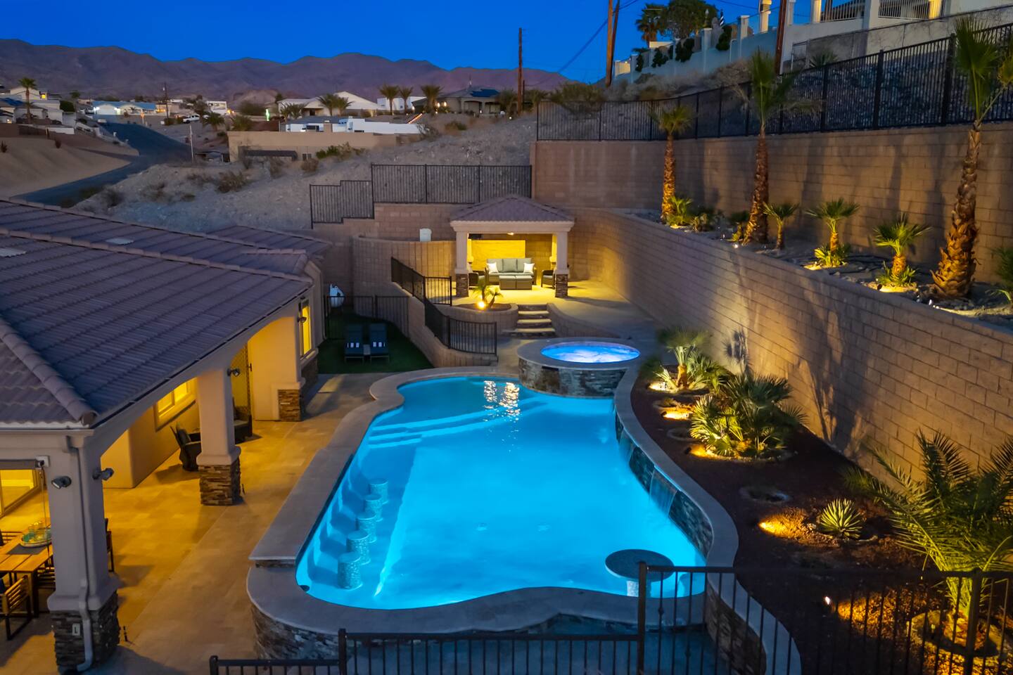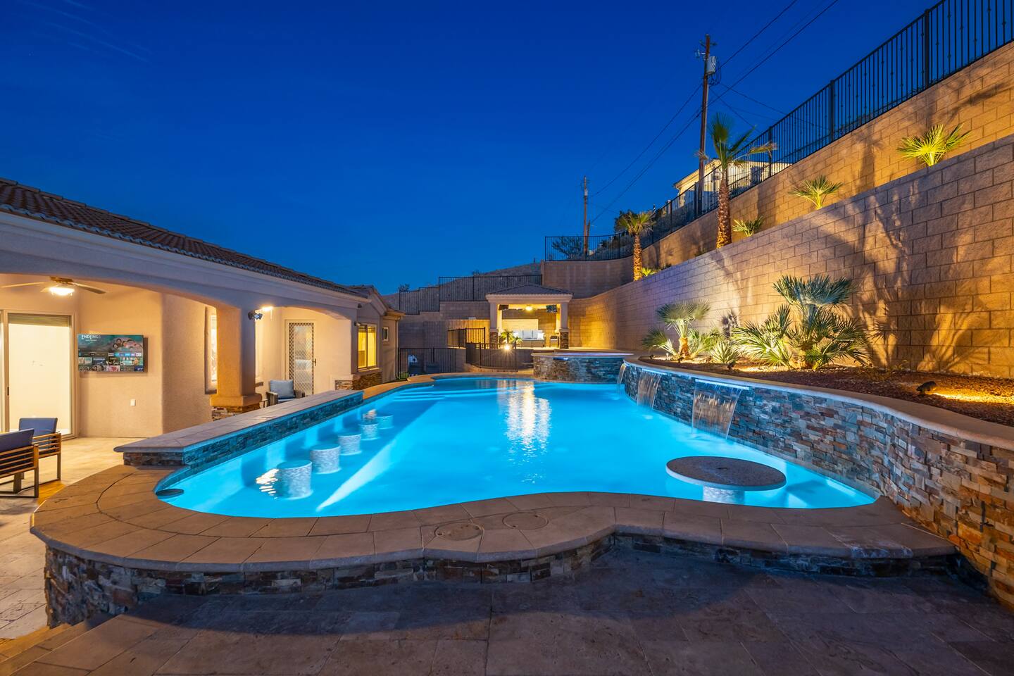 Welcome to "Grand Luxe Havasu", our private luxury retreat in Lake Havasu! Our stunning home features a sparkling pool, spa, and a wet bar perfect for entertaining. With no neighbors on either side, enjoy privacy while taking in breathtaking sunset views. Feel free to store your boat in our spacious RV garage. Whether you're unwinding by the pool or catching up with friends on the in-pool barstools, be prepared to have the perfect combination of relaxation and entertainment!