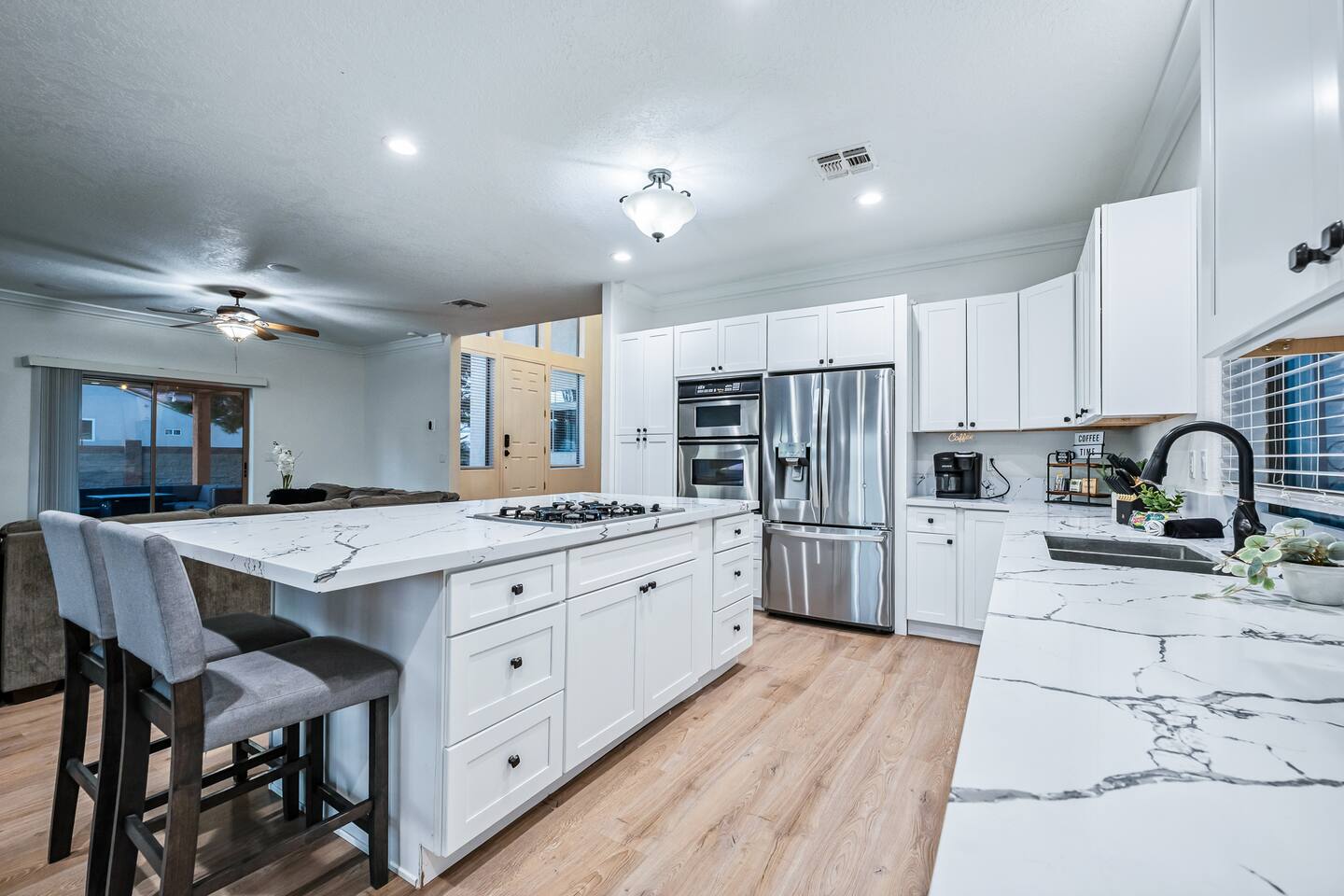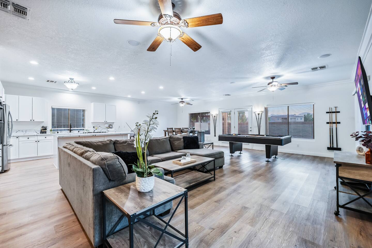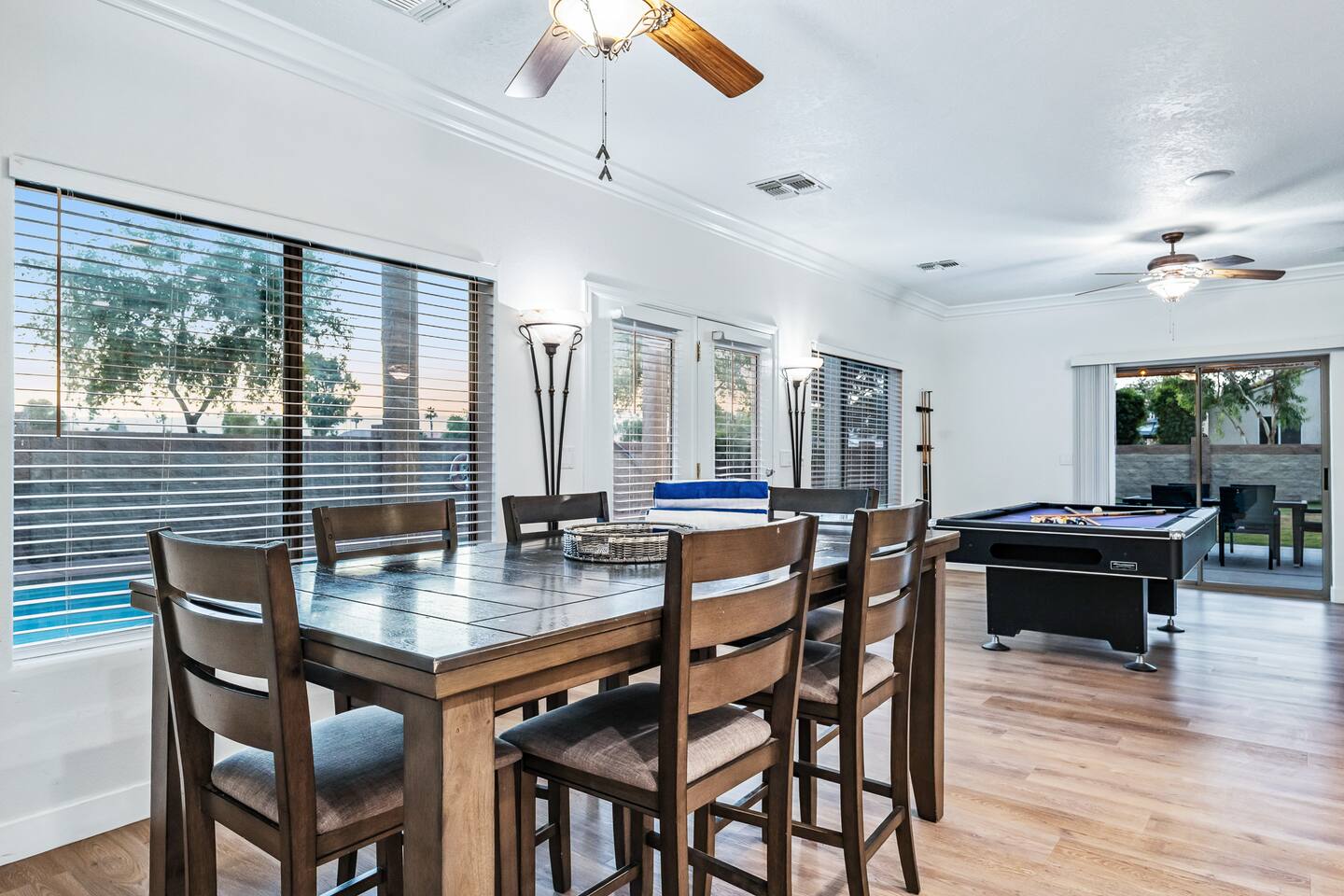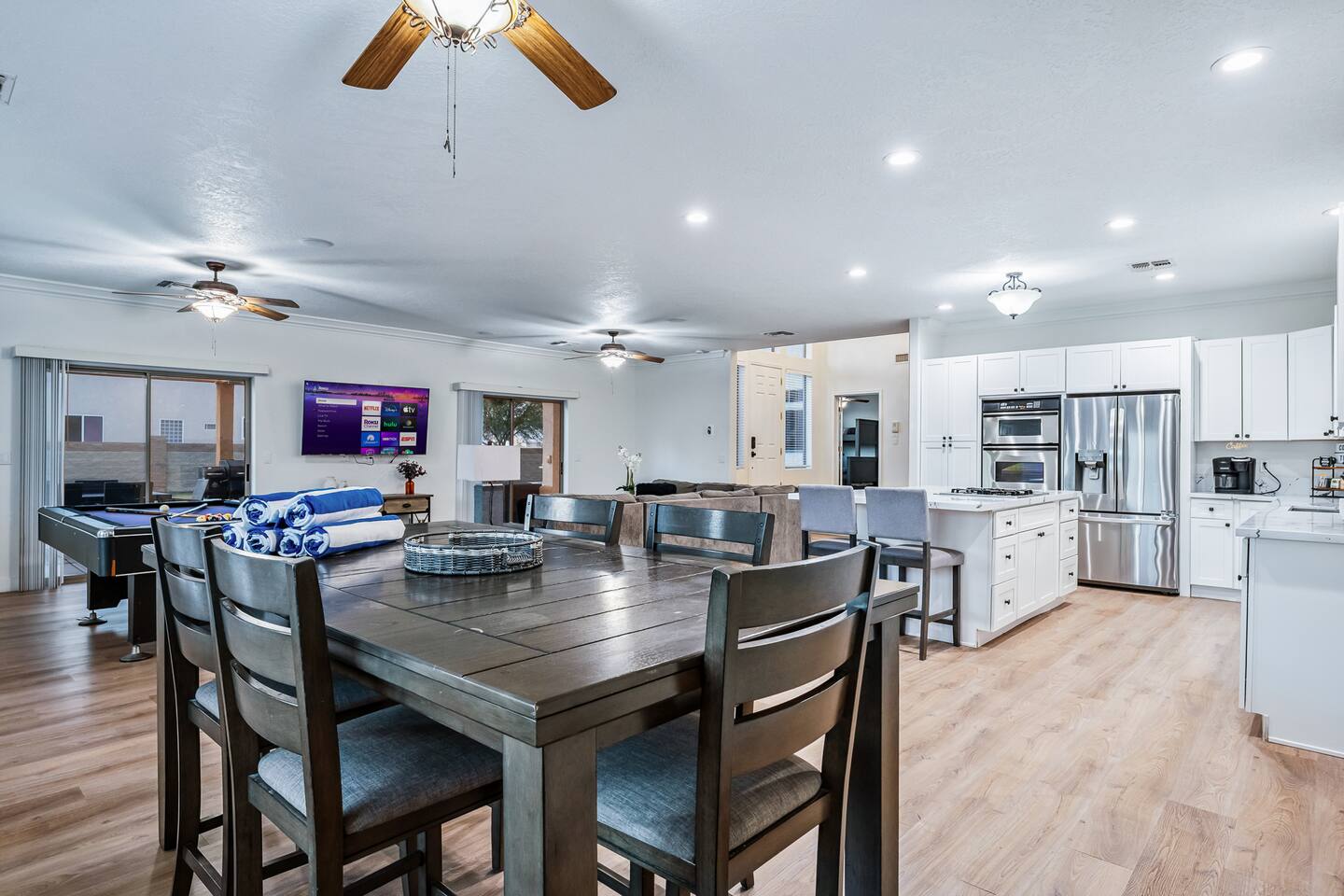 Welcome to "Sun of the Green"—our stunning Bullhead City retreat near the Colorado River! Our spacious escape sleeps 10 and offers relaxing greenbelt views, a sparkling pool, soothing spa, and fun-filled pool table. Whether you're lounging by the water, soaking in the spa, or enjoying friendly competition indoors, our home is perfect for families or groups seeking both adventure and tranquility in the Arizona sun. With access to a private boat launch and beach less than a quarter mile away!