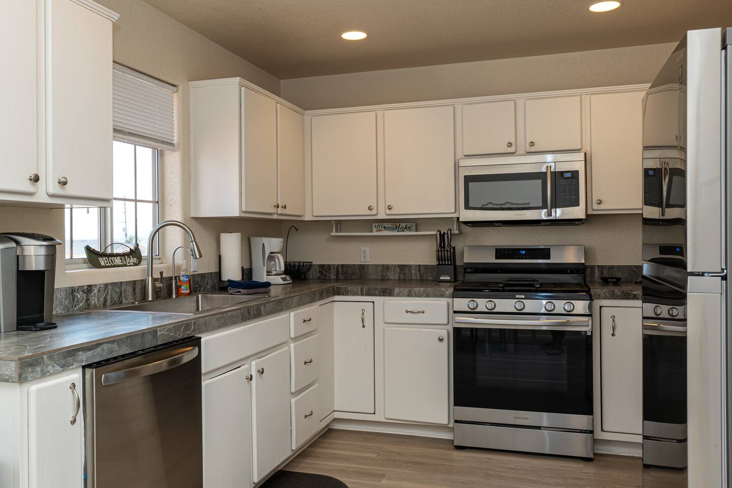 Quiet neighborhood; there are no houses behind our lot which gives you added privacy. Full-time neighbors next door.