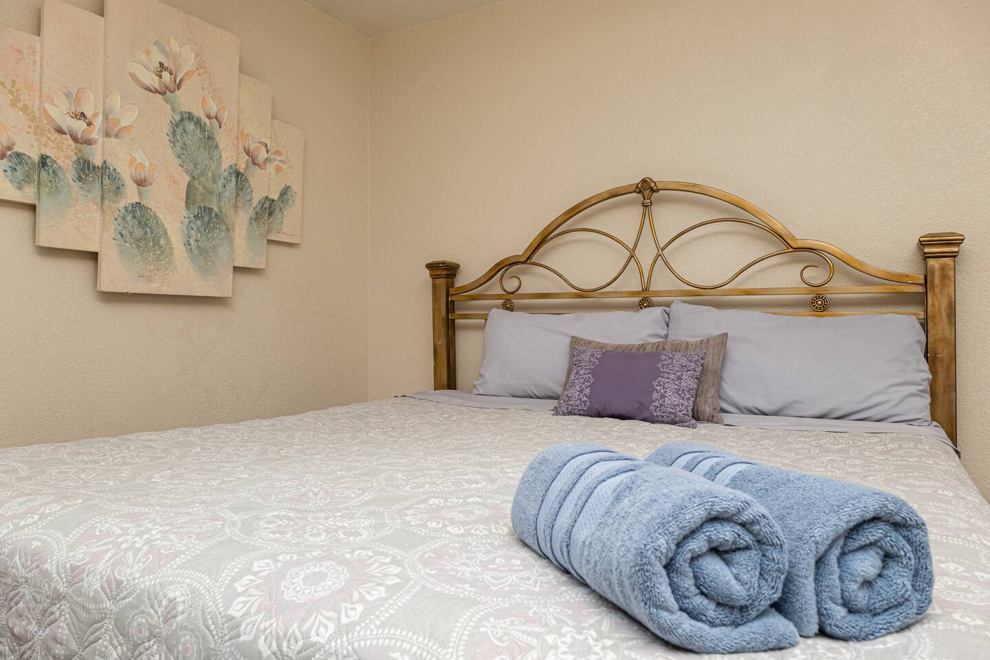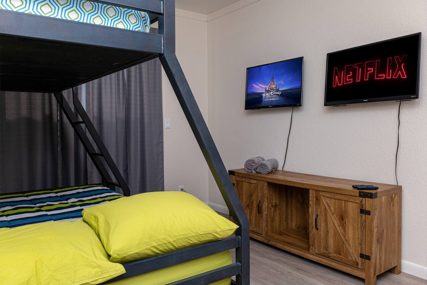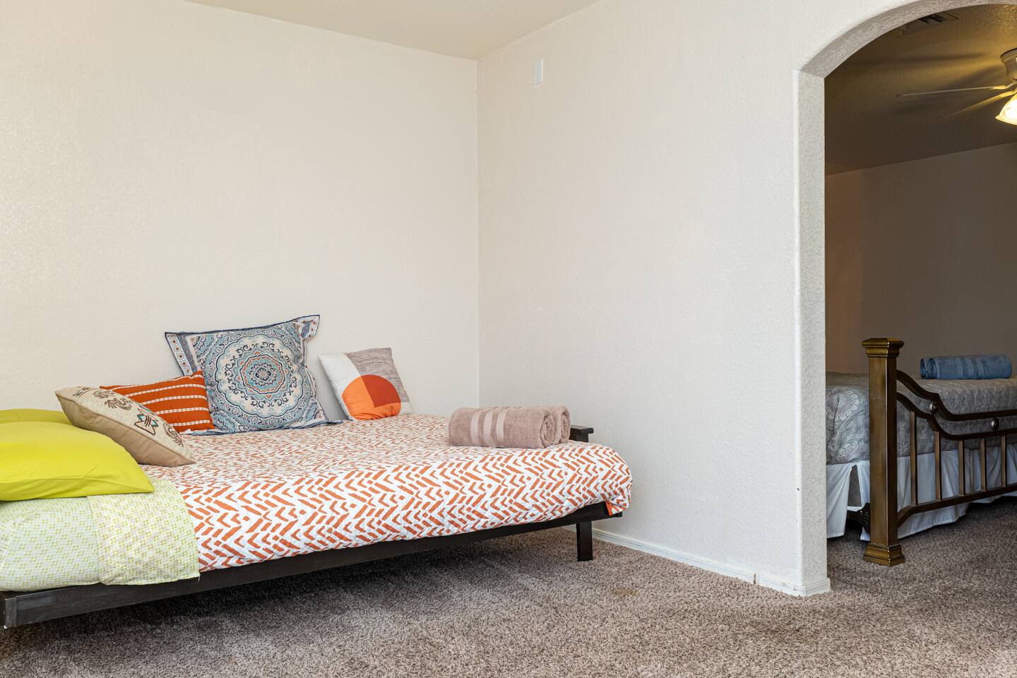 Our space offers sleeping for up to 10 Master: King with Queen futon in master suite area/cabana room Bedroom 2: Queen Den/Kids Room: Bunk with full on bottom, twin on top Plus one roll away bed