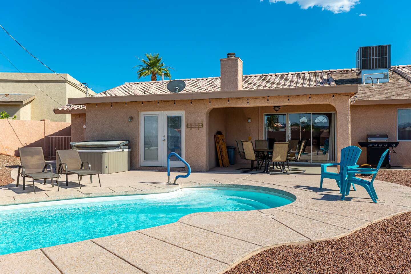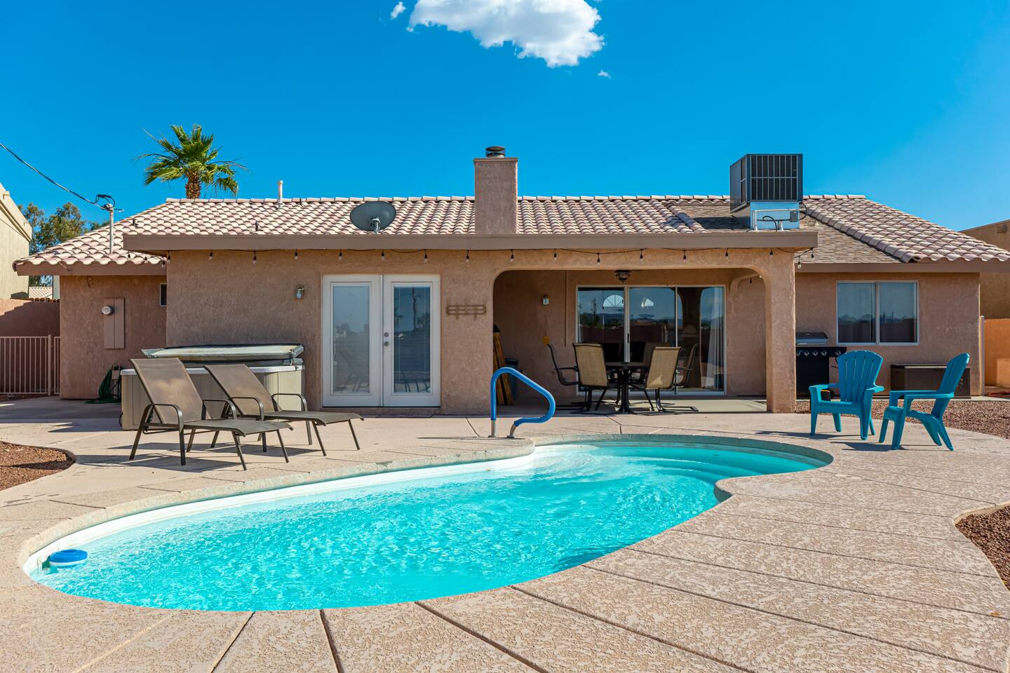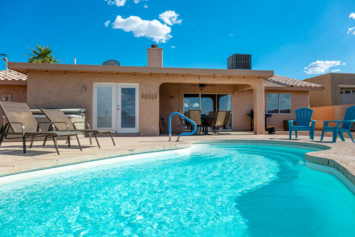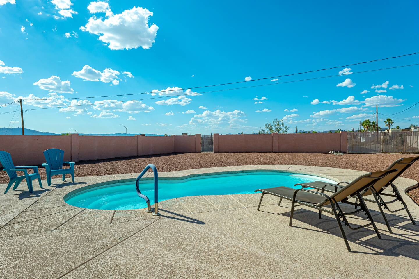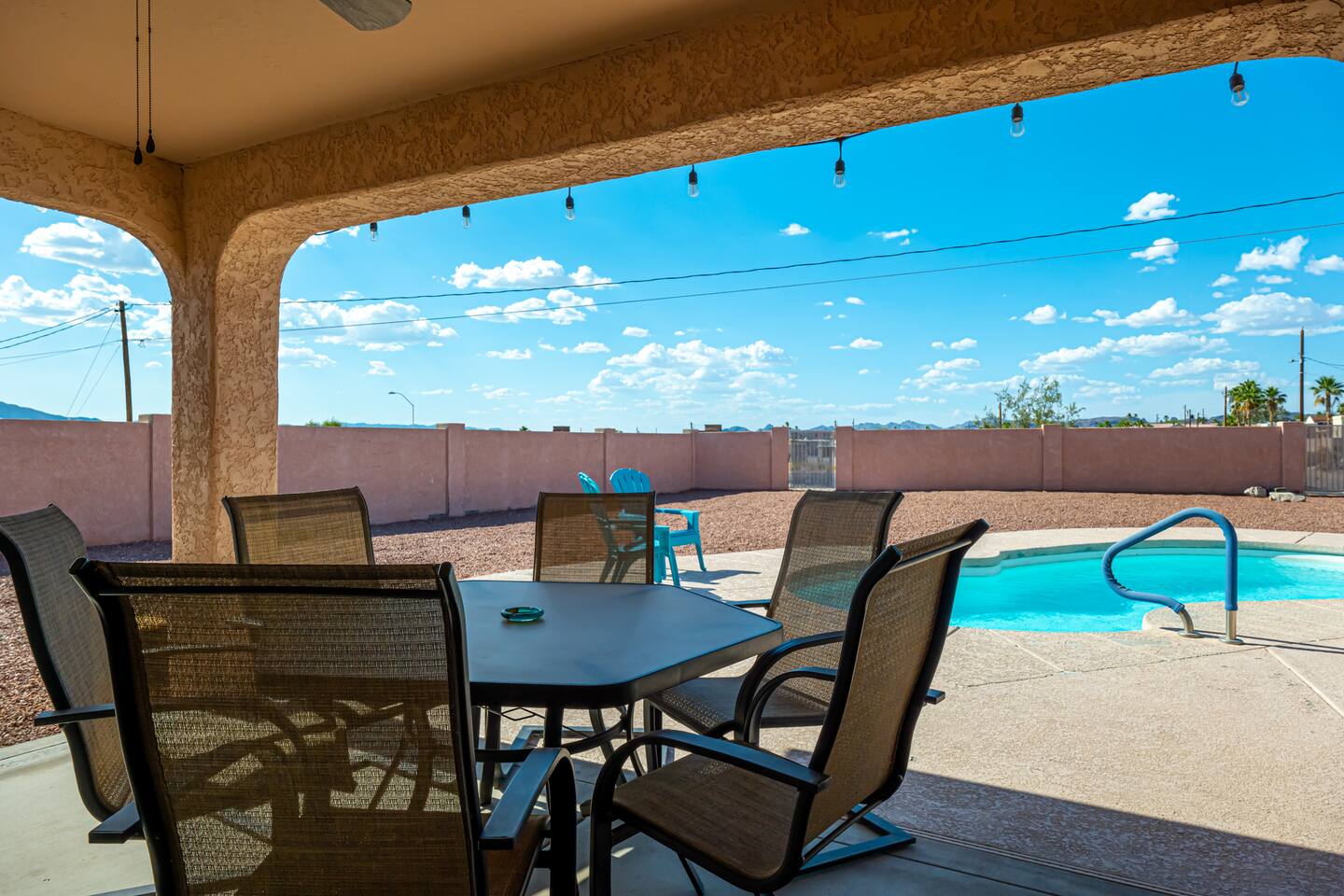 You are sure to love staying here as much as we do! The views=spectacular. Location=convenient, just 5 min from LH State Park.Space=ample parking for all your toys. House=spacious &comfortable floor plan inside. Our favorite things to do=stargaze by the pool & watch lightening shows from inside the cabana room. The pool is perfect for lounging in after a long day of fun in the sun! The wide-open back yard offers privacy & views of the open skies.