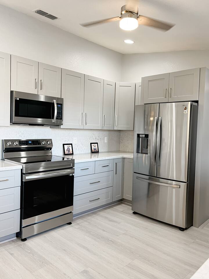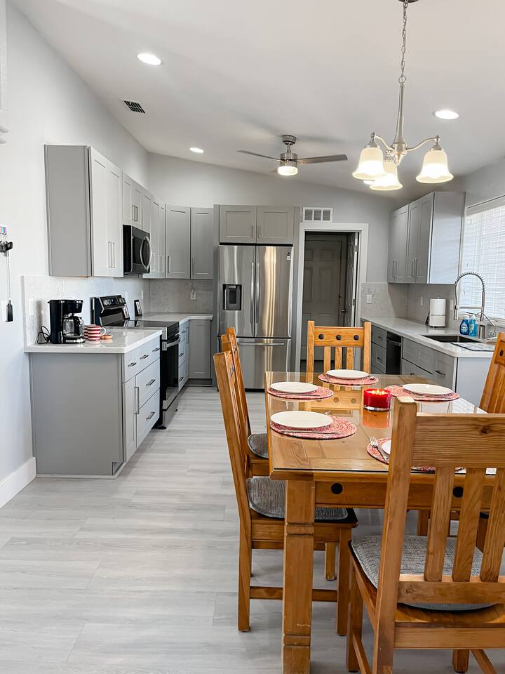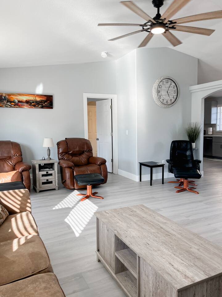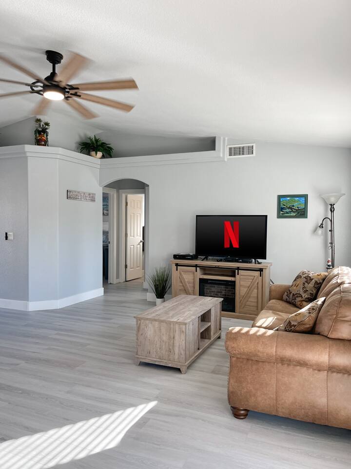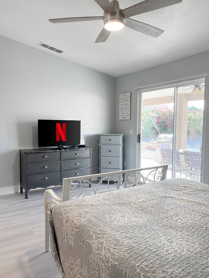 Relax with the whole family at this peaceful place to stay. Less than 5 miles to the London Bridge, nestled on a quiet street, you'll have the best of both worlds-- a quiet, comfortable stay and a convenient location. Plenty of parking for all of your desert and water toys on premise. Clean, recently updated with two ensuite bedrooms, our Havasu escape is the perfect, quiet spot for you to enjoy all that Lake Havasu has to offer.