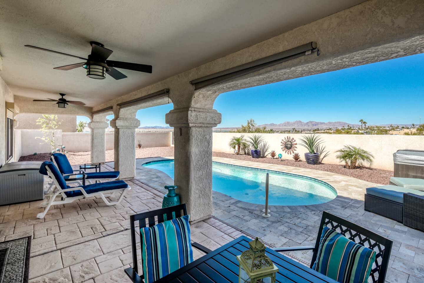 Please read the additional rules before booking. PETS Due to a SEVERE allergy in the family, we do not allow pets at this time. Unauthorized pets will result in a $500 fine. POOL The pool is not heated at this time. SPA The spa is not available for use at this time. PARKING You're welcome to use the driveway to park as well as either side of the driveway. No garage access at this time. QUIET HOURS It's a big property with neighbors a good distance away, however quiet hours from the city begin at 10pm until 7am every day. OCCUPANCY For our short term rental permit with the city of Havasu, UNDER NO CIRCUMSTANCES can there be more than 8 people on the property at ANY given time. The reservation will be cancelled with NO refunds. Upon booking to rent and stay at this property, I agree on my own behalf, my family, any and all guests, and invitees that I am fully responsible for any and all risks of injury or death. I hereby release and hold harmless the property owner and its members, principals, agents, officers, employees, and representatives (collectively “Releasees”) as well as the owner of the property.