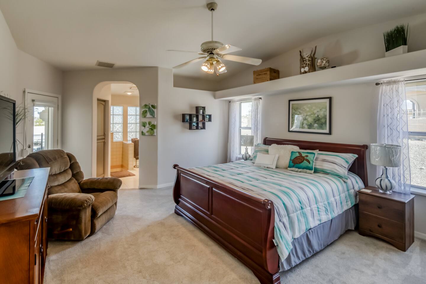 Make your escape to our quiet Lake Havasu retreat featuring a sparkling pool, breathtaking lake views, and plenty of space to unwind. With three comfortable bedrooms, this home sleeps up to 6 guests. Enjoy indoor-outdoor living with a spacious patio perfect for grilling and relaxing. Bring your boat—there’s tons of parking for all your toys! Whether you're hitting the water or soaking in the sun, this is the perfect spot for your next desert getaway.