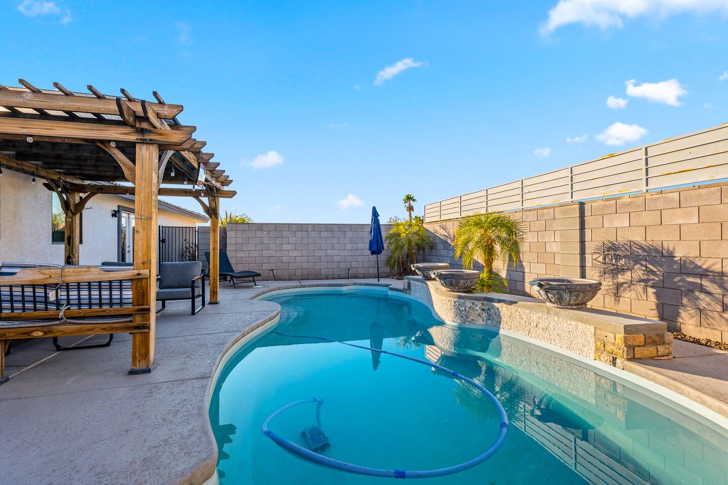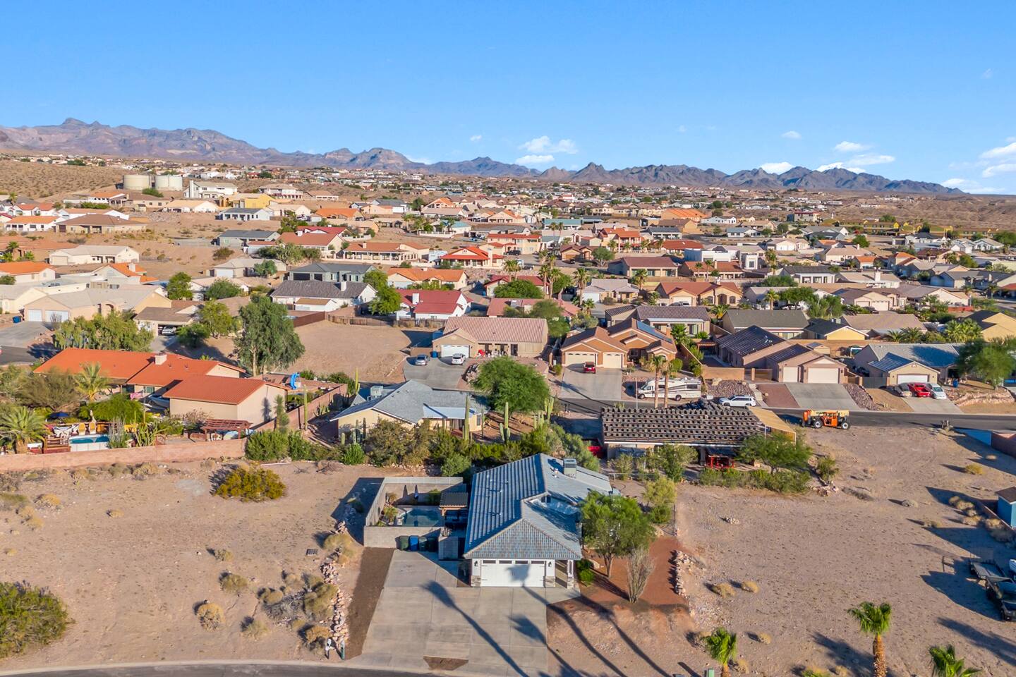 Ready for your vacation in the beautiful Bullhead City?! This 4 bedroom POOL HOME is perfect for family and friends in the most PRIME LOCATION!! Super close to Lake Mohave, the Colorado River and Laughlin, NV Casinos, so bring your boats, jet skis, desert toys and the whole family to enjoy this summer! Cook in the kitchen or BBQ by the pool. There are Tv's in all rooms, extended drive way to park vehicles and toys. Come on down!