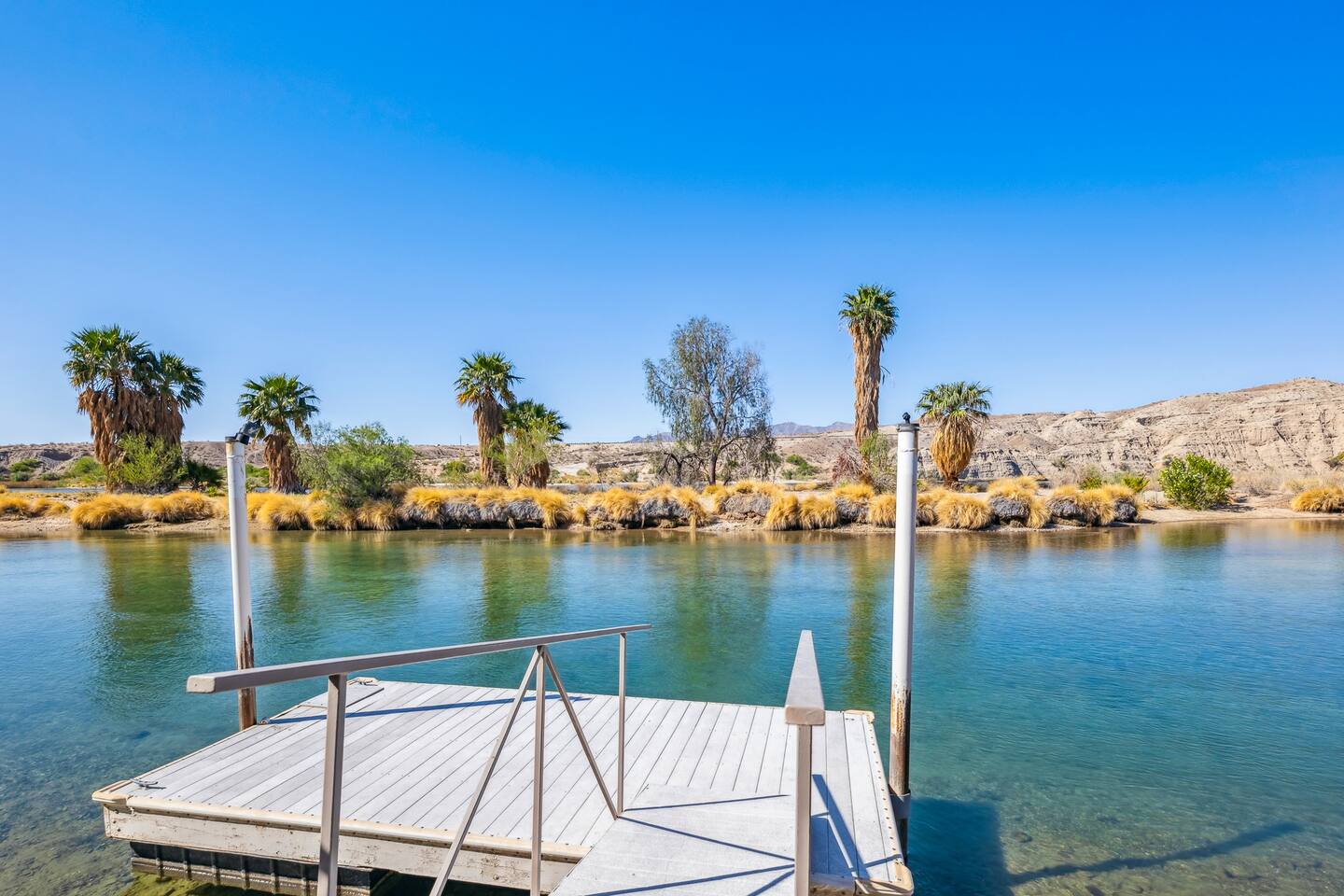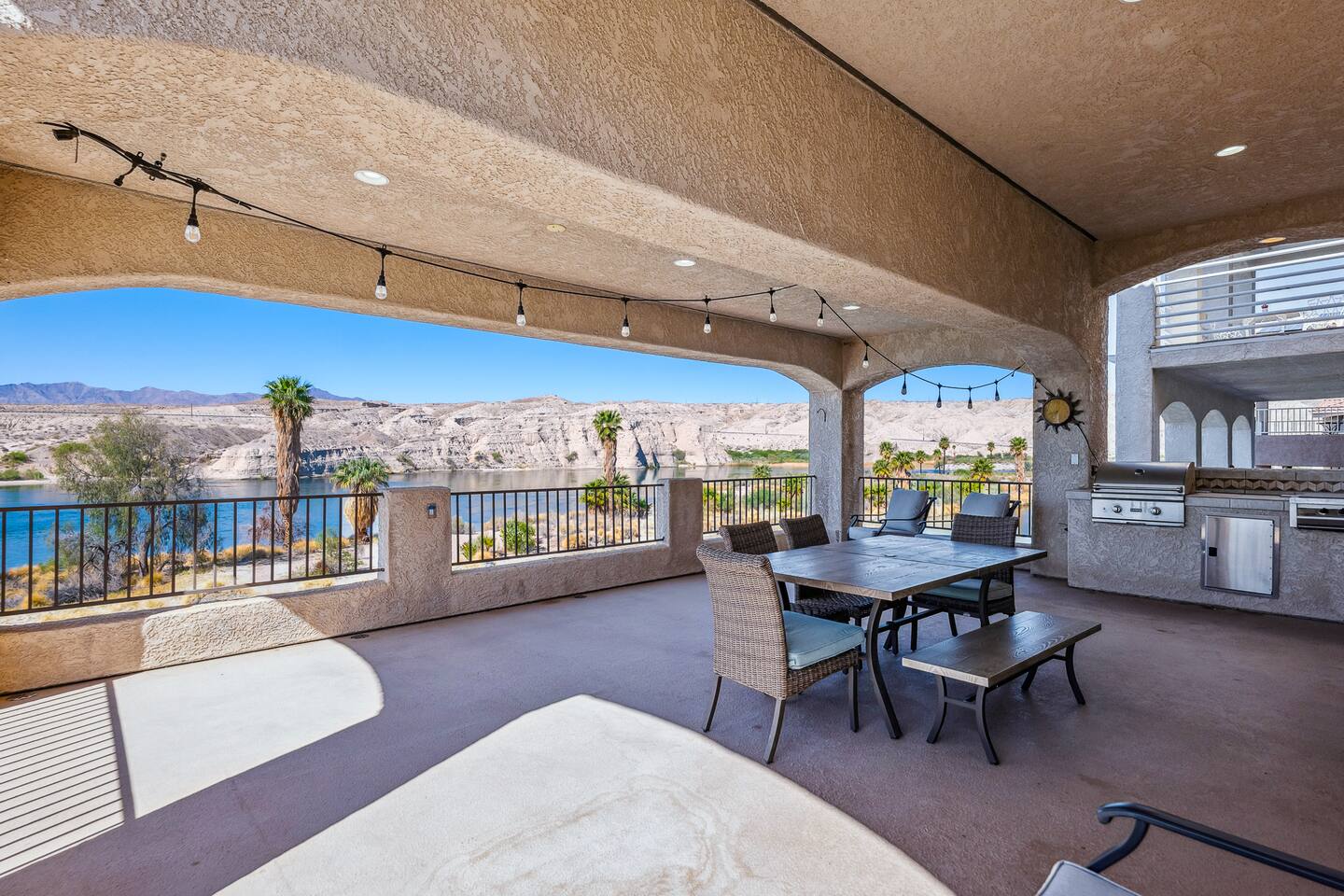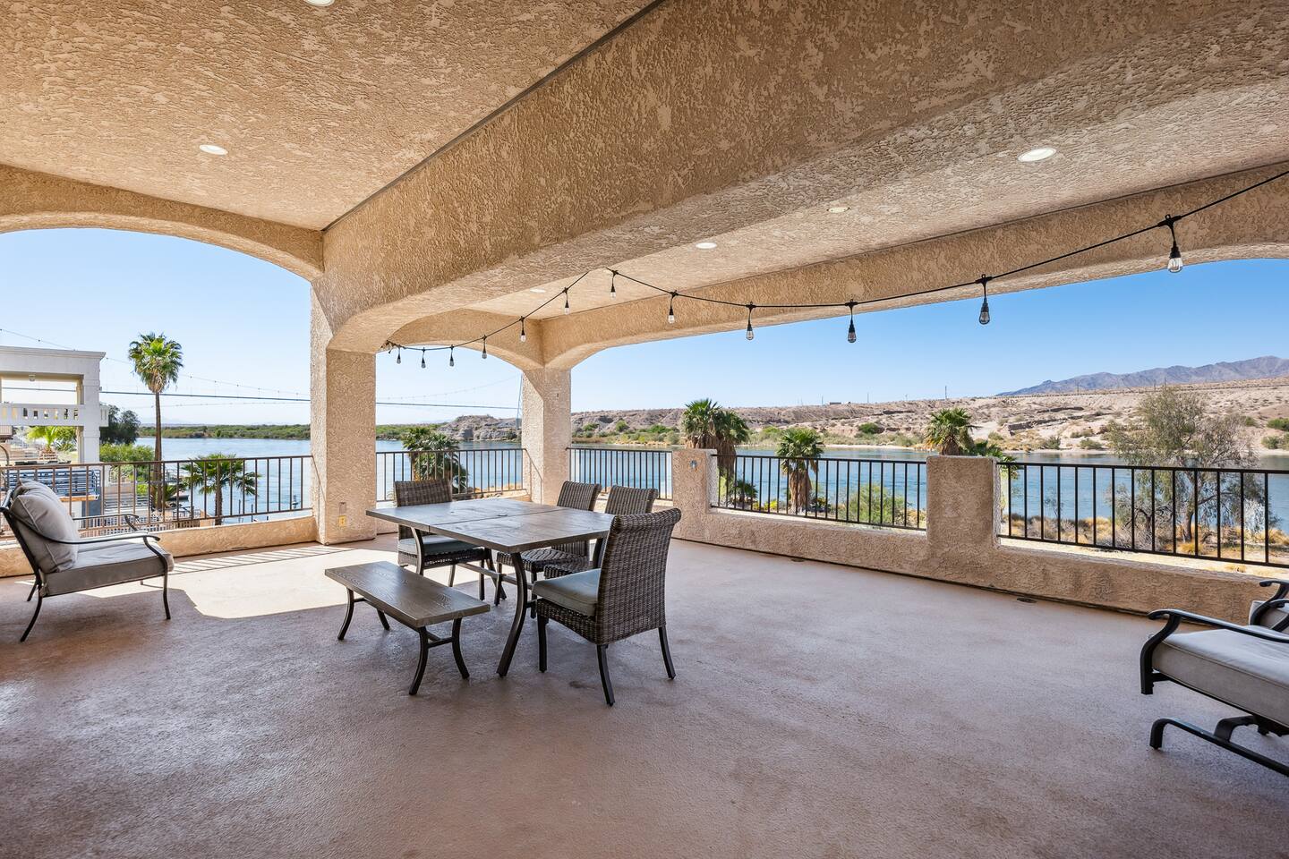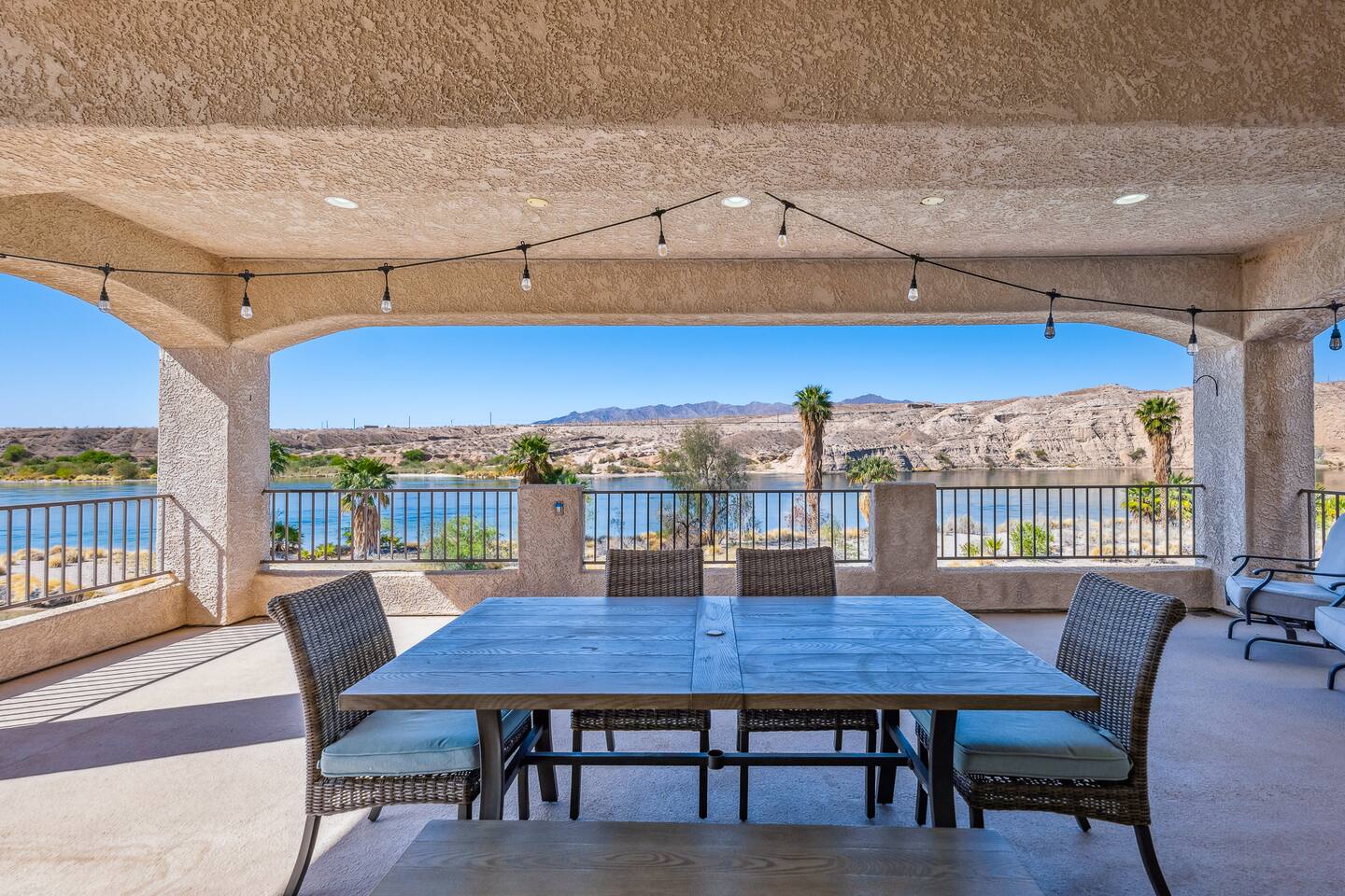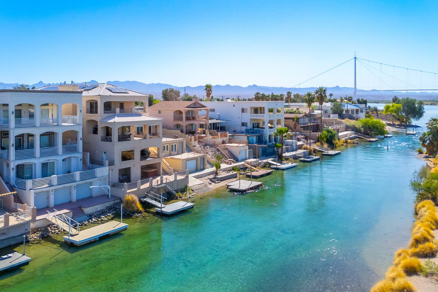 Welcome to the Desert Diamond-- a private riverfront retreat designed for elevated escapes. Our stunning 6BR/6BA estate sleeps 16 and features a private dock, expansive balconies, and breathtaking sunset views over the Colorado River. Wake to shimmering water, spend the day boating or lounging, and unwind in refined comfort each evening in the spa. Perfect for unforgettable gatherings, upscale family vacations, and stylish group getaways just minutes from Laughlin.