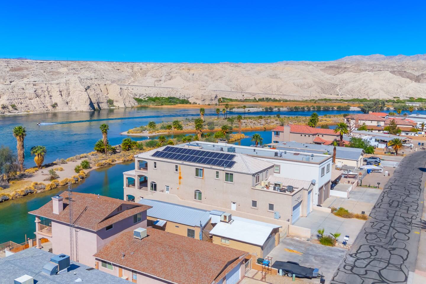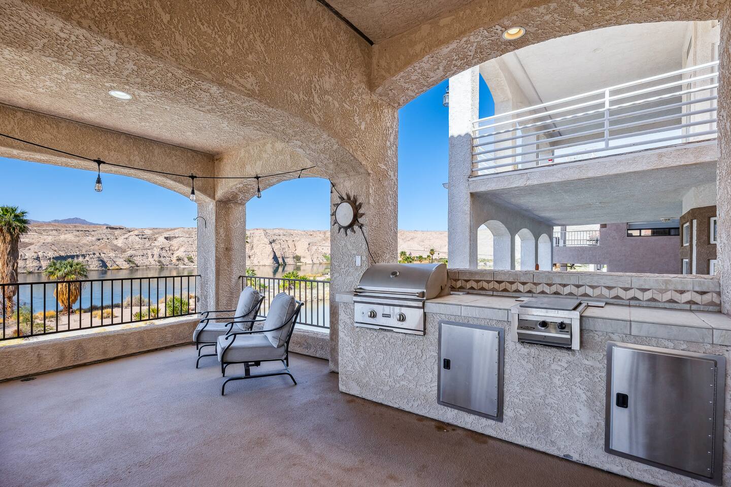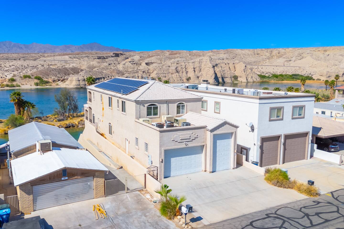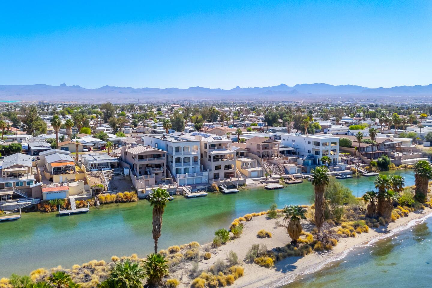 Welcome to the Desert Diamond-- a private riverfront retreat designed for elevated escapes. Our stunning 6BR/6BA estate sleeps 16 and features a private dock, expansive balconies, and breathtaking sunset views over the Colorado River. Wake to shimmering water, spend the day boating or lounging, and unwind in refined comfort each evening in the spa. Perfect for unforgettable gatherings, upscale family vacations, and stylish group getaways just minutes from Laughlin.