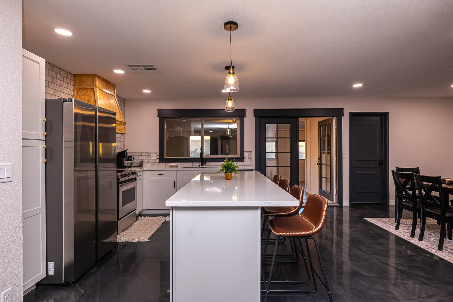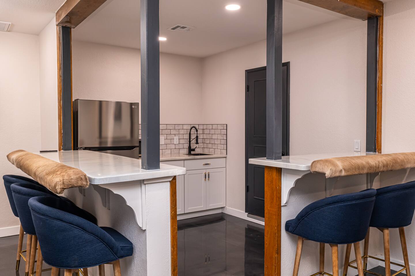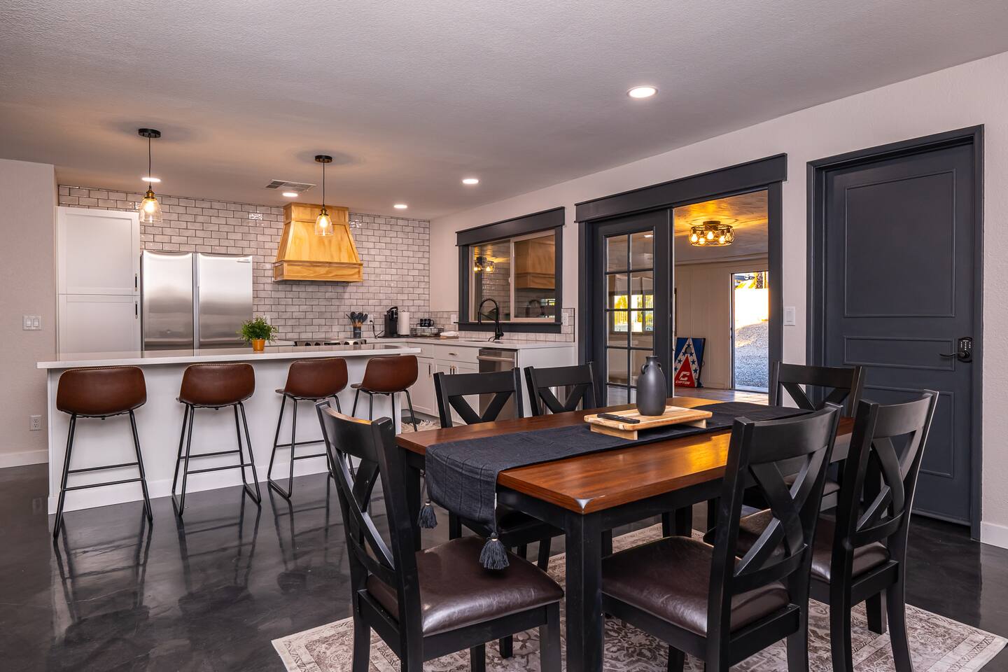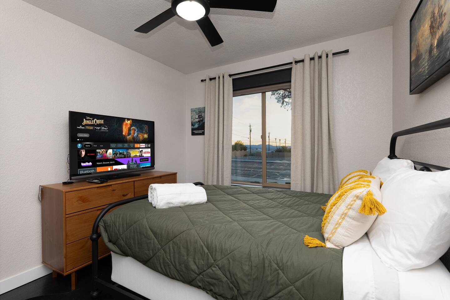 Crisp, clean and spacious! Once you enter you'll notice the gorgeous epoxy floors and updated design! The three bedrooms have all the hallmarks of a restful vacation, most importantly-- comfy beds! Master bedroom: Queen bed (Sleeps 2) Bedroom 2: Full bed (sleeps 2) Bedroom 3: Full bed (Sleeps 2) Game room: (3) twin beds (Sleeps 3) Living room: Futon (Sleeps 1) Total: 10 guests PARKING: You may utilize the driveway or the boat parking on the side.