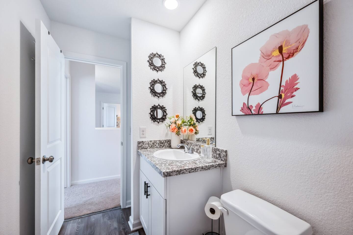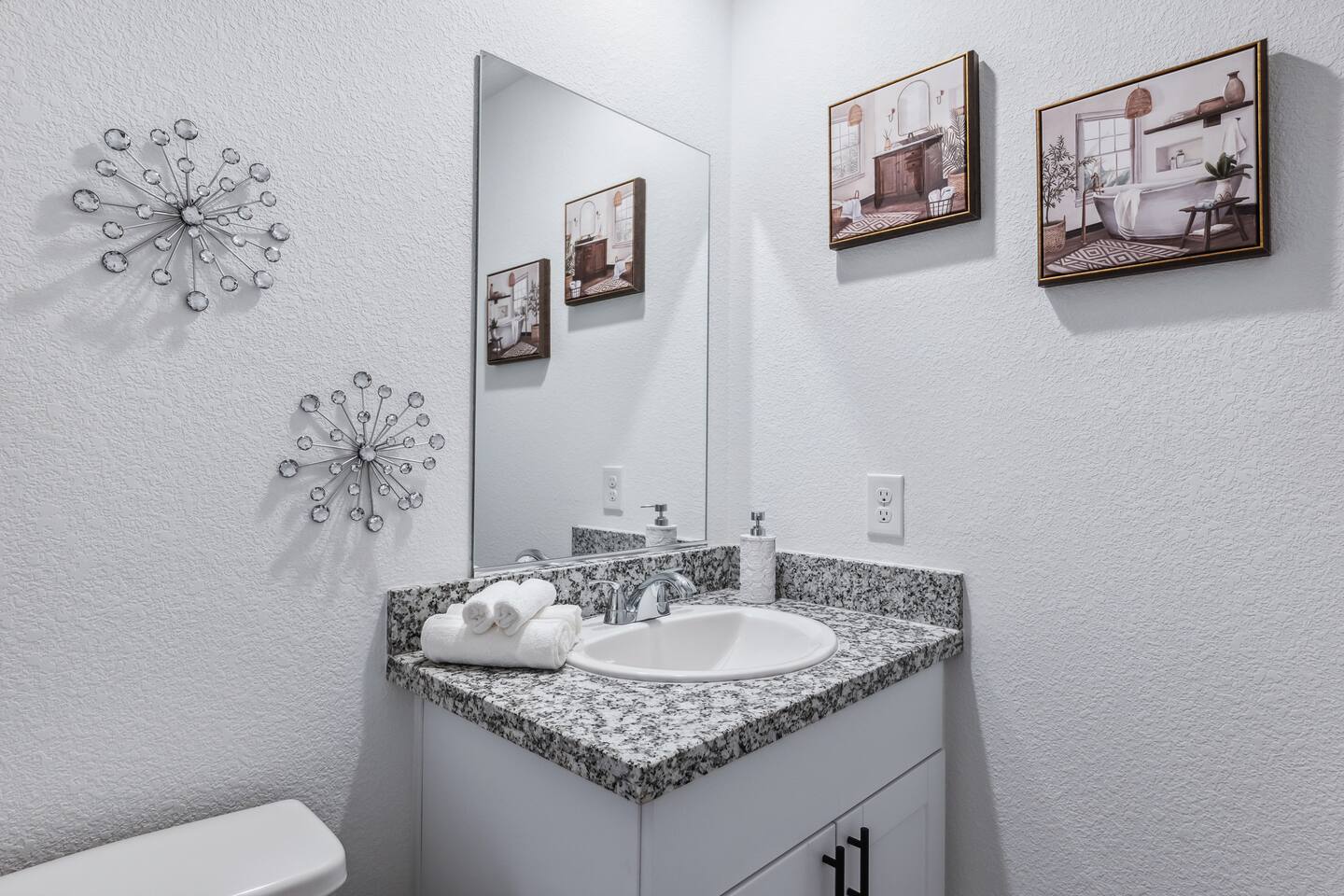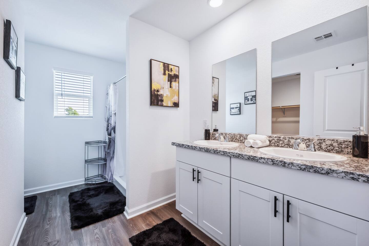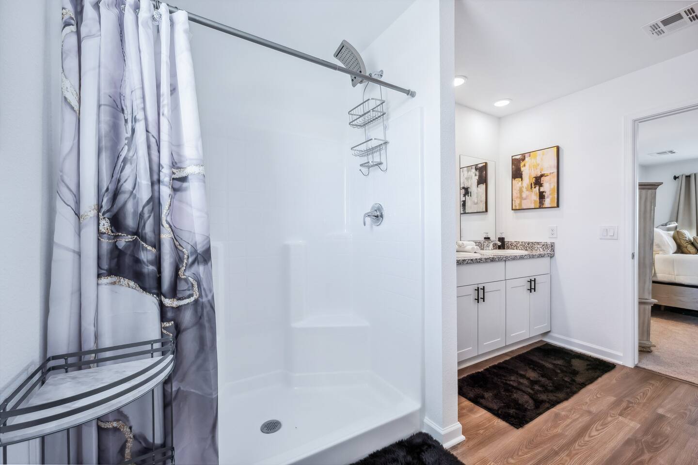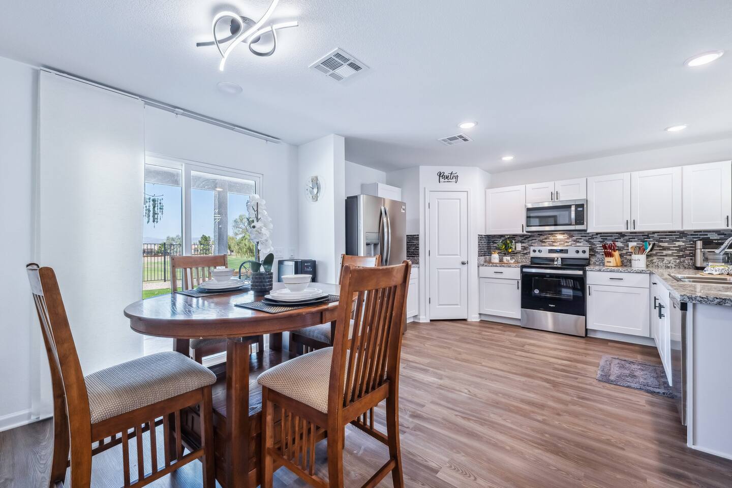 🏠Interior Features: ✅ Living Area: Spacious open-concept living room with modern décor, plush seating, and a large flat-screen Smart TV. ✅ Kitchen & Dining: Fully equipped kitchen with stainless steel appliances, granite countertops, a large island with bar seating, and all essential cookware. Dining area seats 6–8 guests comfortably. Bedrooms: ✅Master bedroom: King-size bed, walk-in closet, and ensuite bathroom with dual sinks, soaking tub, and walk-in shower. ✅Bedrooms 2–4: Each features a comfortable queen-size bed with fresh linens and tasteful furnishings. Bathrooms: ✅3 total bathrooms – including the luxurious master bath, a shared full bath, and a half bath for guest convenience. Private Theater Room: ✅Enjoy cinematic experiences with tiered seating, a large screen, surround sound, and ambient lighting. Home Gym: ✅Stay fit with cardio equipment, free weights, resistance bands, and yoga mats—all in a designated fitness space. Laundry Room: ✅Full-size washer and dryer with laundry essentials provided. Climate Control: ✅Central air conditioning and heating to keep you comfortable year-round.