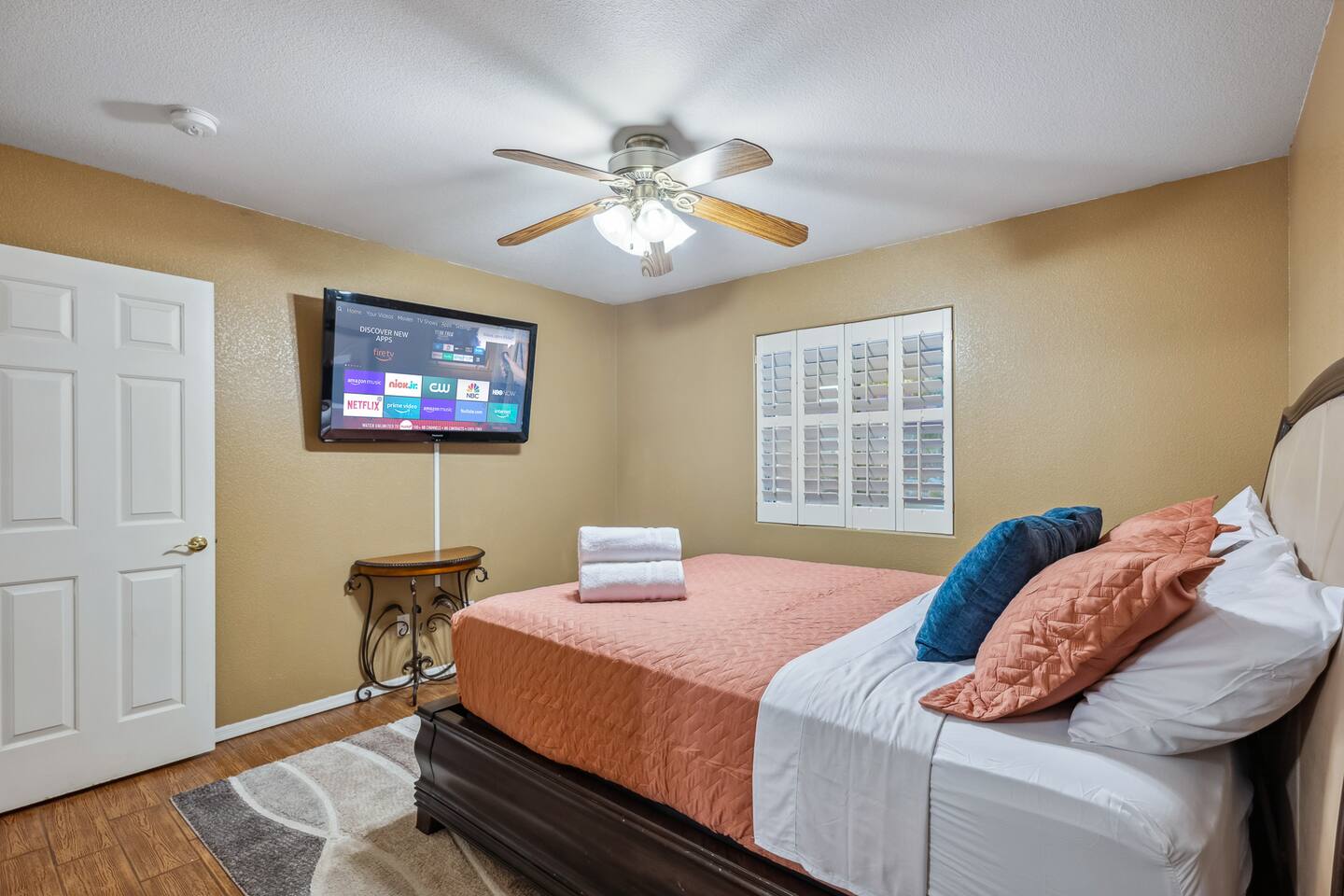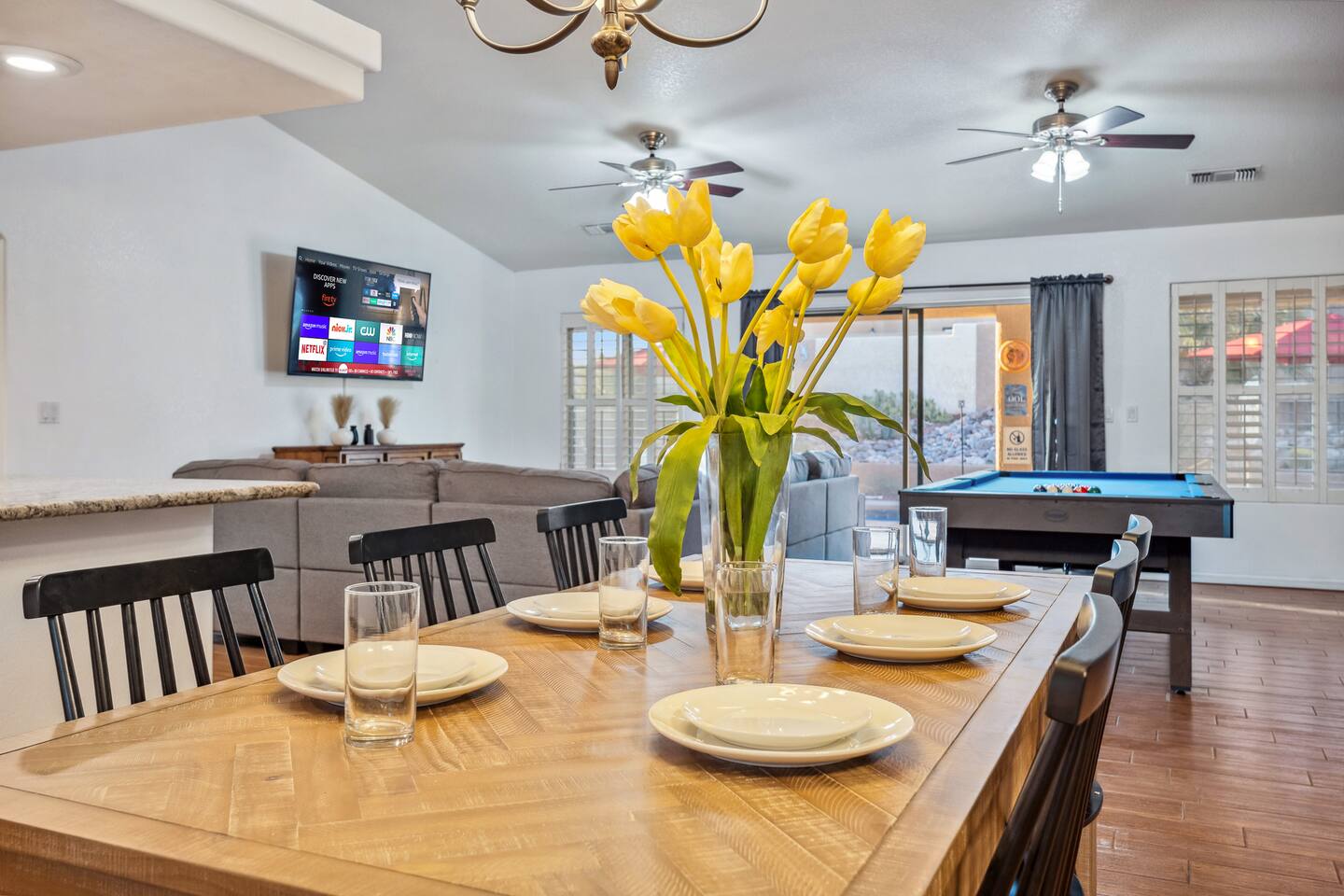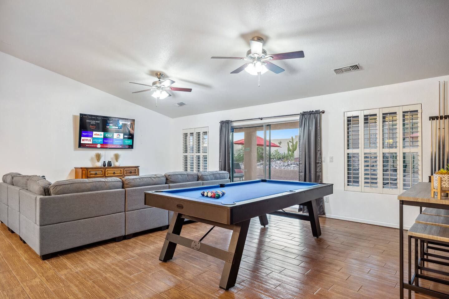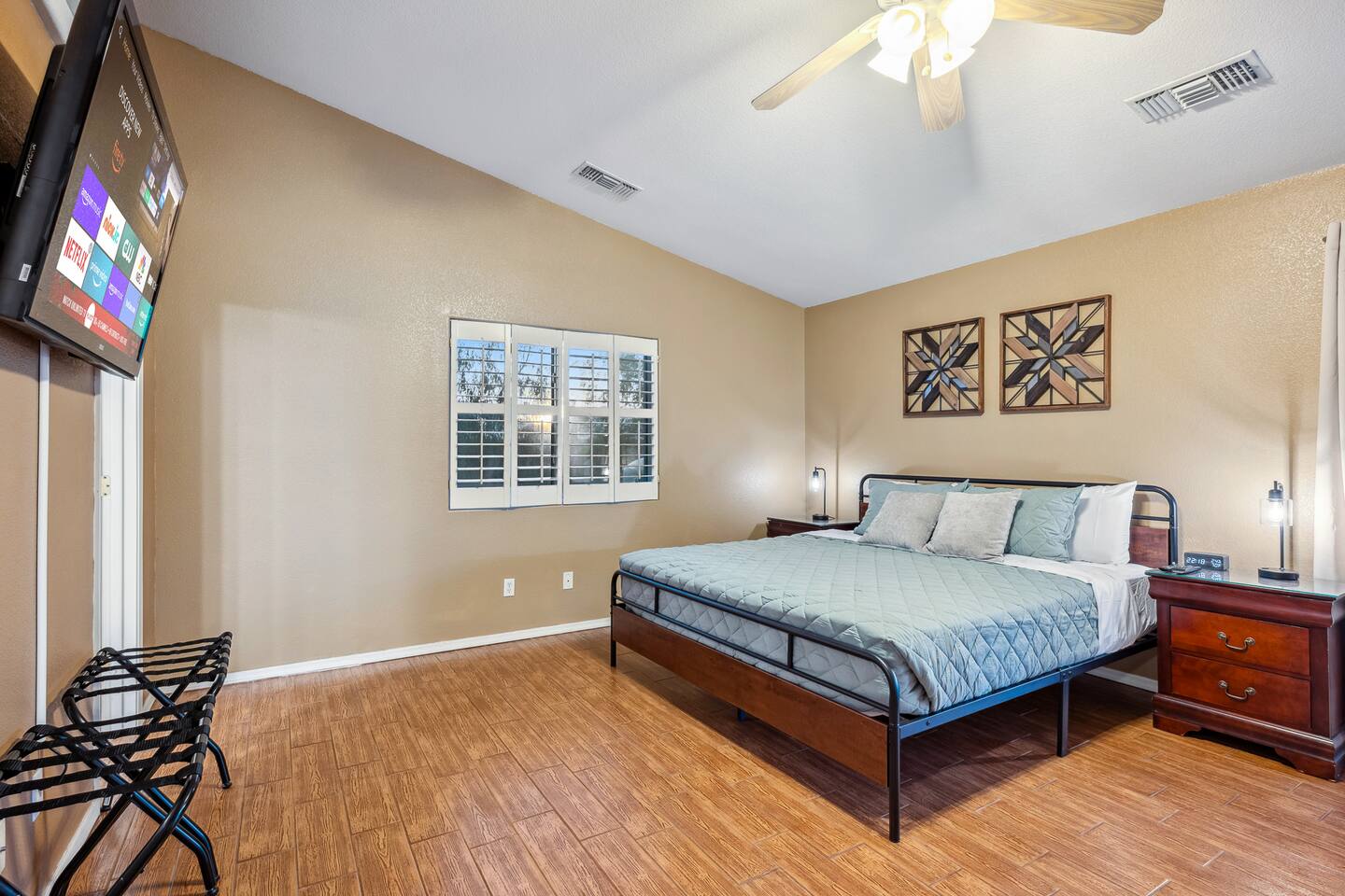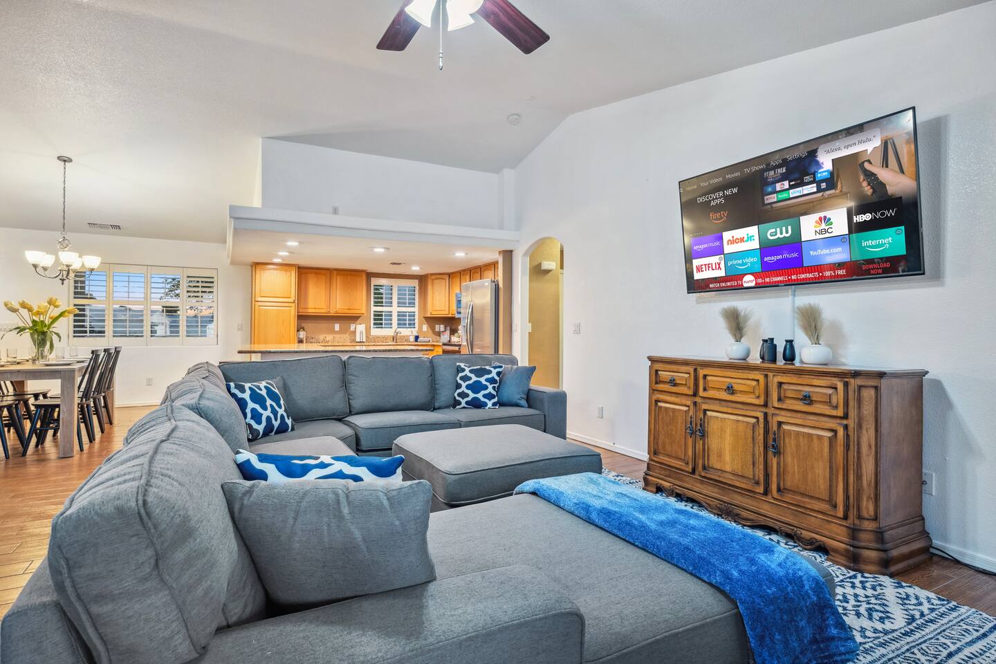 Bask in quiet and convenience with out three bedroom, two bath home that sleeps 10 and is just minutes from the Laughlin casinos and Lake Mohave. SPEAKING OF LAKE MOHAVE! Don't leave your boat on the street! There's plenty of parking with two driveways. After your time on the water, relax in the pool or chill by the firepit in the comfy Adirondack chairs and reconnect with family or just enjoy the quiet desert night. We always aim to have guests have the best time when they stay with us!