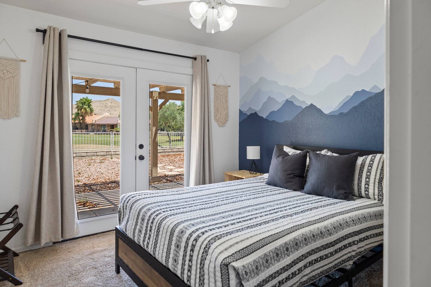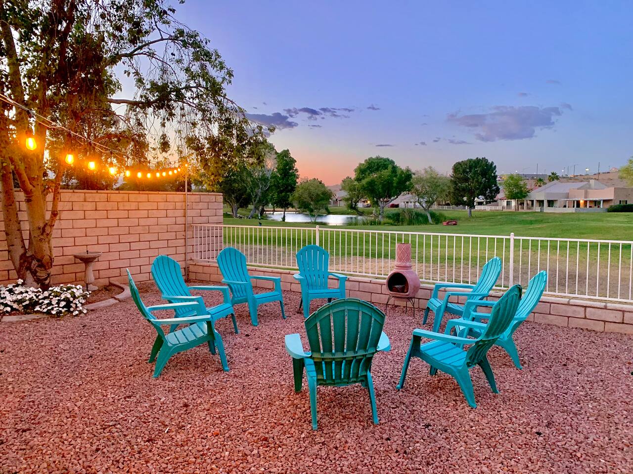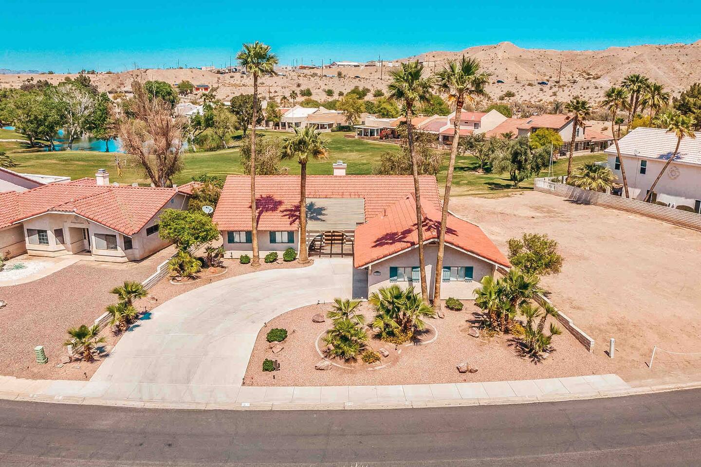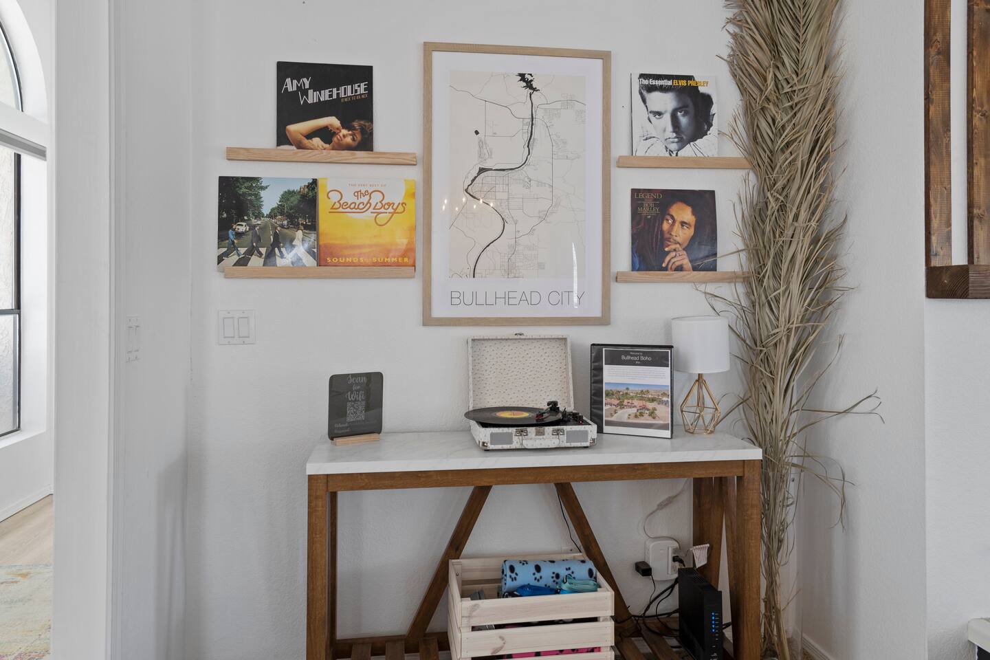 Welcome to The Bullhead Boho! A unique three bedroom home backed up to a tranquil green belt with lakes for fishing less than a quarter mile to the main highway or our private launch and beach. Nestled in Palo Verde Meadows, our home sleeps 8 completely comfortably with space for hanging out in the backyard, or playing shuffleboard or family dinner on the oversized vintage dining table. *Currently decorated for the holidays*