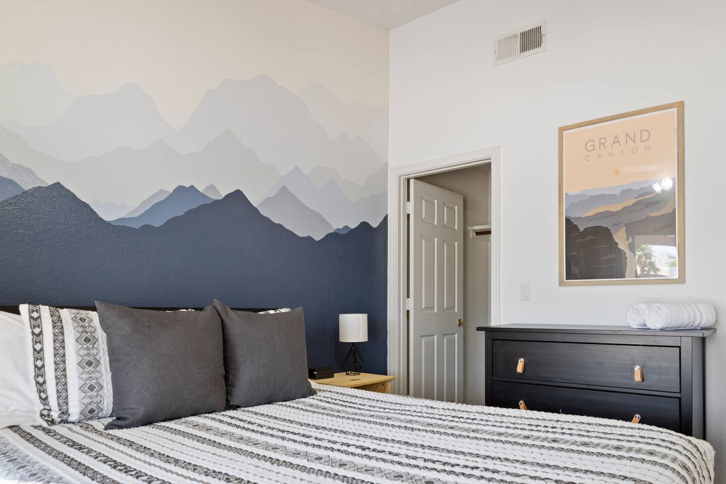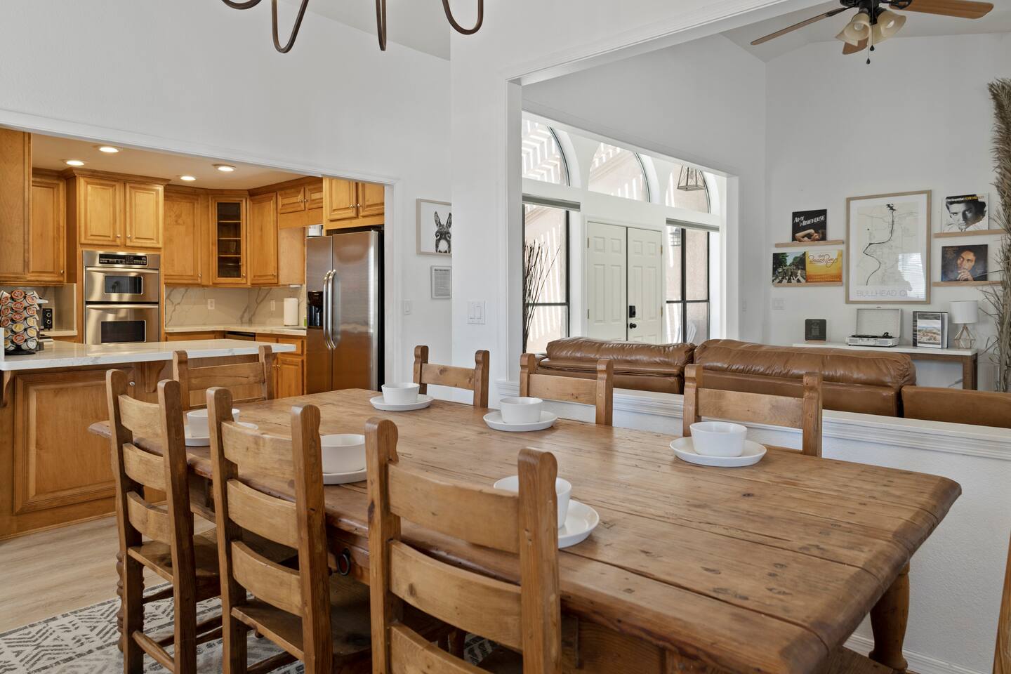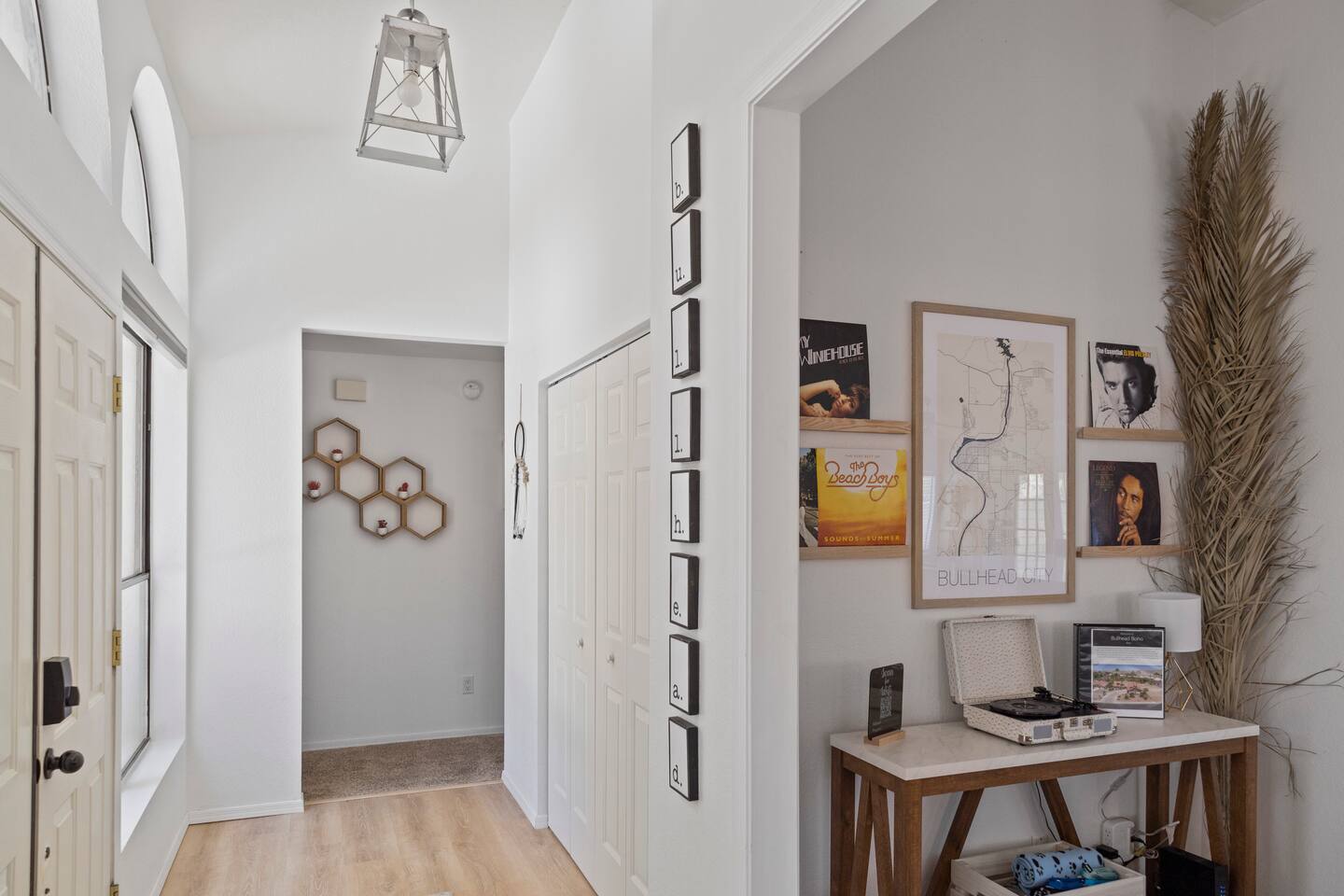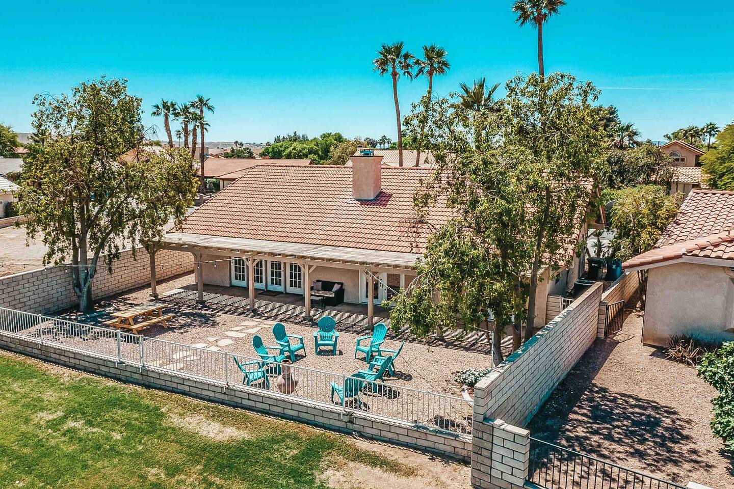 Welcome to The Bullhead Boho! A unique three bedroom home backed up to a tranquil green belt with lakes for fishing less than a quarter mile to the main highway or our private launch and beach. Nestled in Palo Verde Meadows, our home sleeps 8 completely comfortably with space for hanging out in the backyard, or playing shuffleboard or family dinner on the oversized vintage dining table. *Currently decorated for the holidays*