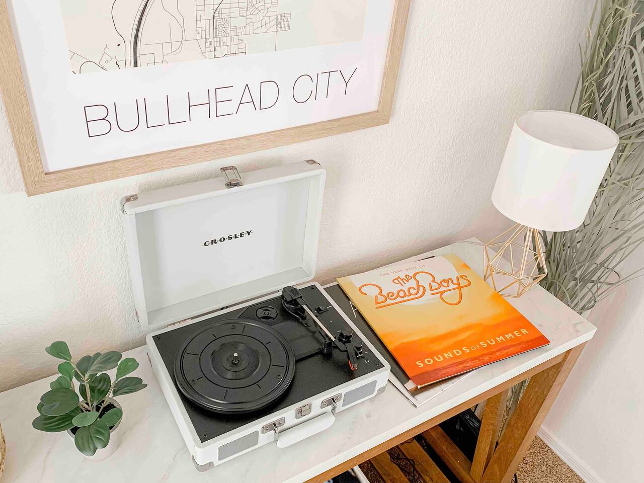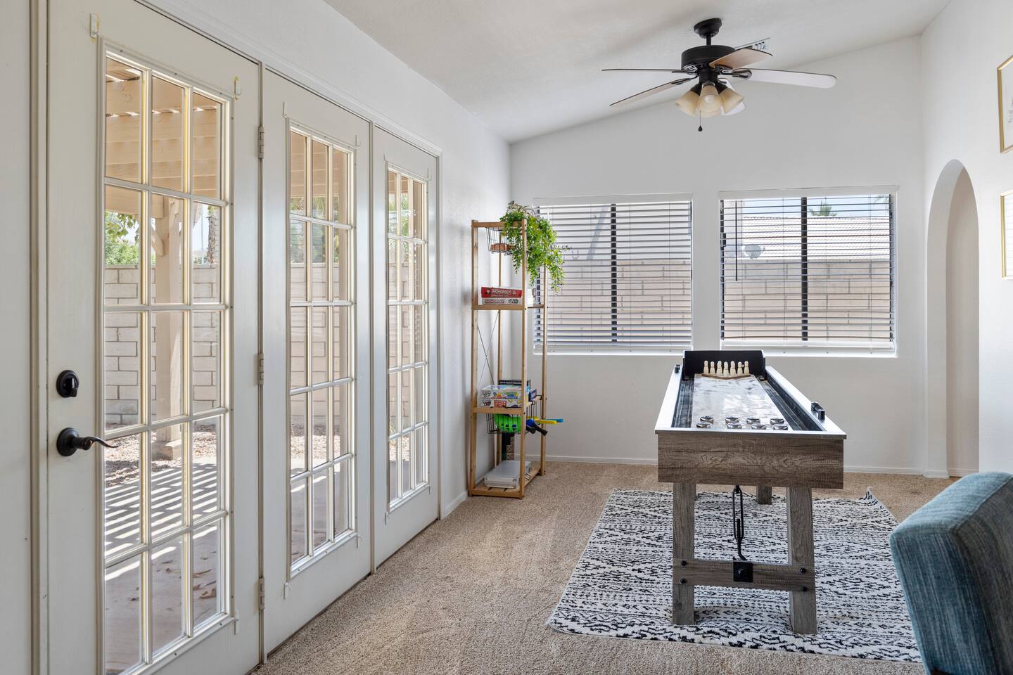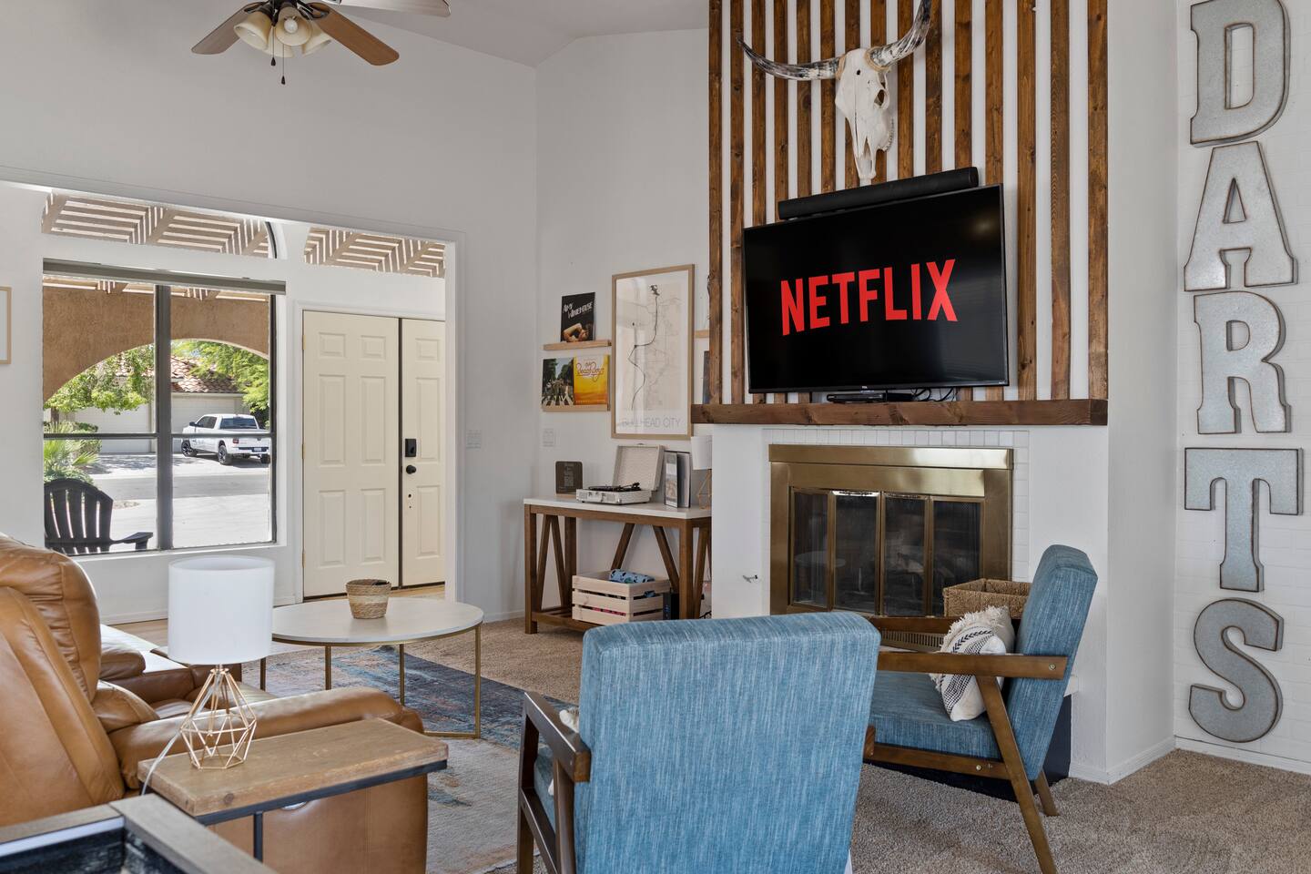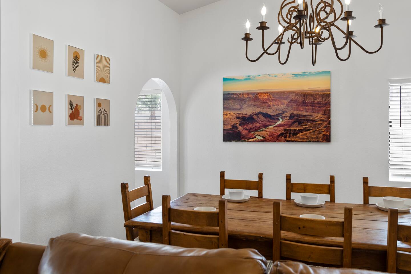 Welcome to The Bullhead Boho! A unique three bedroom home backed up to a tranquil green belt with lakes for fishing less than a quarter mile to the main highway or our private launch and beach. Nestled in Palo Verde Meadows, our home sleeps 8 completely comfortably with space for hanging out in the backyard, or playing shuffleboard or family dinner on the oversized vintage dining table. *Currently decorated for the holidays*