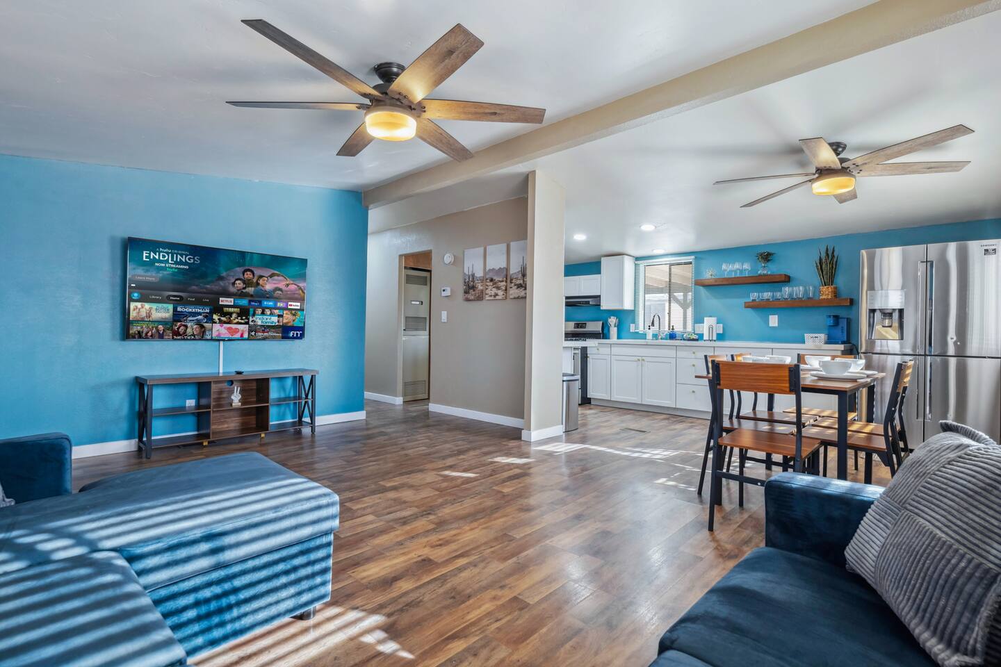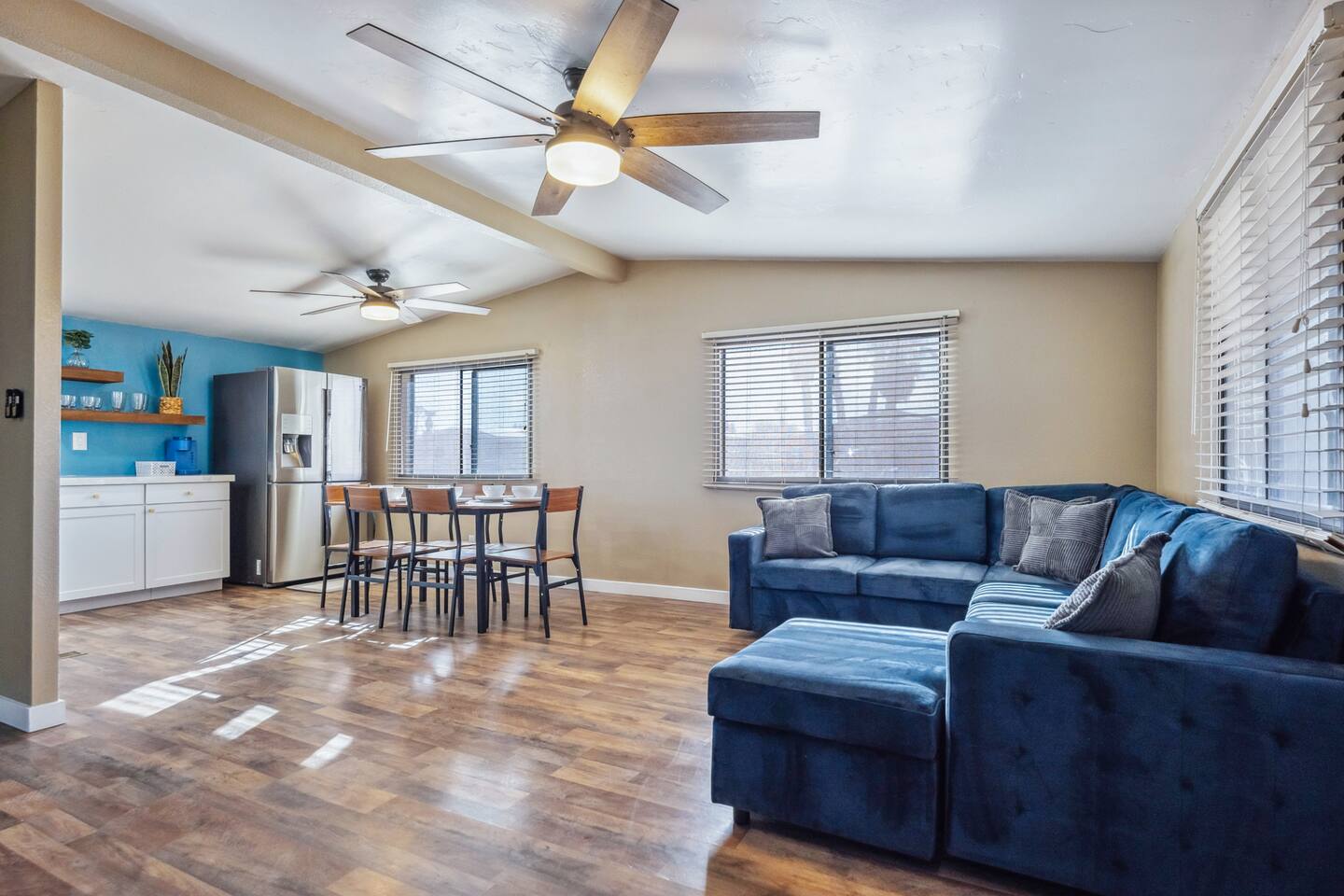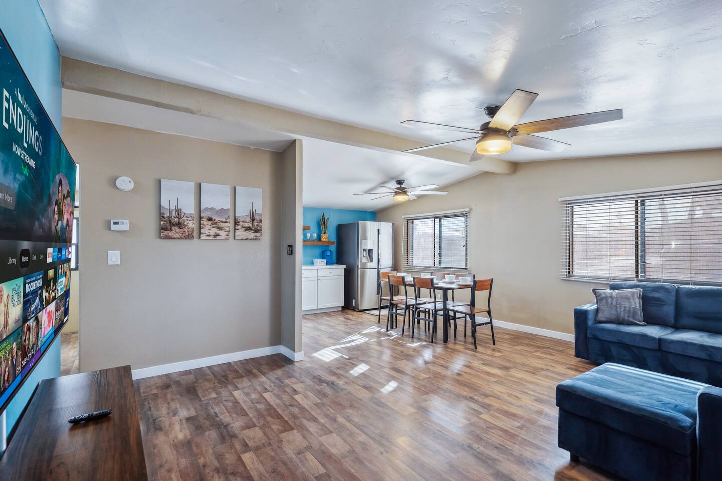 Welcome to "Summer Breeze"! Our charming retreat features two spacious bedrooms, comfortably sleeping up to 8 guests. Both bedrooms feature luxurious queen beds with the master have two additional rollaway beds for two more guests. The living room also has a pull-out sofa bed for two. Relax and unwind in the private spa or enjoy the beautiful Arizona evenings on the expansive outdoor patio. Prime location and perfect getaway for families and friends!