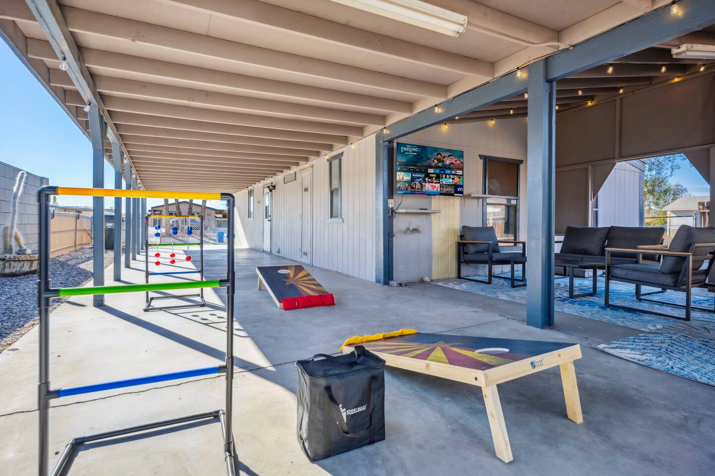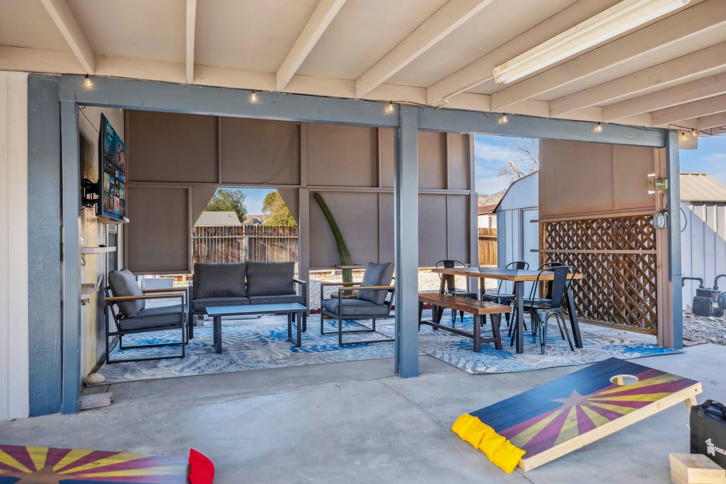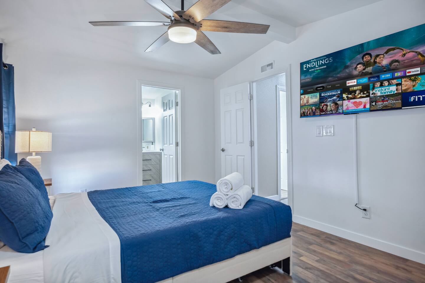 Welcome to "Summer Breeze"! Our charming retreat features two spacious bedrooms, comfortably sleeping up to 8 guests. Both bedrooms feature luxurious queen beds with the master have two additional rollaway beds for two more guests. The living room also has a pull-out sofa bed for two. Relax and unwind in the private spa or enjoy the beautiful Arizona evenings on the expansive outdoor patio. Prime location and perfect getaway for families and friends!