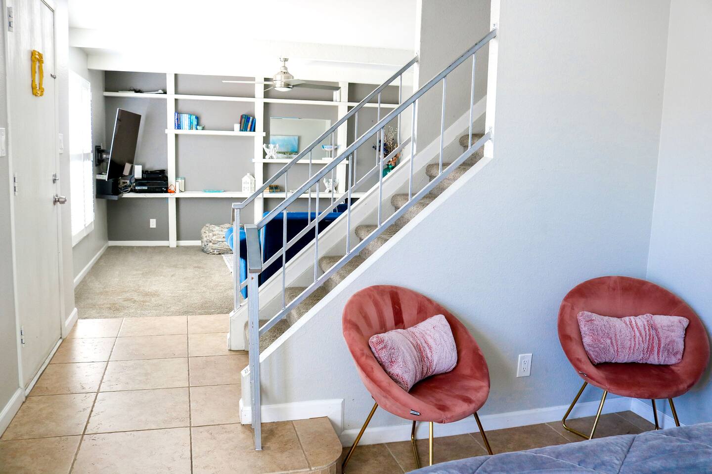 Escape to "The Laguna"-- stylish ground-floor two story Scottsdale getaway with a breezy beachy vibe! Just minutes from vibrant downtown, our 3-bedroom retreat blends comfort and charm. Enjoy a bright, coastal-inspired interior with open living spaces and chic décor. Relax at the community pool or explore nearby dining, shopping, and nightlife. Perfect for families or friends, this home offers modern amenities, cozy bedrooms, and a prime location for the ultimate Scottsdale stay!