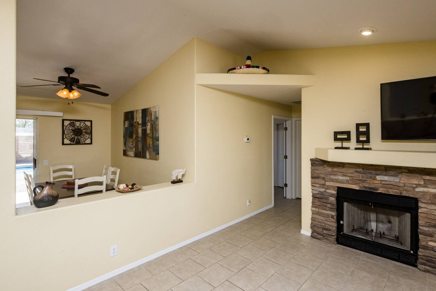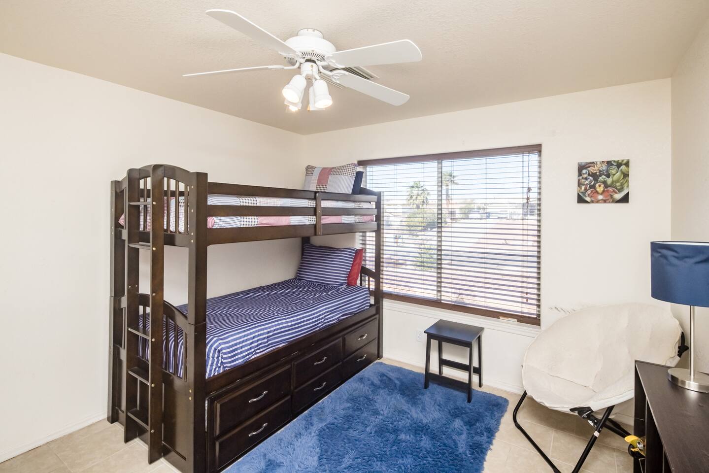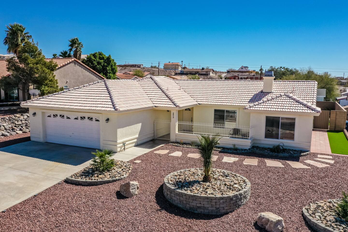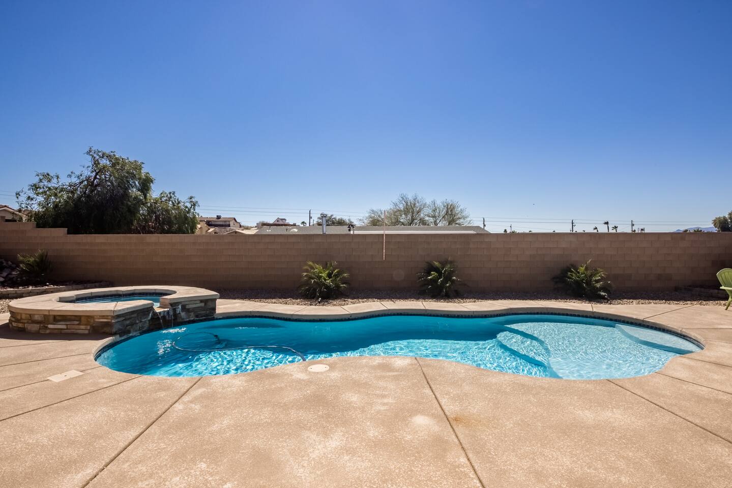 Check in, relax and unwind at "The Tropics in Bullhead"! Our three-bedroom, two bath home sits on an over 10,000 square foot lot with an in-ground pool with Baja shelf as well as a jacuzzi for those nights after a day on the river or lake. Inside you'll find all the comforts of home with comfy beds, full kitchen and TV's in almost every bedroom. We love to unwind here whenever we can and hope you and your family make treasured memories as well!