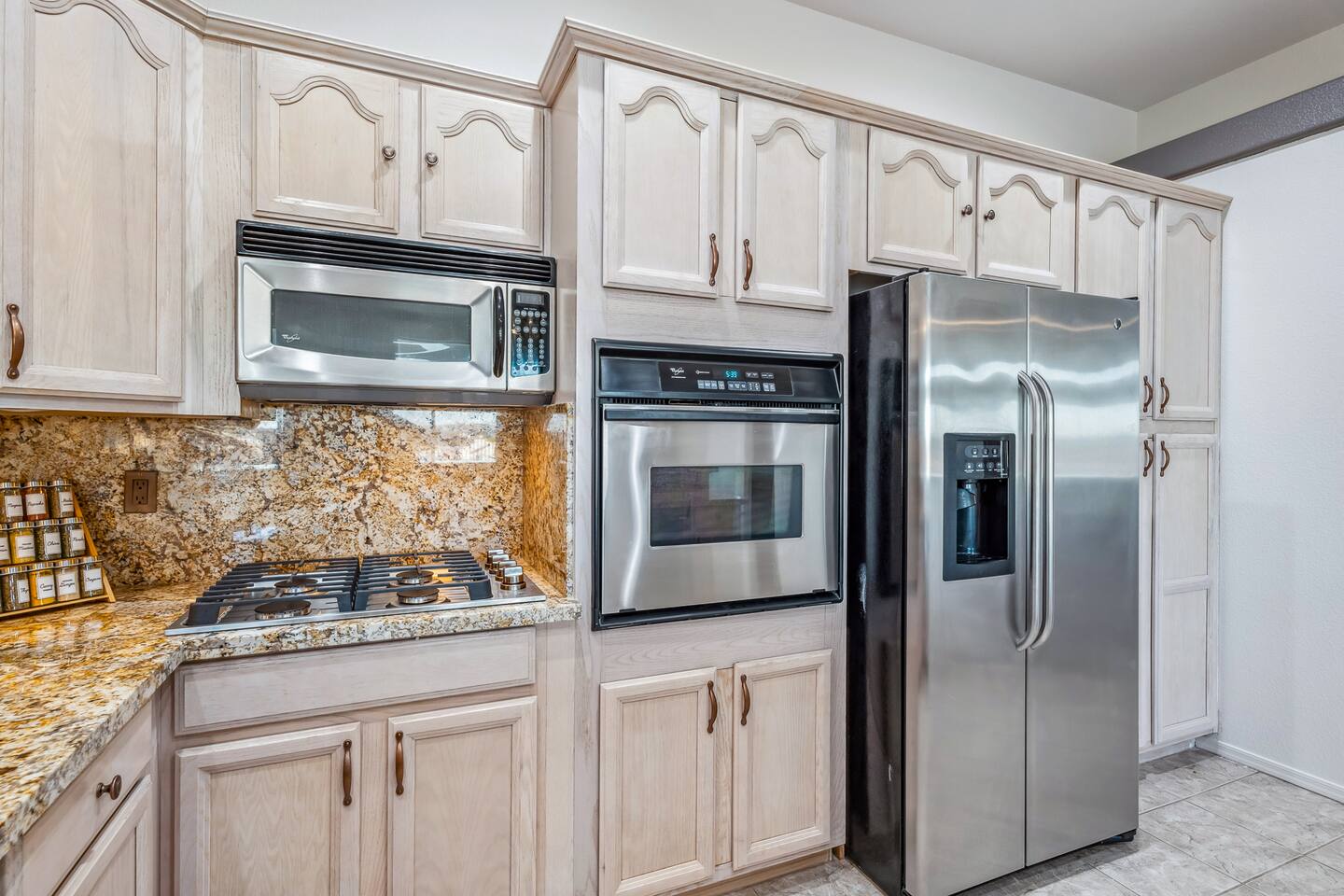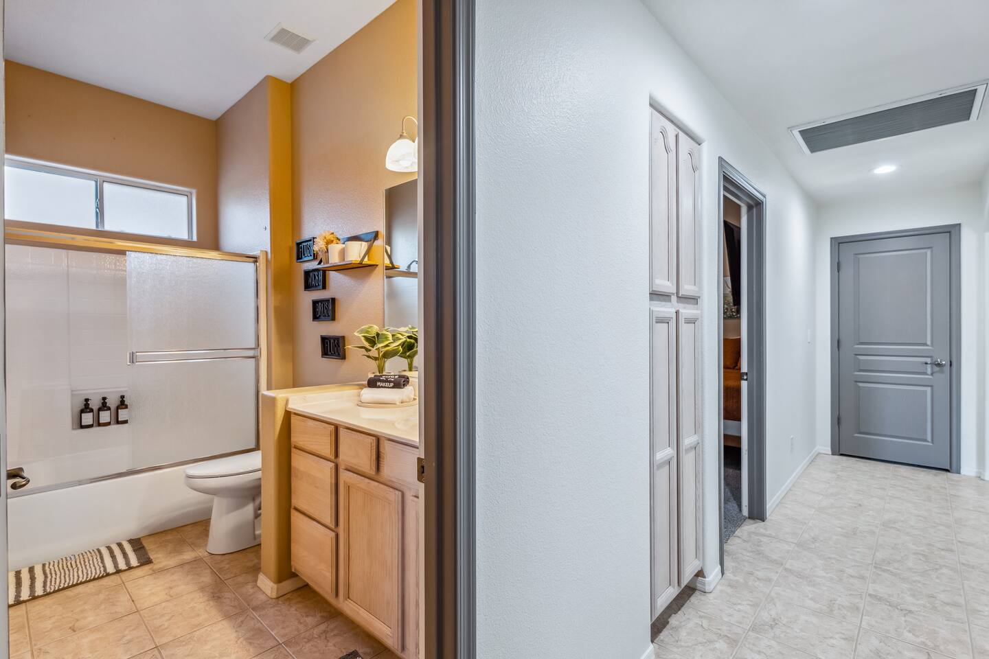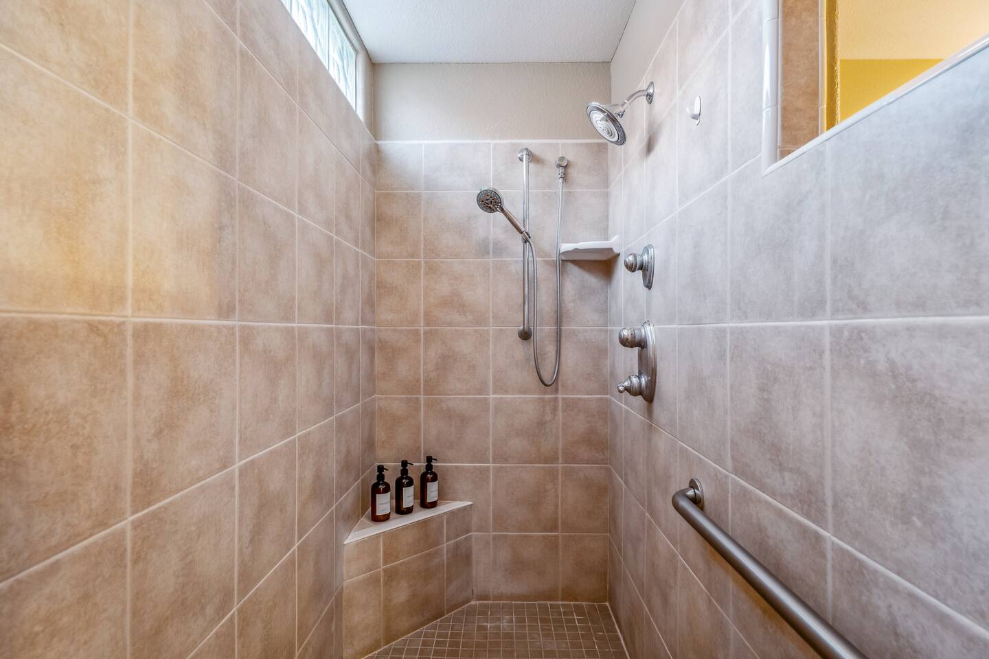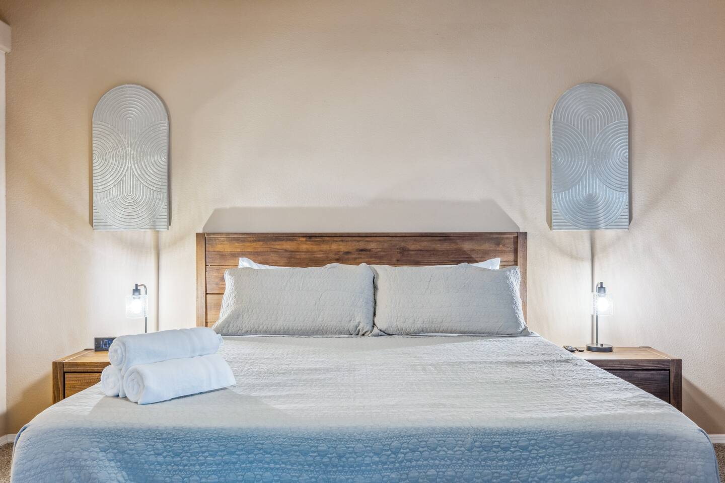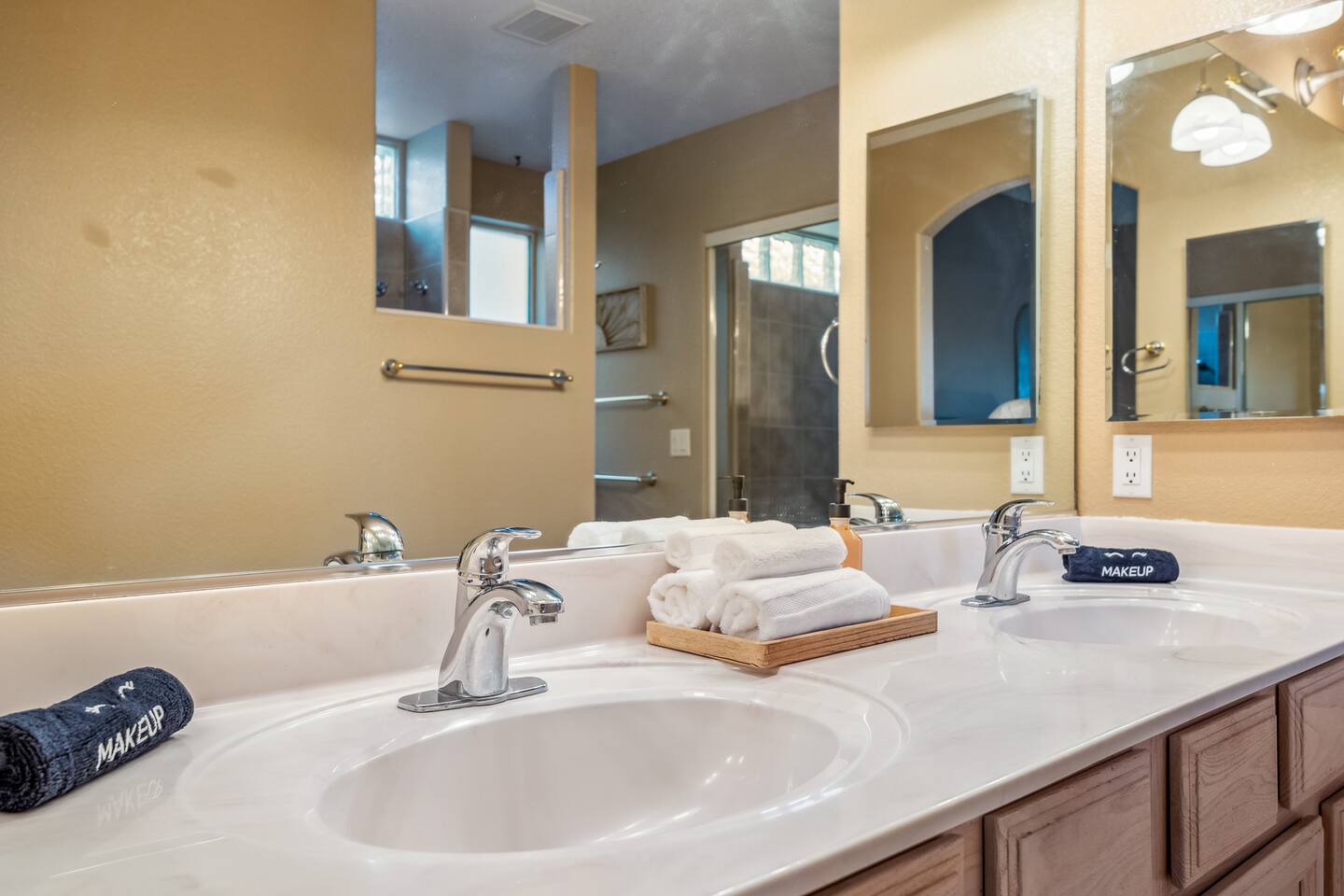 You'll enter the home and immediately to the right find the large game room with full-over-full bunk beds and arcade games such as Wheel of Fortune, Pac-Man, Fast and the Furious, and basketball hoops. The large living room sectional allows the family to stretch out and enjoy their favorite streaming apps on the smart TV. On the west side of the house are two of the bedrooms with one of them having two full beds and the other one having a king bed. The bedroom with the king bed has direct access to the patio as well. On the other side of the property is the master bedroom with king bed, smart TV patio doors out to the patio and large, open walk-in shower. Bedroom Layout: Bedroom 1 (game room): (2) Full over full bunk beds (Sleeps 8) Bedroom 2: with smart TV (2) Full beds (Sleeps 4) Bedroom 3: with smart TV (1) King bed (Sleeps 2) Master bedroom: with smart TV (1) King bed (Sleeps 2) Total: Sleeps 16