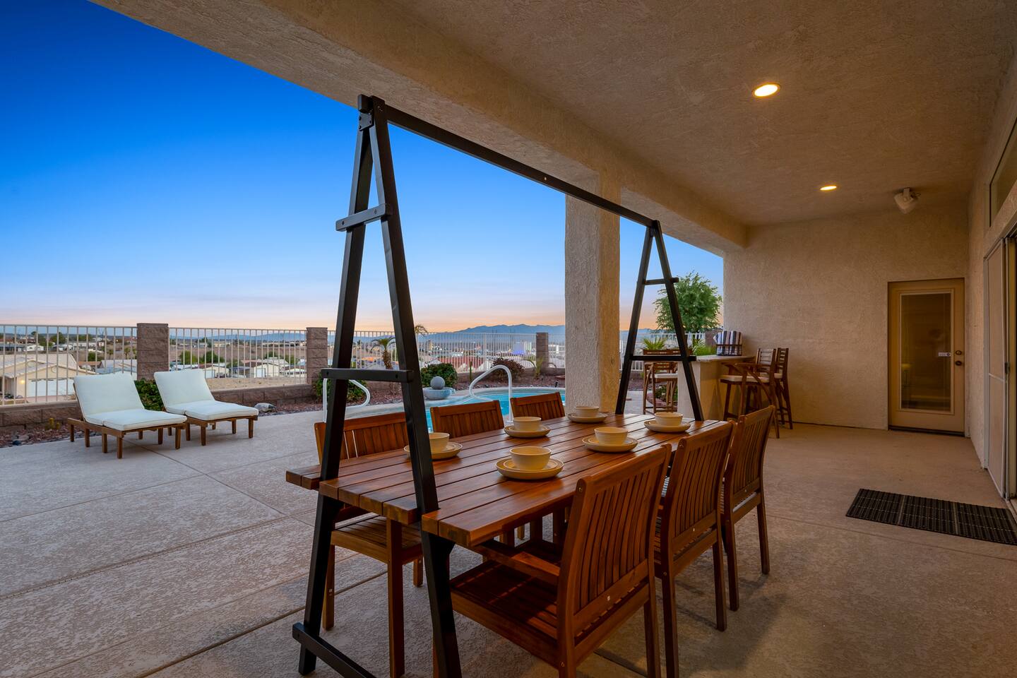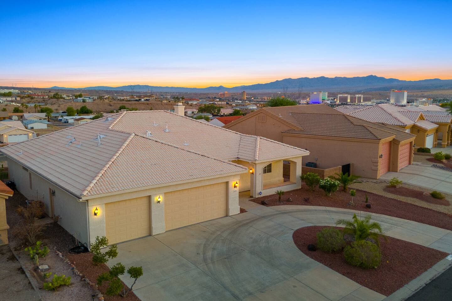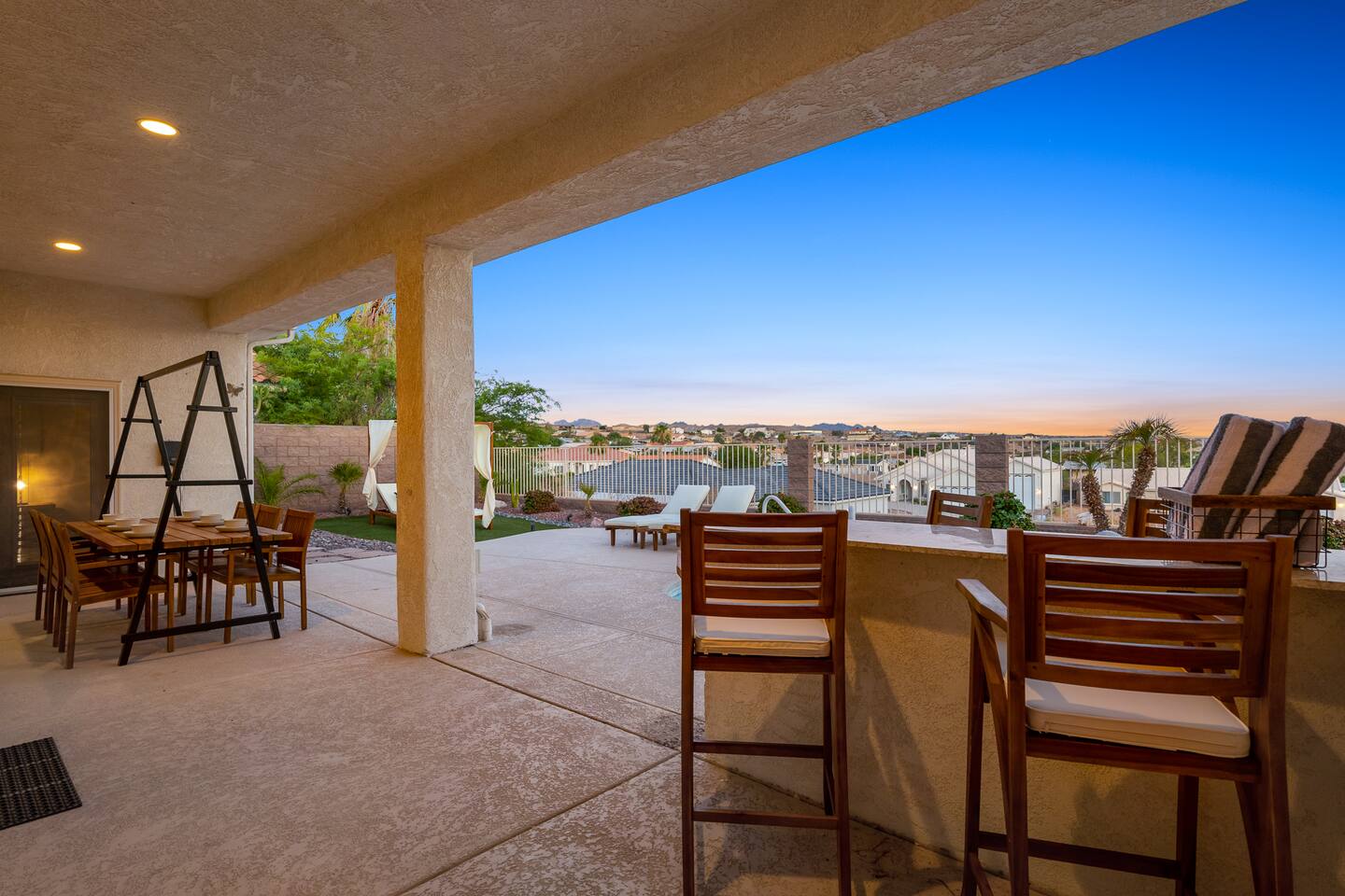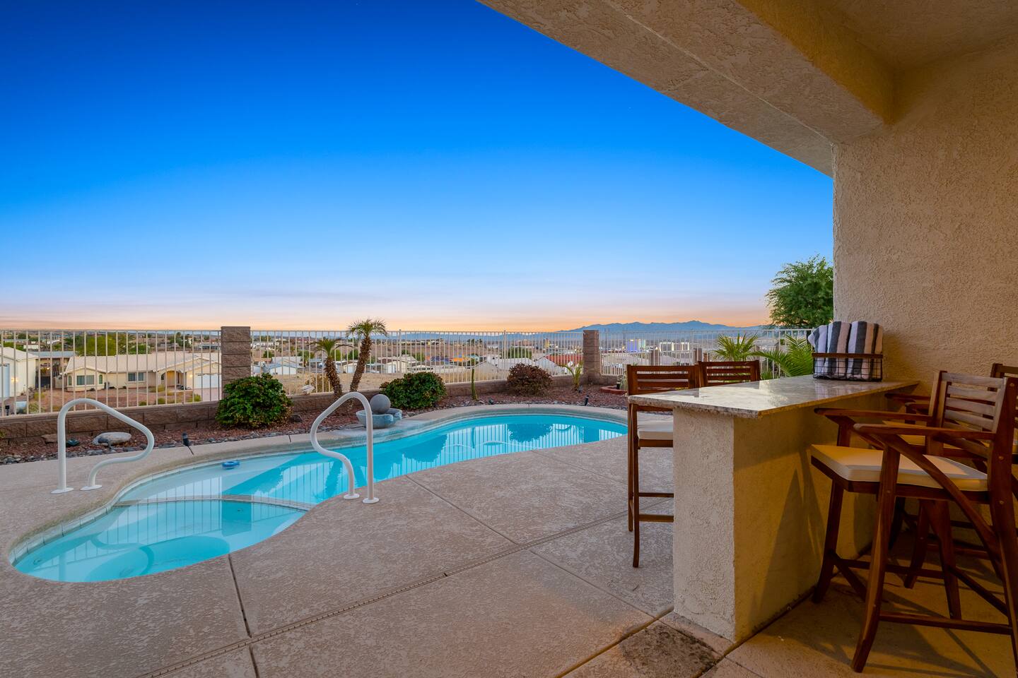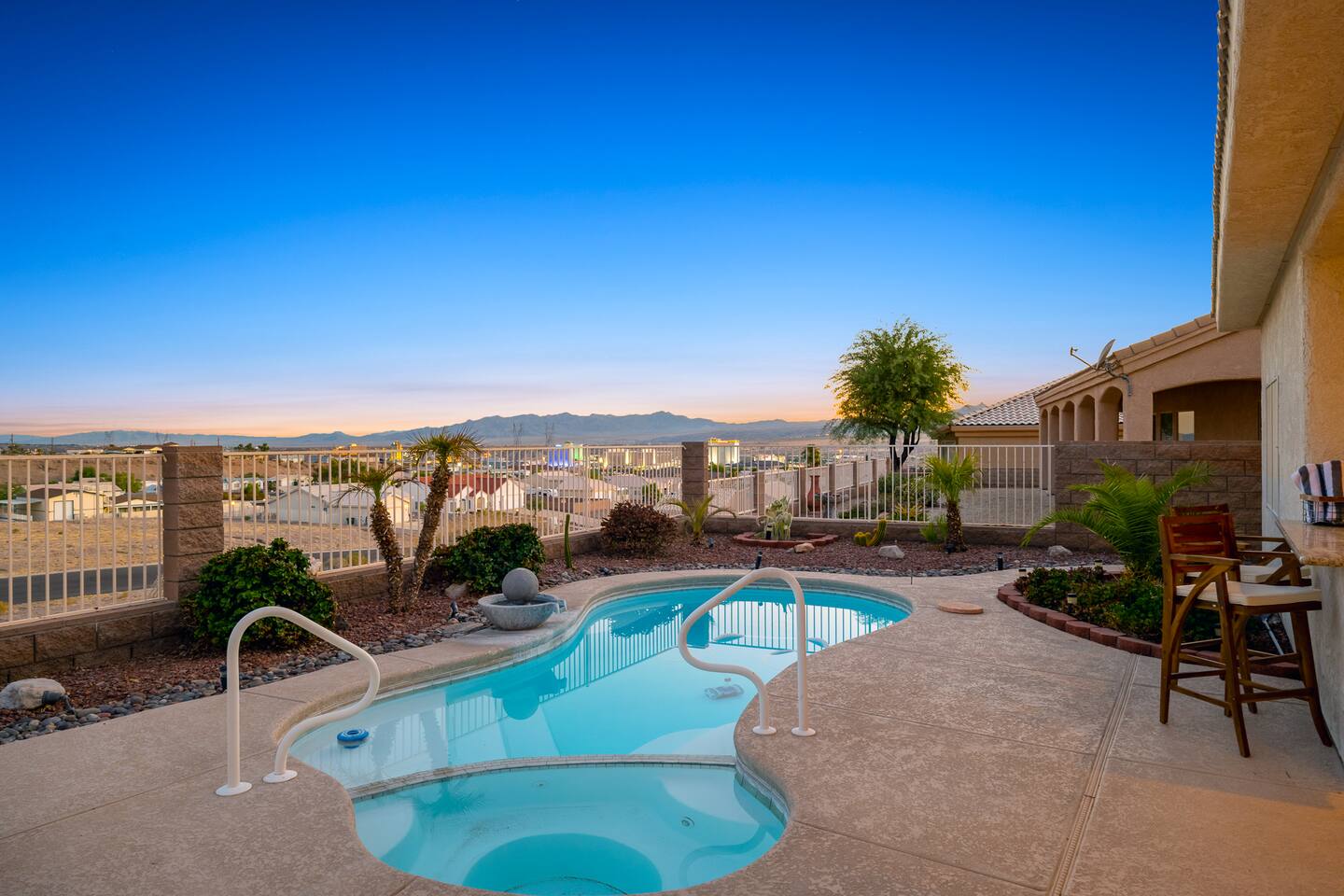 Welcome to Mohave Ridge! Our spacious retreat boasts a private pool, spa, views and a fun arcade room for the kids! Enjoy breathtaking views of the Laughlin casinos from the comfort of your large patio. Ideal for multiple families, the house comfortably sleeps up to 16 guests with multiple bedrooms and ample living space. Perfect for families or friends looking to unwind and enjoy the desert sun with all the comforts of home! Plus a large 3 car garage as well as drive through driveway.