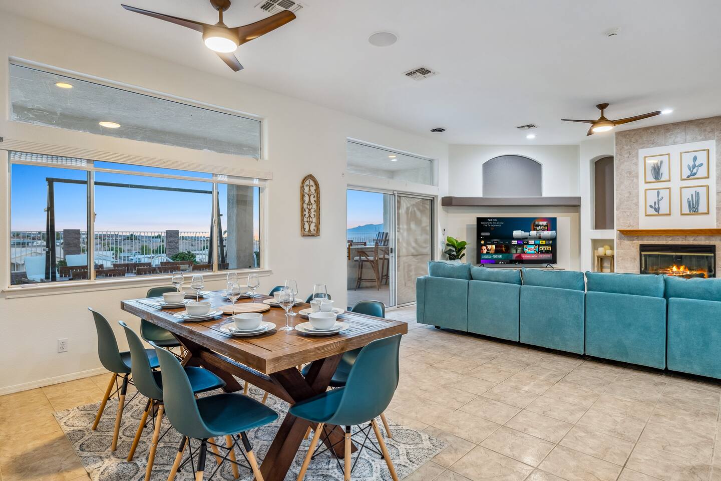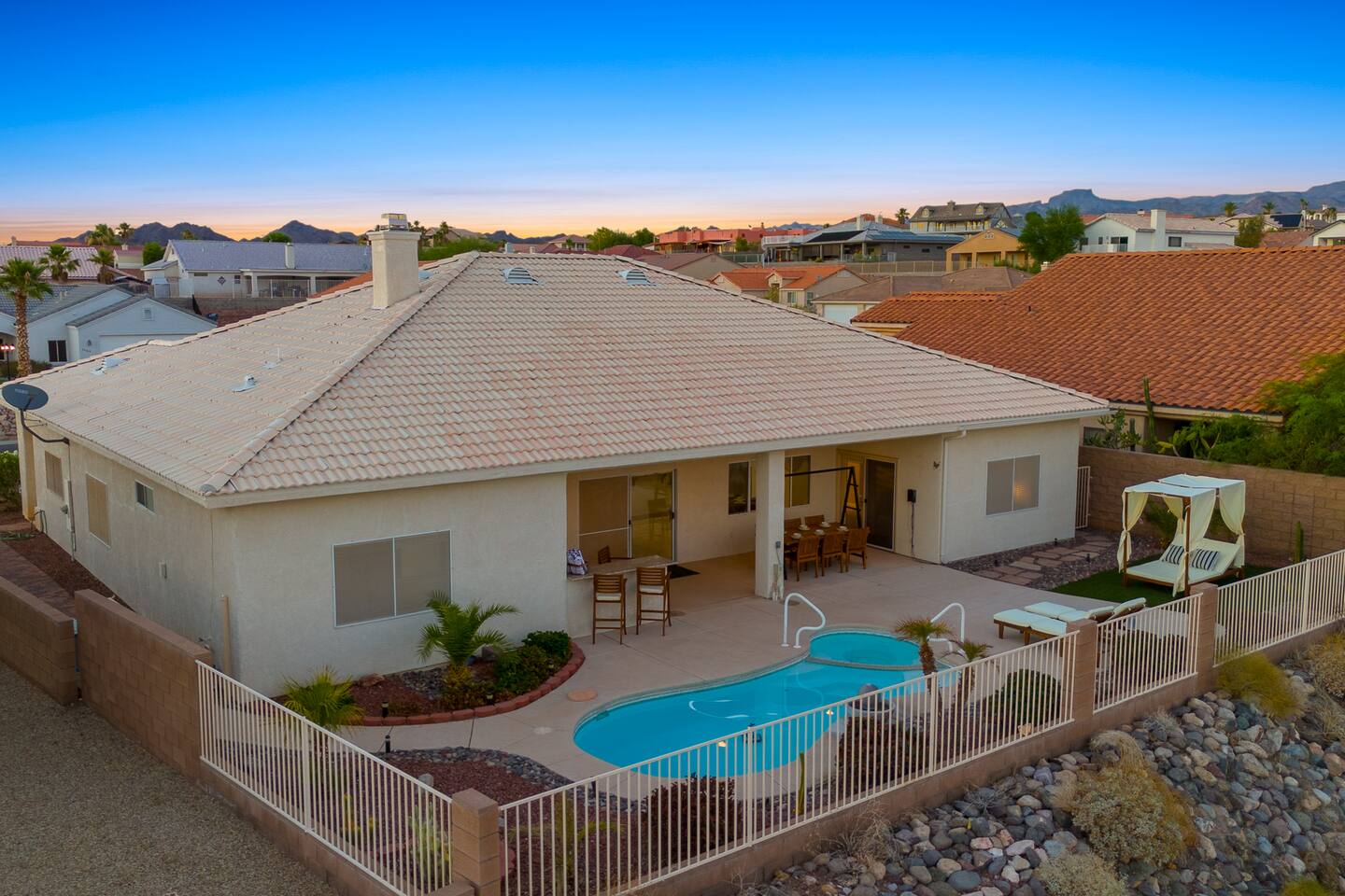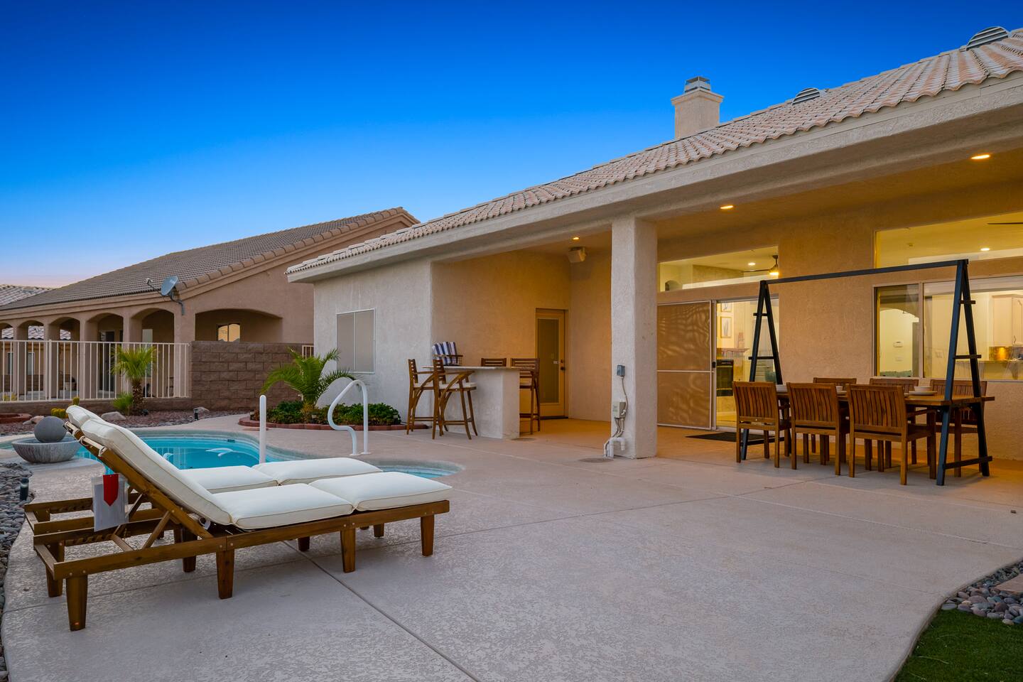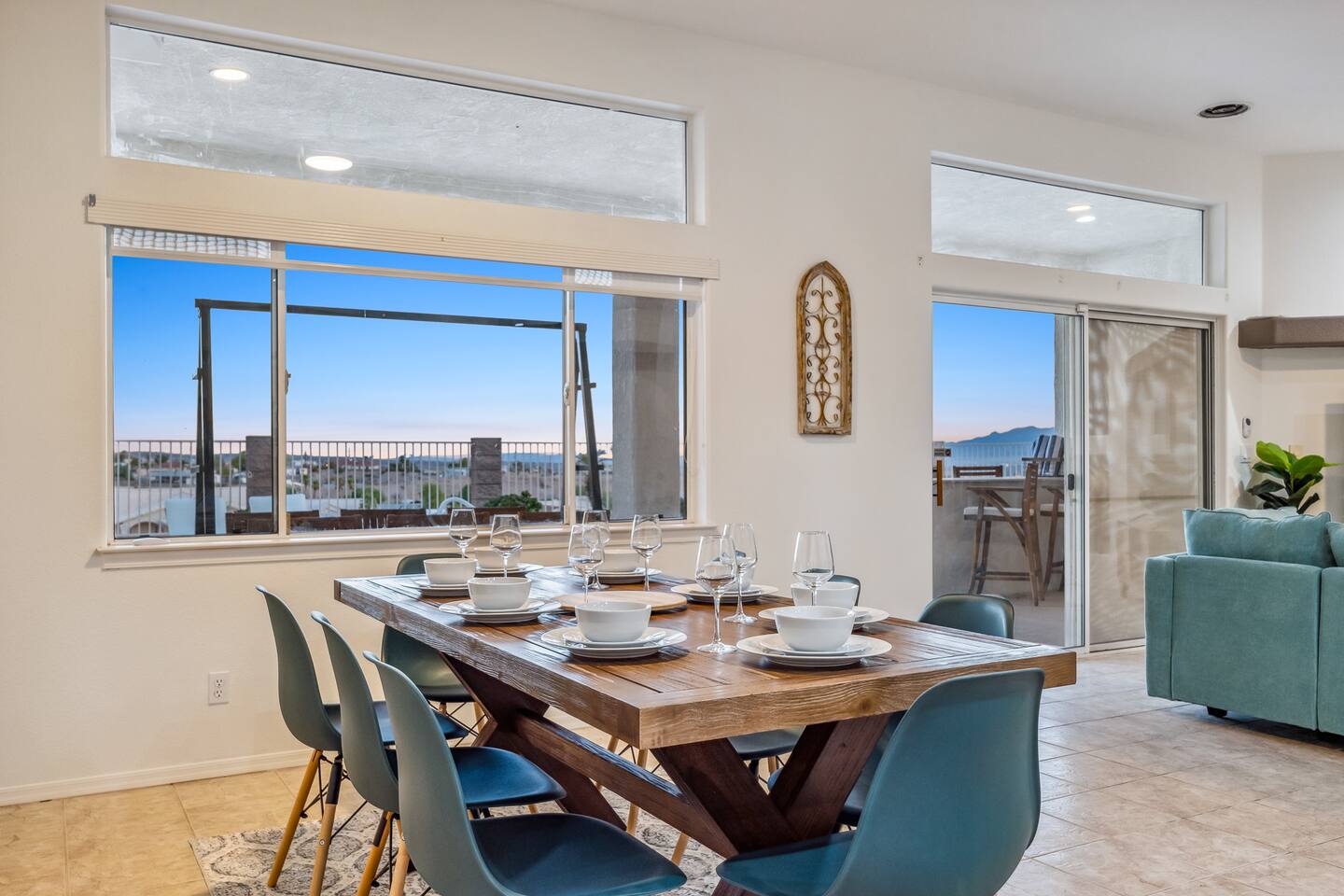 Welcome to Mohave Ridge! Our spacious retreat boasts a private pool, spa, views and a fun arcade room for the kids! Enjoy breathtaking views of the Laughlin casinos from the comfort of your large patio. Ideal for multiple families, the house comfortably sleeps up to 16 guests with multiple bedrooms and ample living space. Perfect for families or friends looking to unwind and enjoy the desert sun with all the comforts of home! Plus a large 3 car garage as well as drive through driveway.