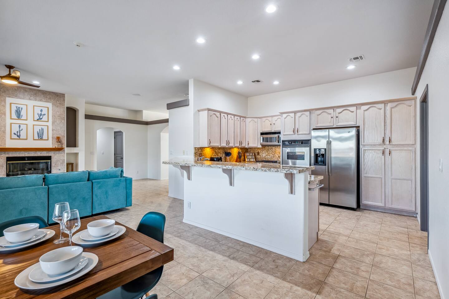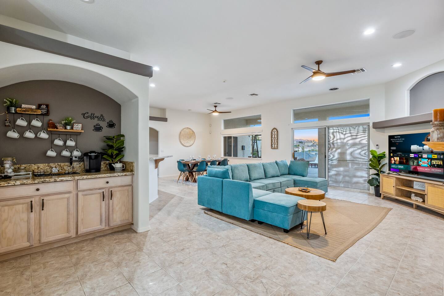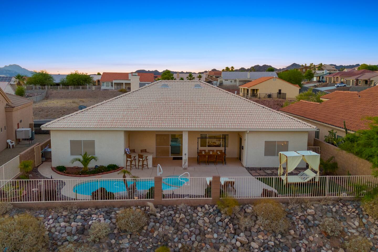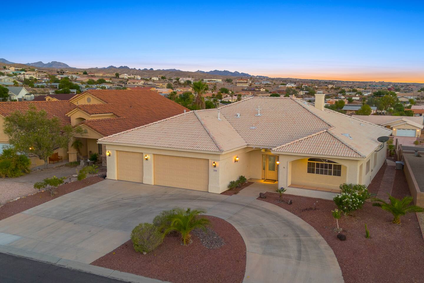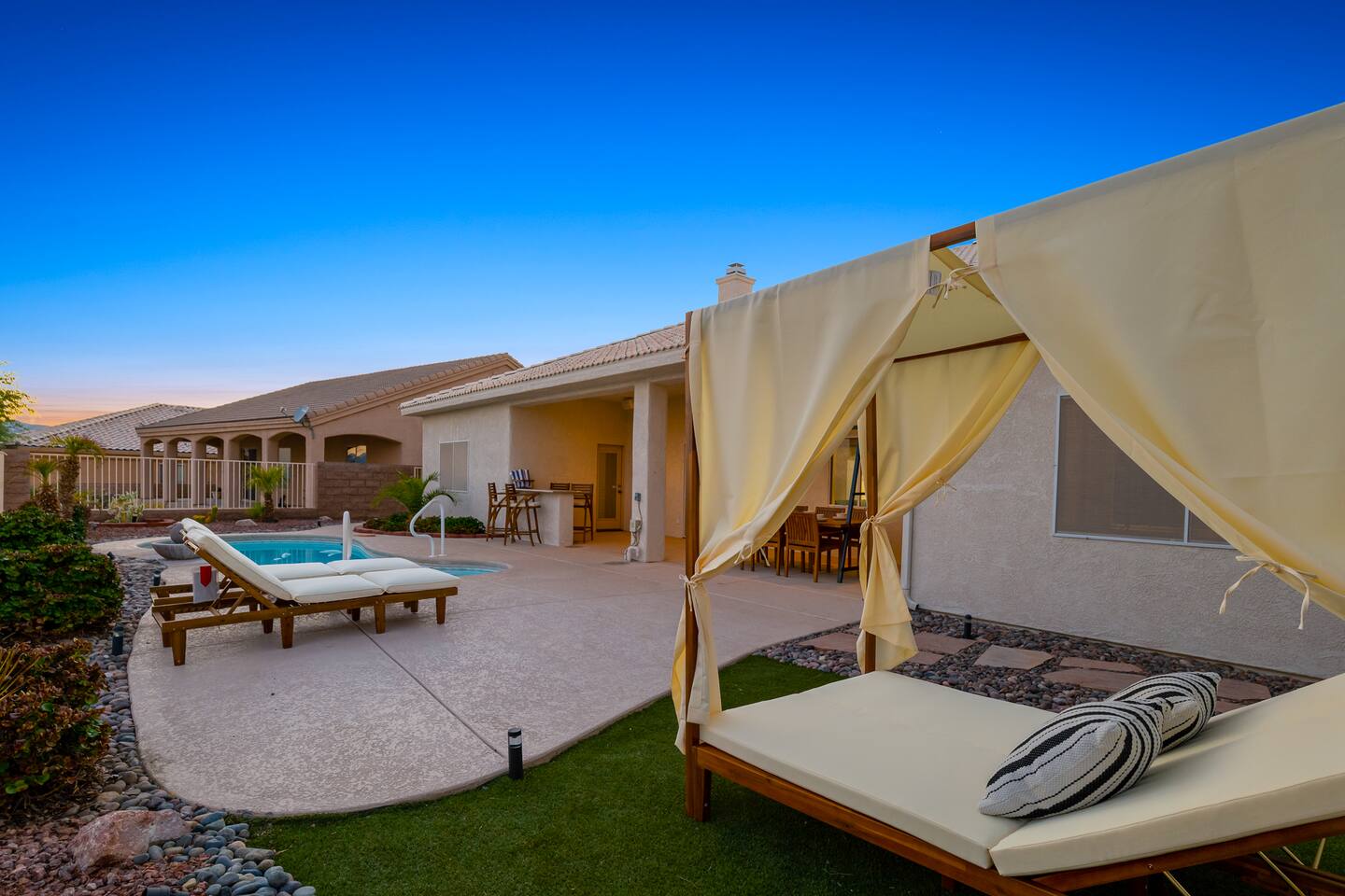 Welcome to Mohave Ridge! Our spacious retreat boasts a private pool, spa, views and a fun arcade room for the kids! Enjoy breathtaking views of the Laughlin casinos from the comfort of your large patio. Ideal for multiple families, the house comfortably sleeps up to 16 guests with multiple bedrooms and ample living space. Perfect for families or friends looking to unwind and enjoy the desert sun with all the comforts of home! Plus a large 3 car garage as well as drive through driveway.