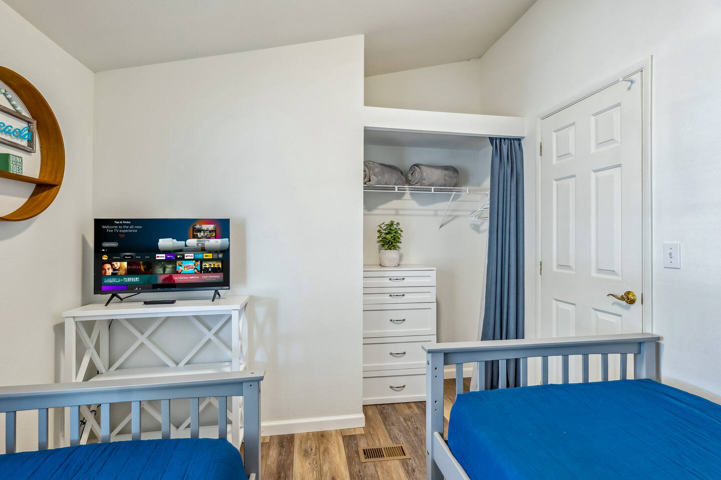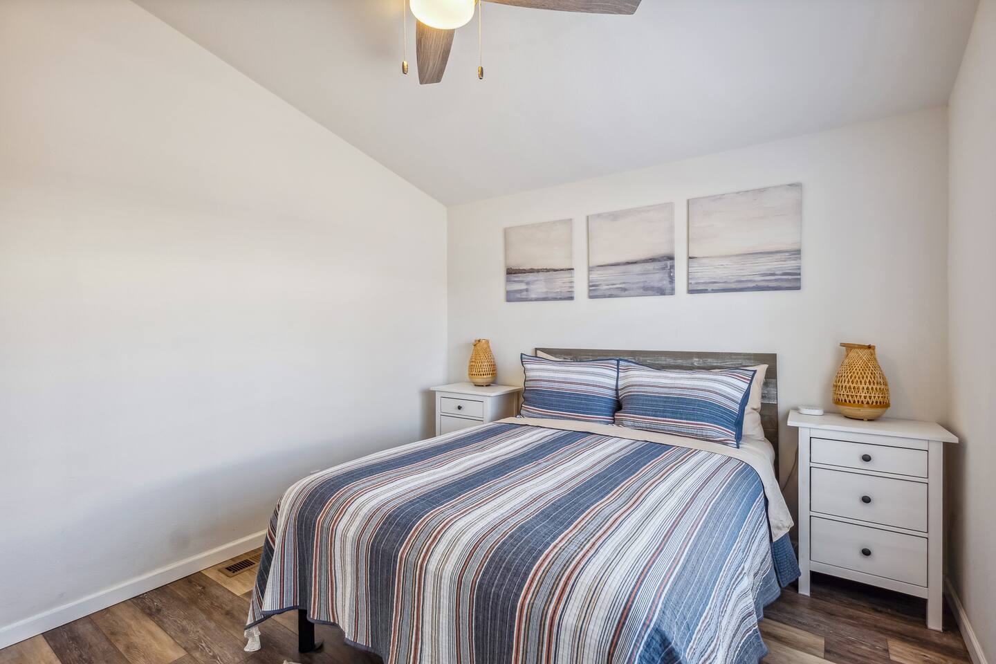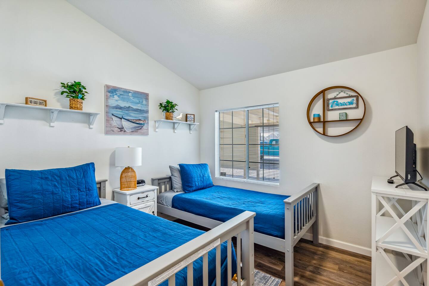 Bedroom Layout: Master bedroom: (1) King bed (sleeps 2) Bedroom 2: (1) Queen bed (sleeps 2) Bedroom 3: (2) Twin beds (sleeps 2) Total: - 4 beds (sleeps 6)