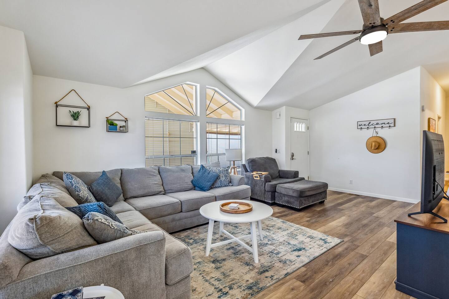Enjoy a relaxing stay in "Rio Palms"! Our 3-bedroom home, just a short walk to the nearest boat launch on the Colorado River is perfect for families or small groups. Our home comfortably sleeps 6 guests with spacious bedrooms, a fully equipped kitchen, and cozy living areas. Unwind on the patio after a day on the water, or explore nearby Laughlin casinos and desert trails. Ideal for boating, fishing, and soaking up the sun in a peaceful setting.