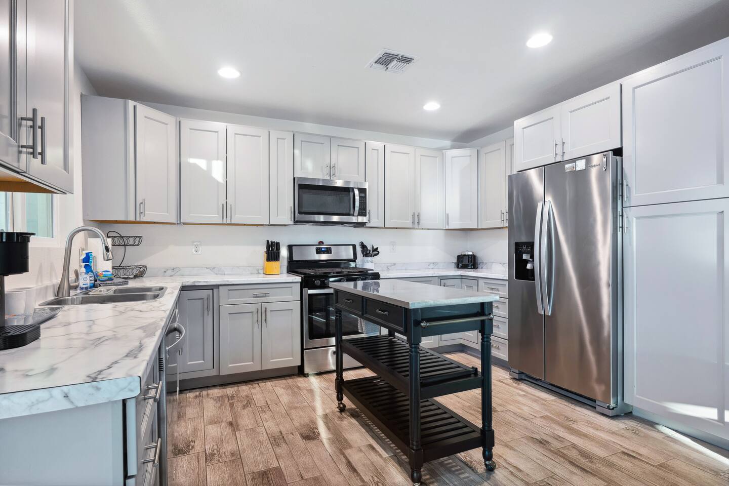 Boasting two bedrooms and two baths, Casa Sunrise provides ample space and privacy for your group to relax and unwind. The spacious master bedroom features a luxurious 2 Queen-sized bed and en-suite bathroom, while the second bedroom offers a cozy 2 queen-sized bed. Additional sleeping arrangements include a pull out in the living room for your convenience. Bedroom 1: (2) queens (sleeps 4) Bedroom 2: (2) queens (sleeps 4) Living room: Sofa bed (sleeps 2) Total: 5 beds (sleeps 10)